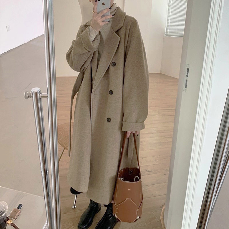 2024 осень и зима новая шерстяная куртка большого размера женский толстый мм длинное шерстяное пальто 200 кг [2285]
