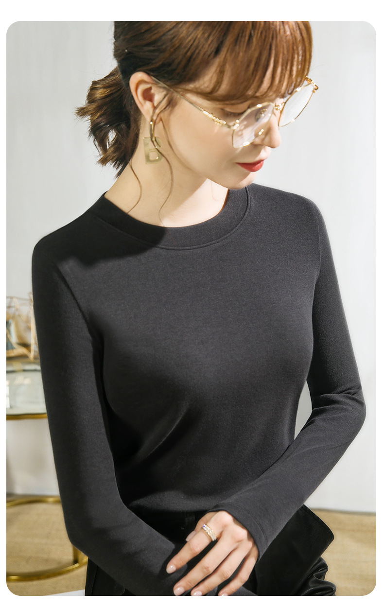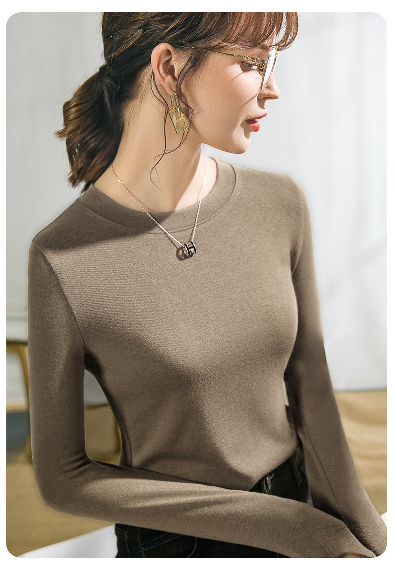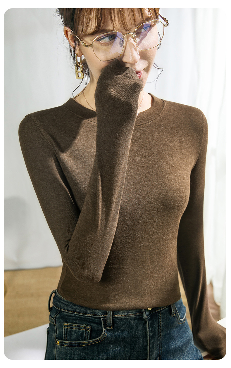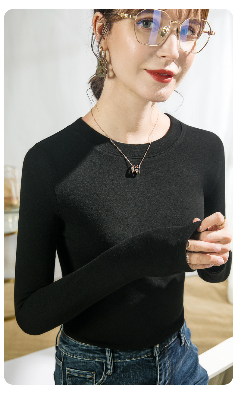Нижняя рубашка с круглым вырезом женская внутренняя одежда ранняя осень 2025 белая футболка с длинными рукавами женская имитация кашемировый топ