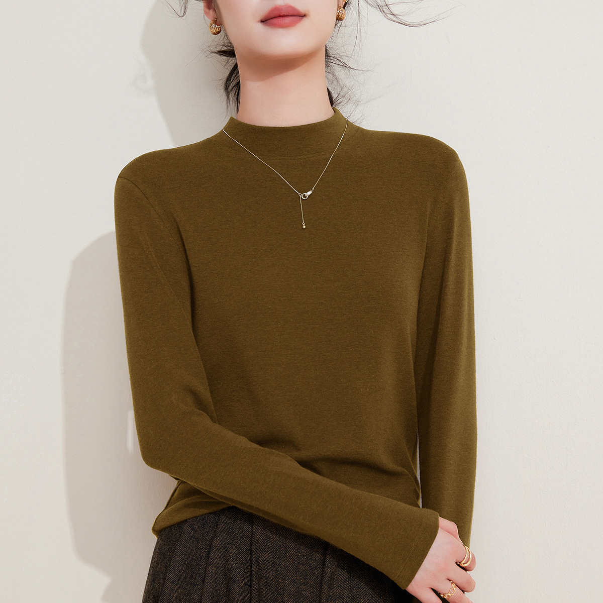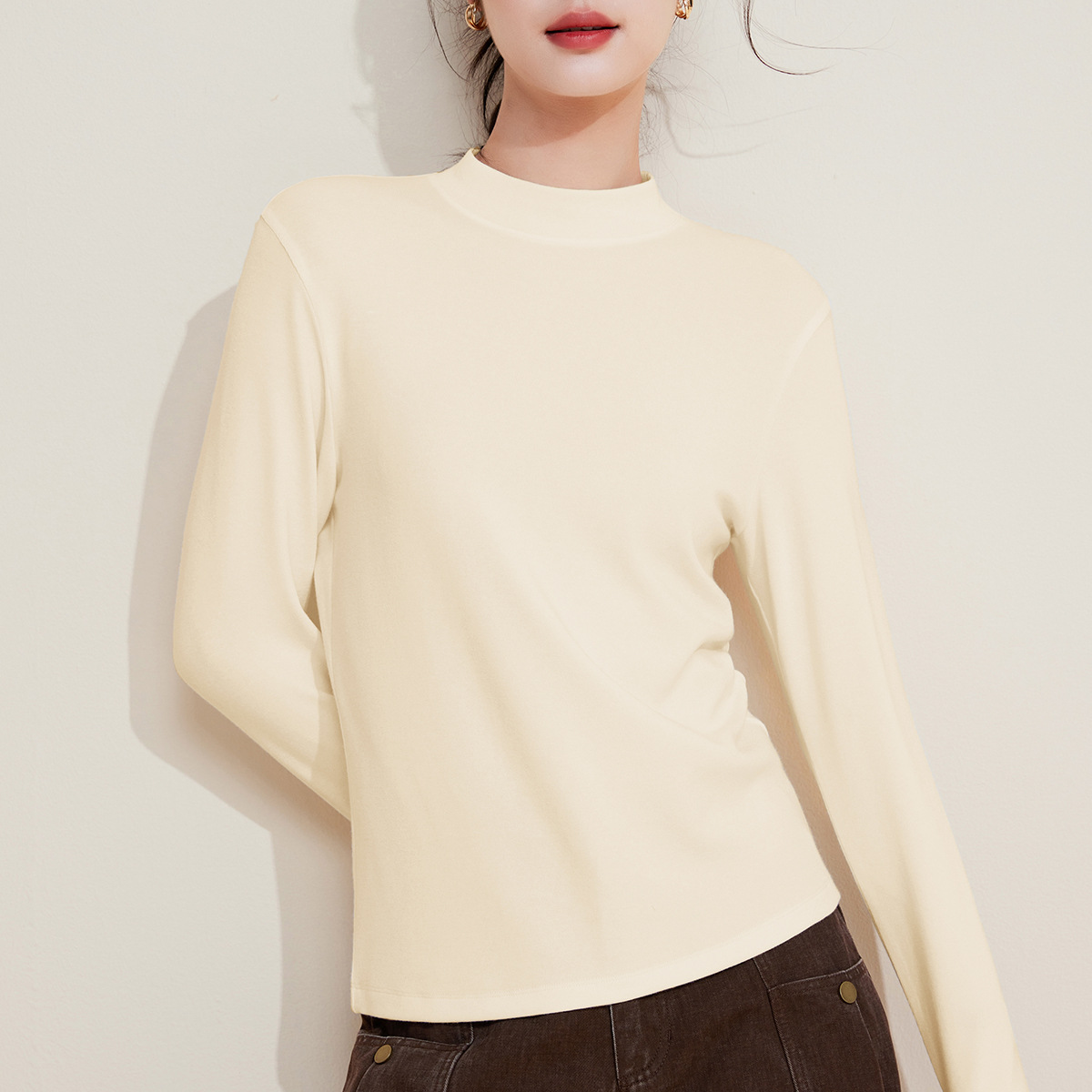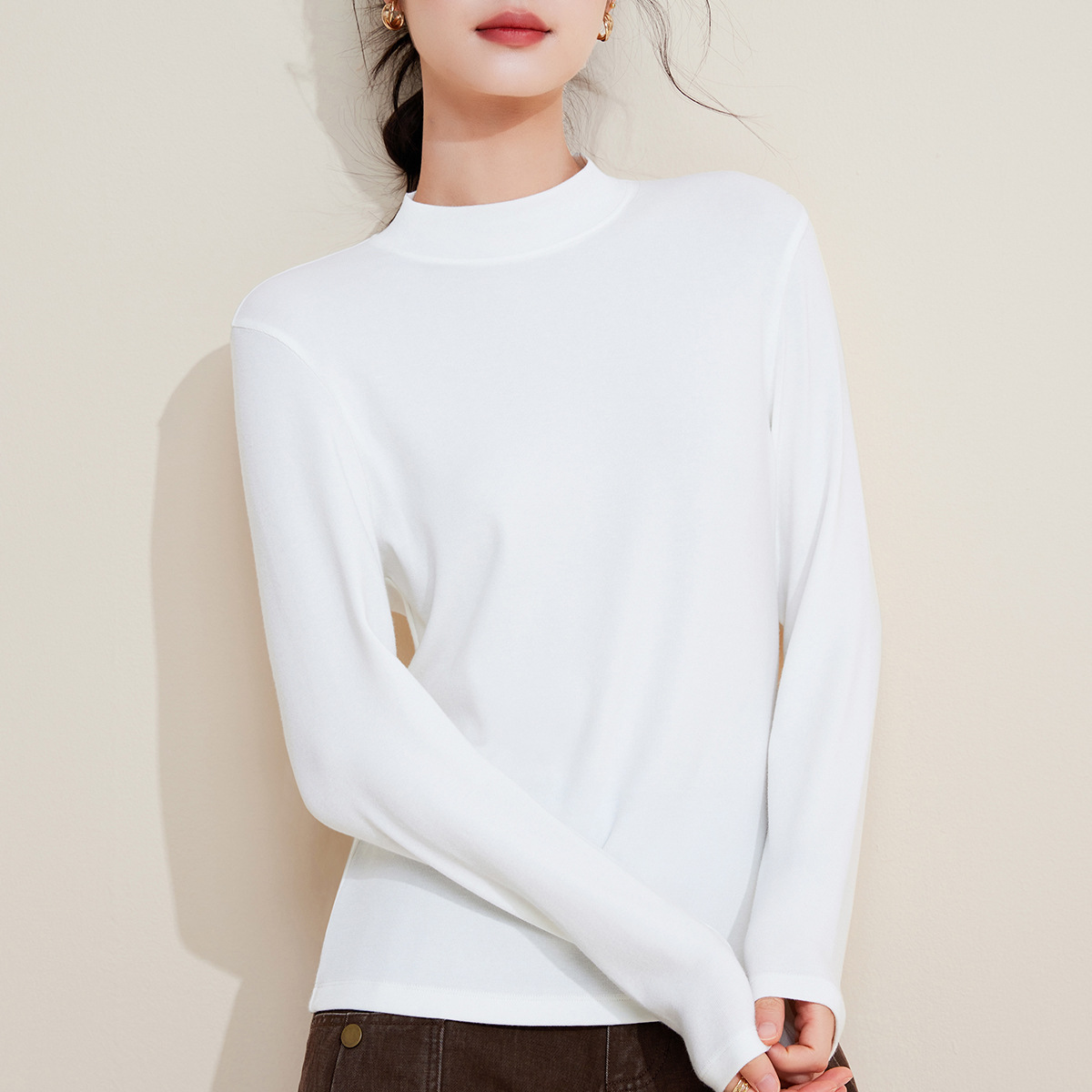 Нижняя рубашка с круглым вырезом женская внутренняя одежда ранняя осень 2025 белая футболка с длинными рукавами женская имитация кашемировый топ