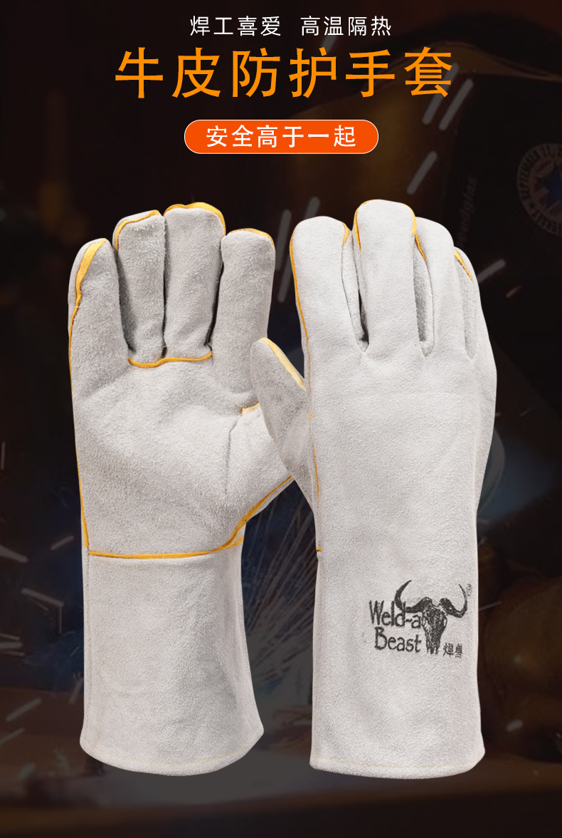 Сварочные перчатки Welding Beast 4150, двухслойные утолщенные пальмовые бархатные сварочные износостойкие изолированные перчатки для сварщика