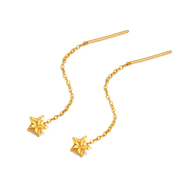 Серьги из золота 18 карат, позолоченные, из золота 750 пробы, розовое золото, женские, в форме сердца, пятиконечной звезды, снежинки, цветное золото, новые серьги, чистое золото