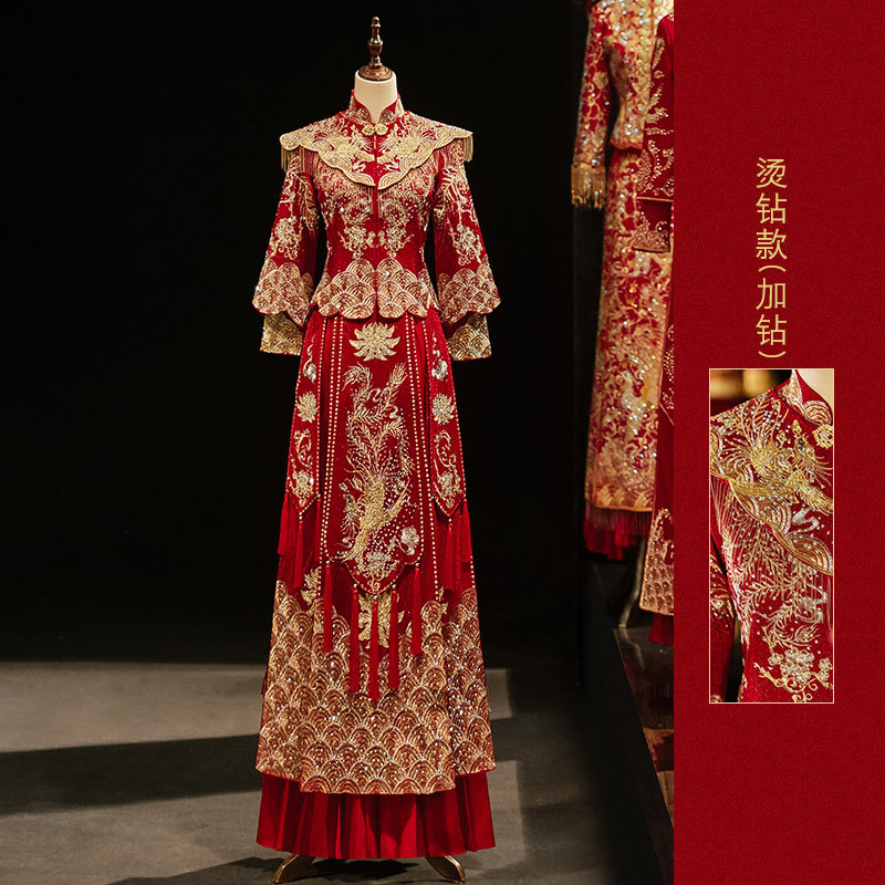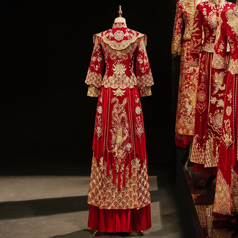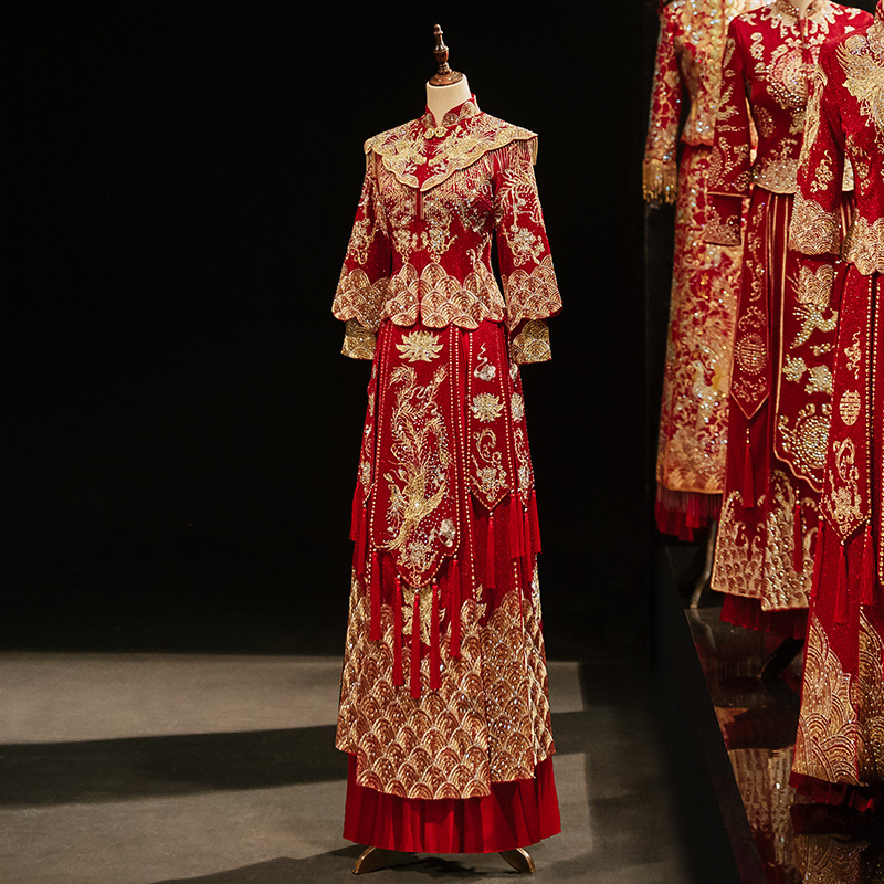 Свадебное платье в стиле Сюхэ с шалью, новая модель 2026 года, свадебное платье с драконом и фениксом, китайская свадебная одежда, роскошное свадебное платье для торжеств.