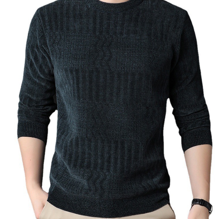 Зимняя Базовая рубашка для мужчин молодого и среднего возраста на флисовой подкладке с круглым вырезом, модный однотонный утепленный свитер, свитер из синели, мужской
