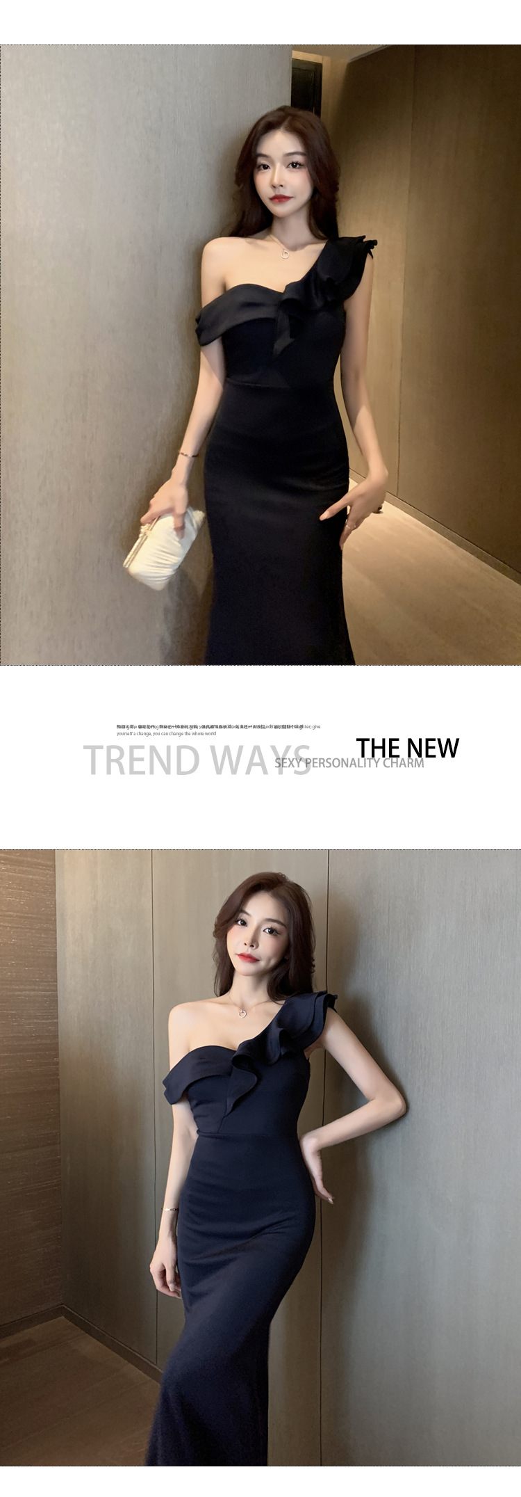 Сексуальная одно плечо платье ночной клуб Тонкий тонкий хип КУДЕЛИ платье вечернее платье
