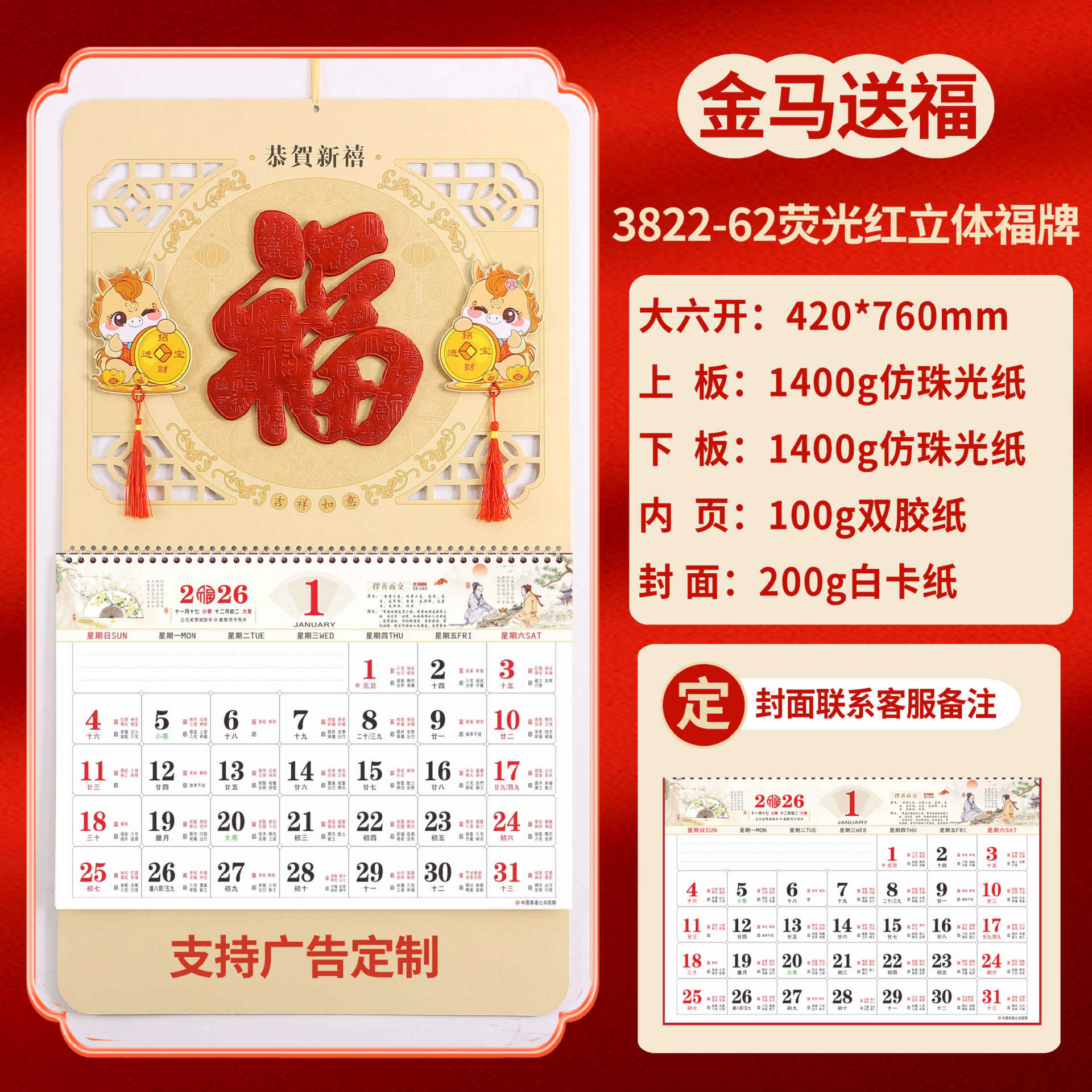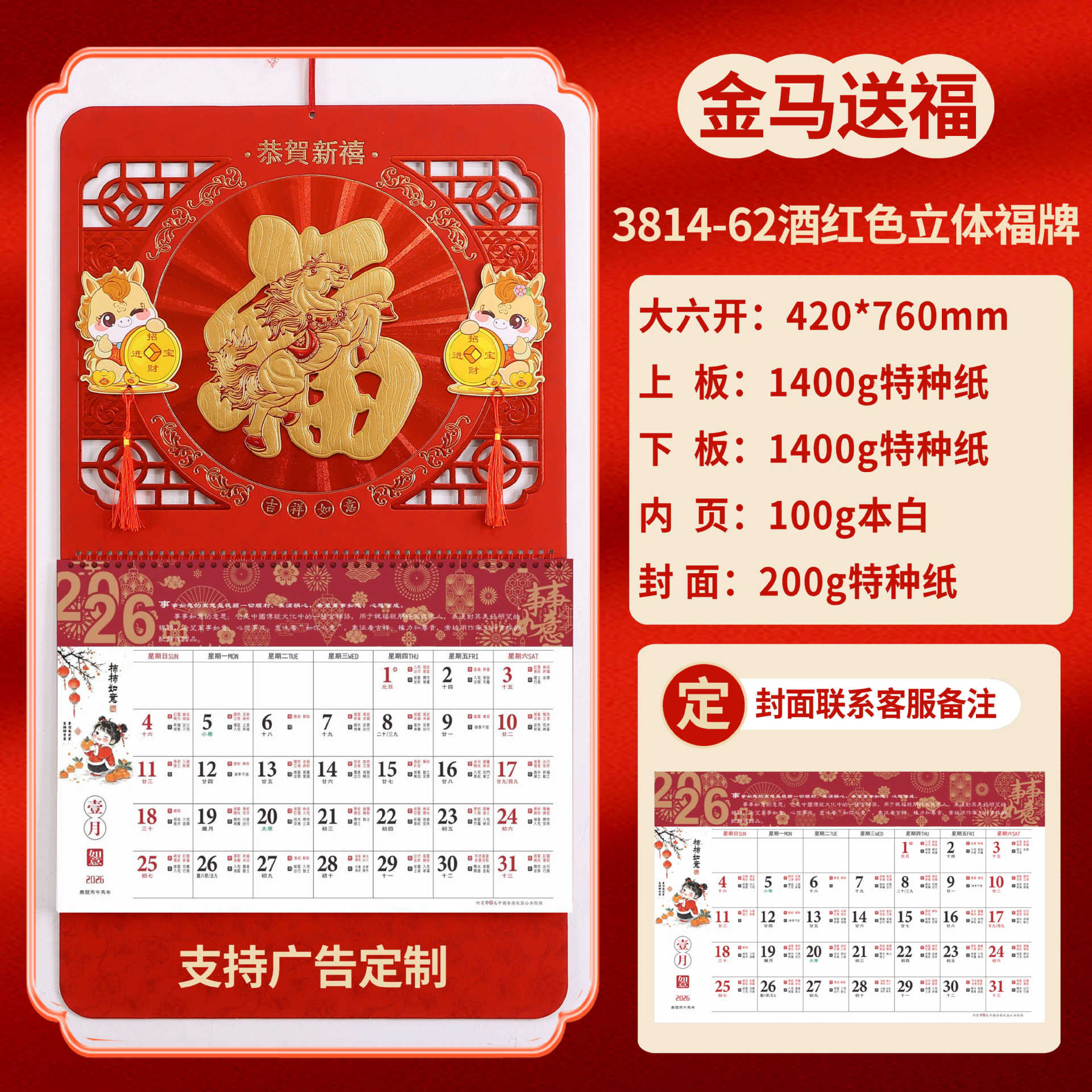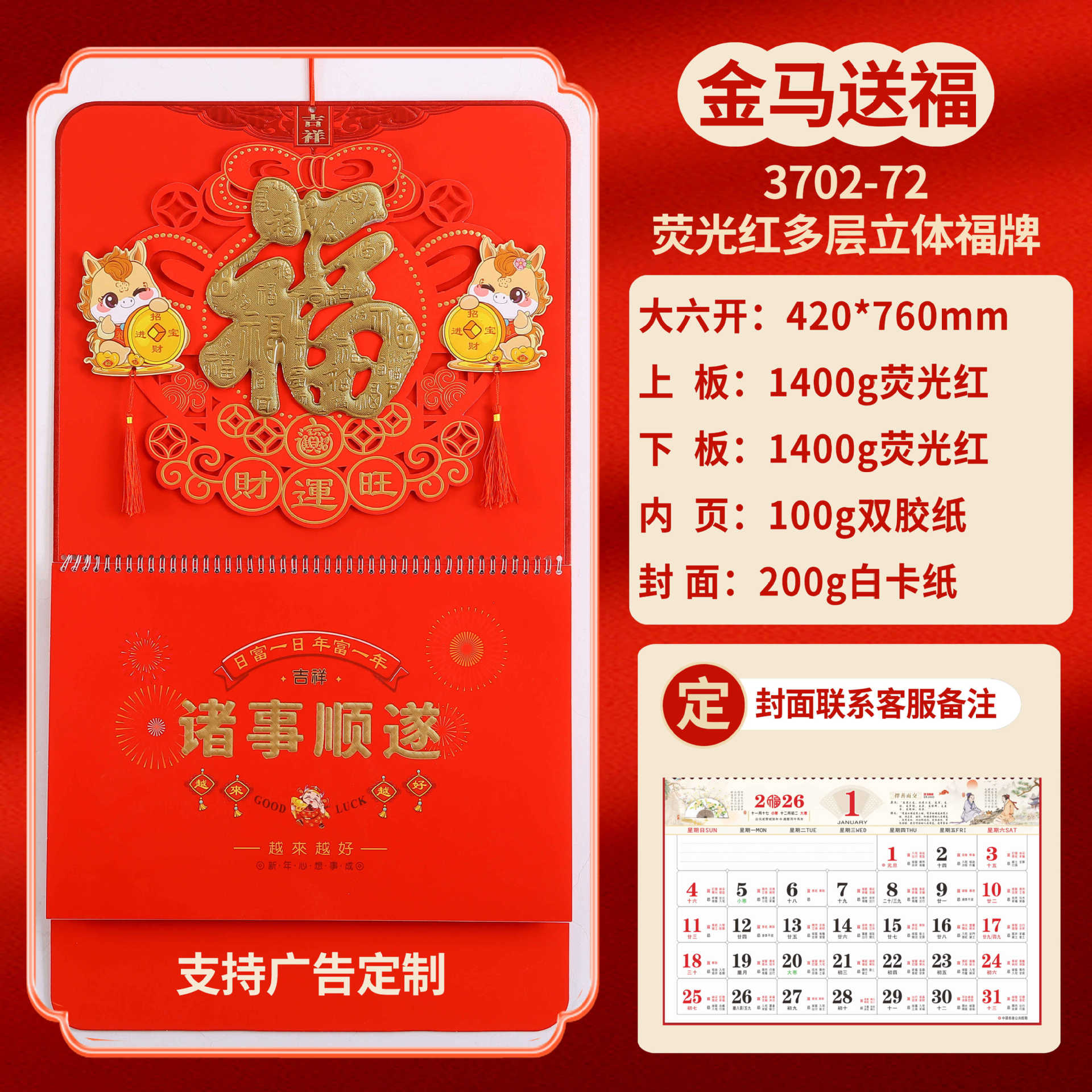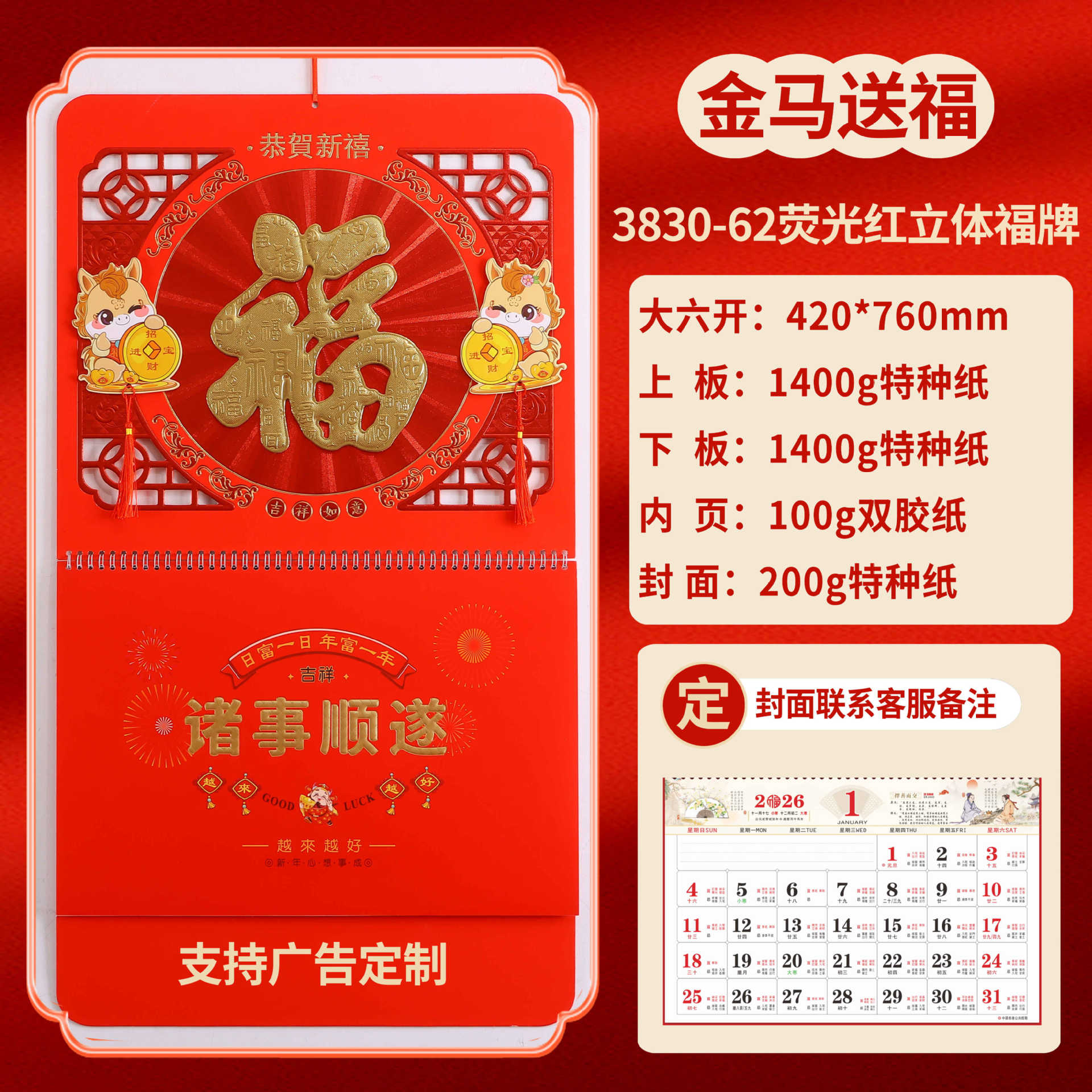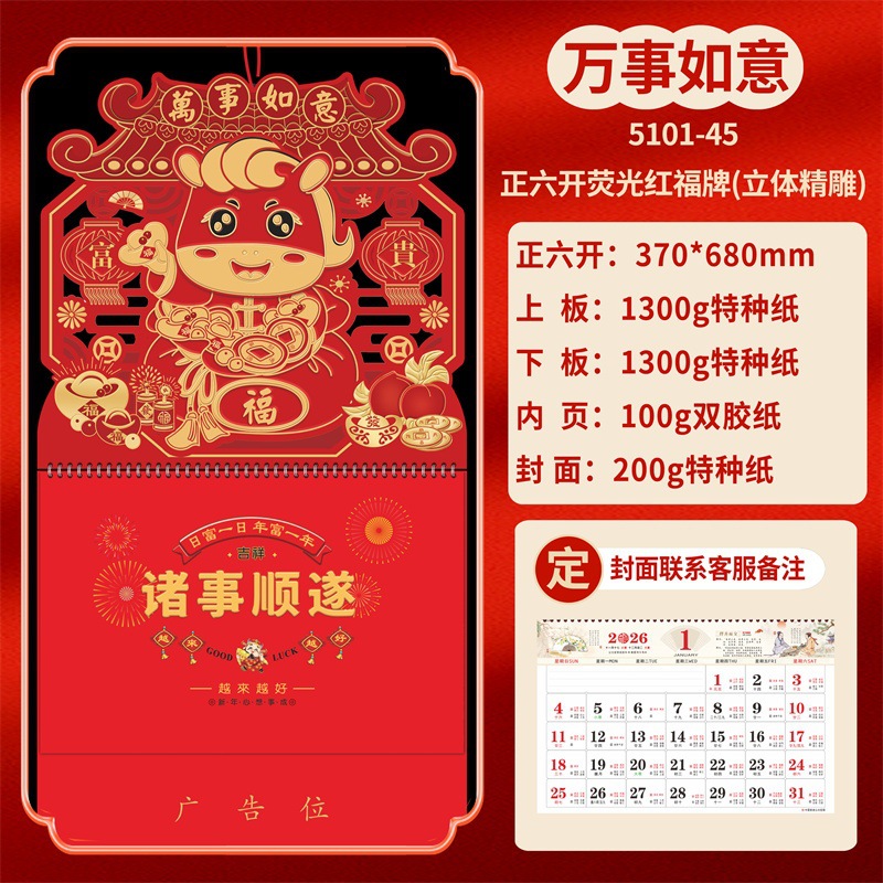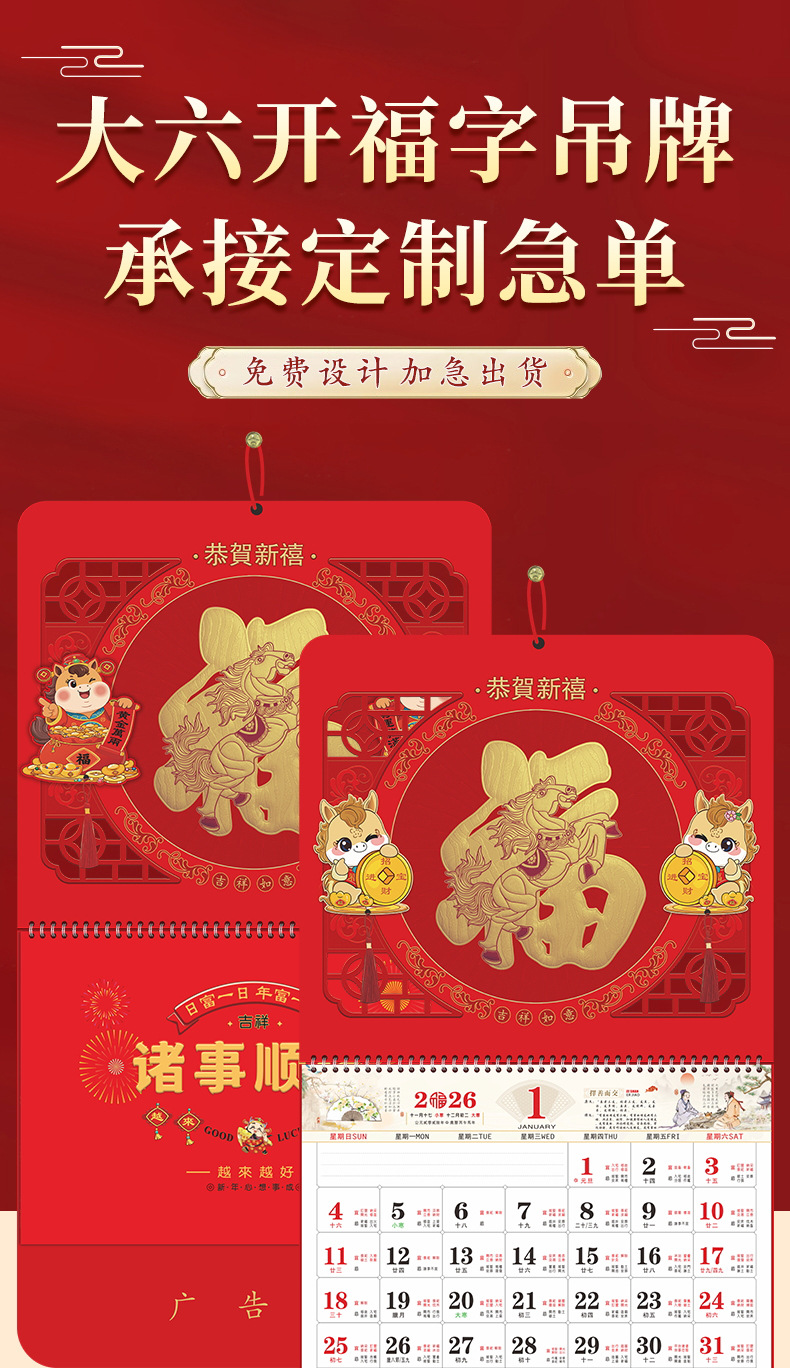 Календарь на 2026 год — Год Лошади, календарь удачи, персонализированный рекламный сувенир для компаний, календарь с индивидуальной печатью, настенный календарь, ежемесячный календарь, настольный календарь, оптом