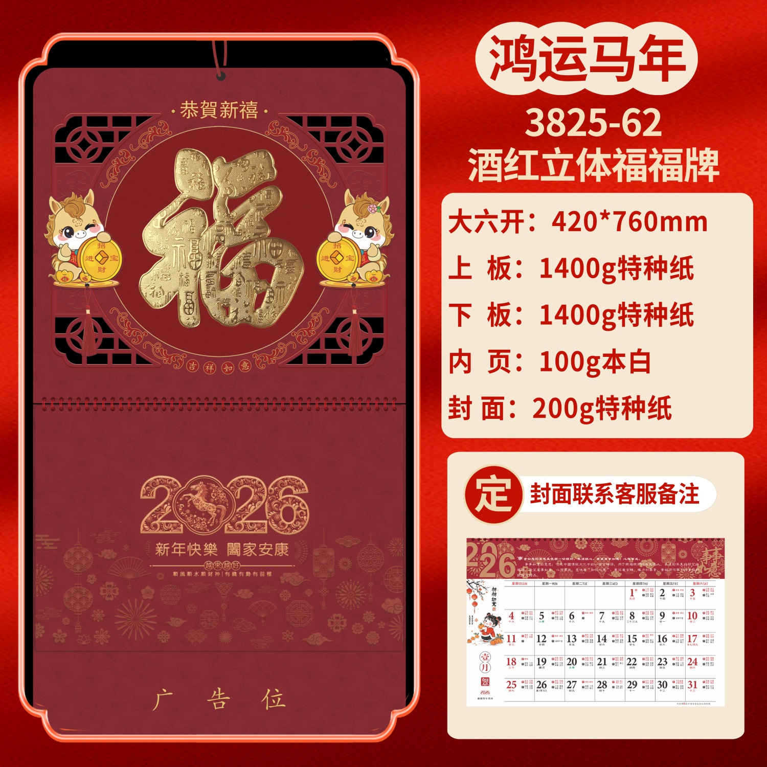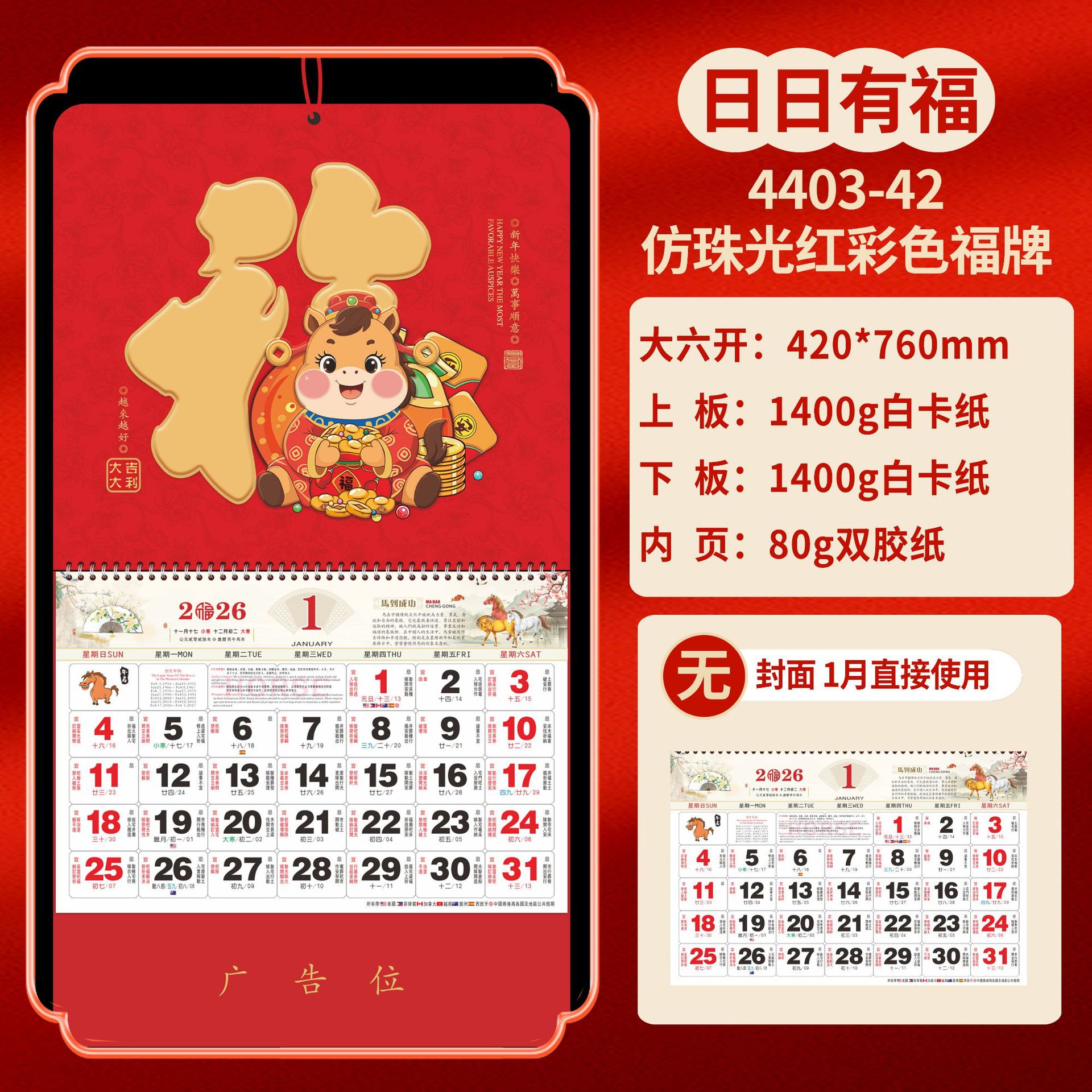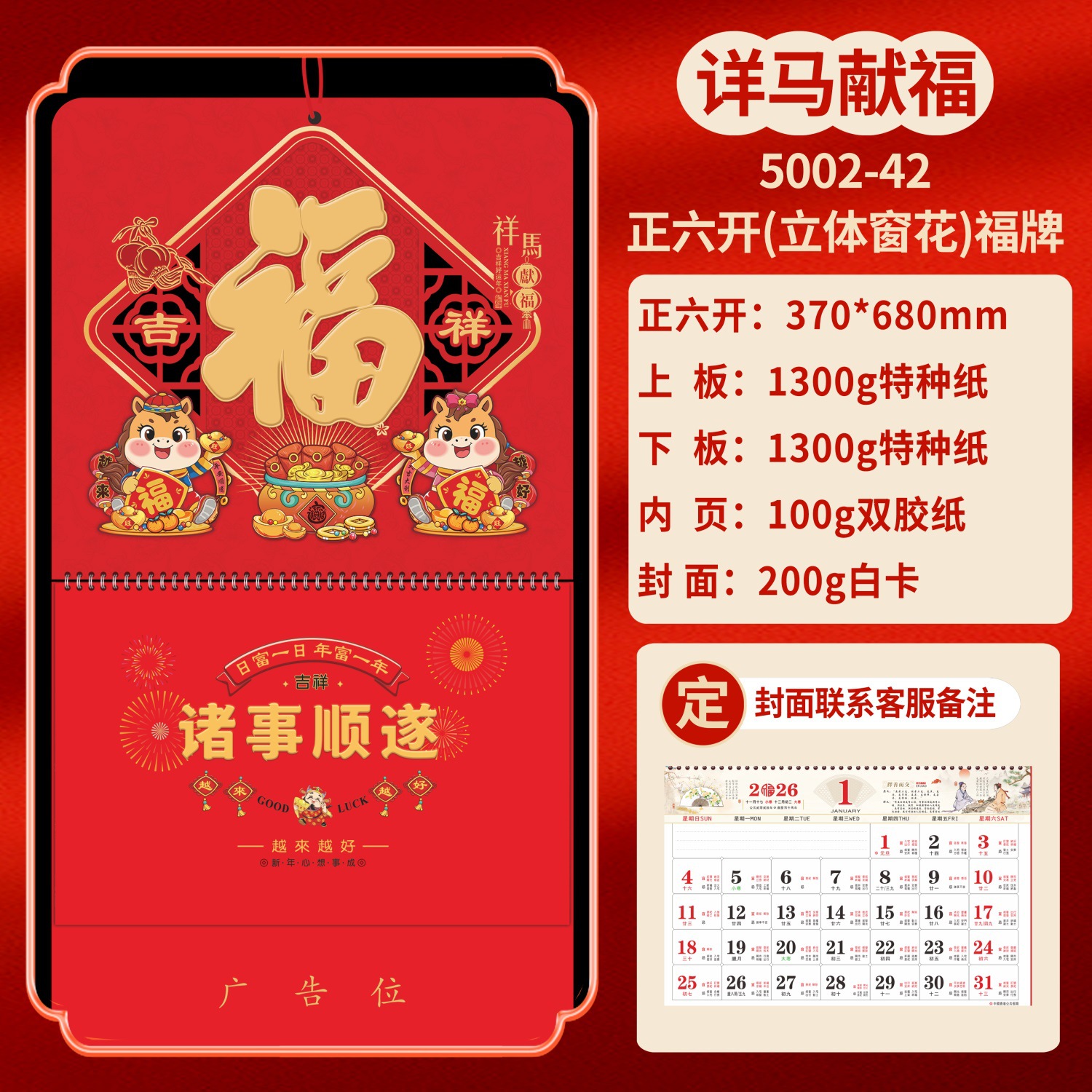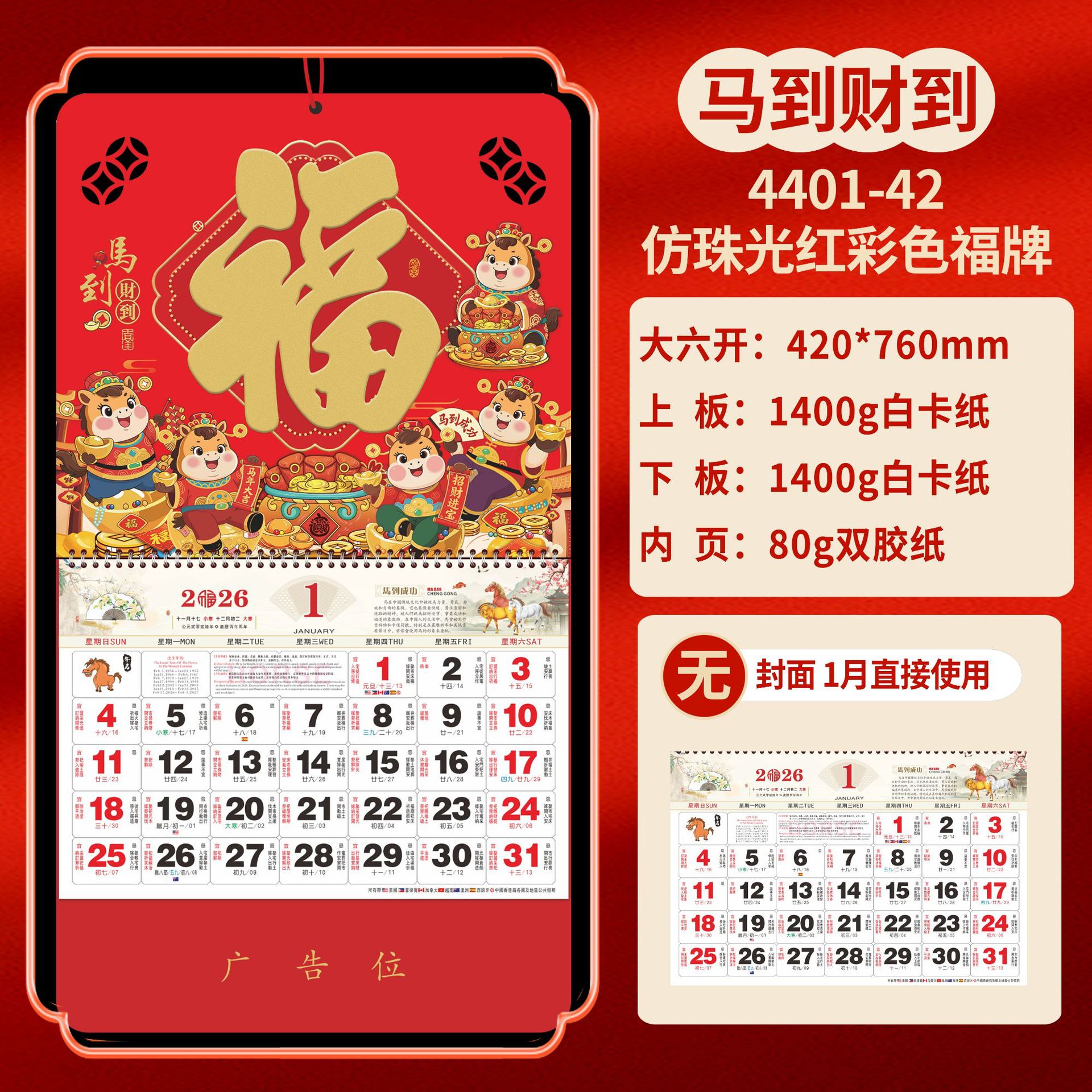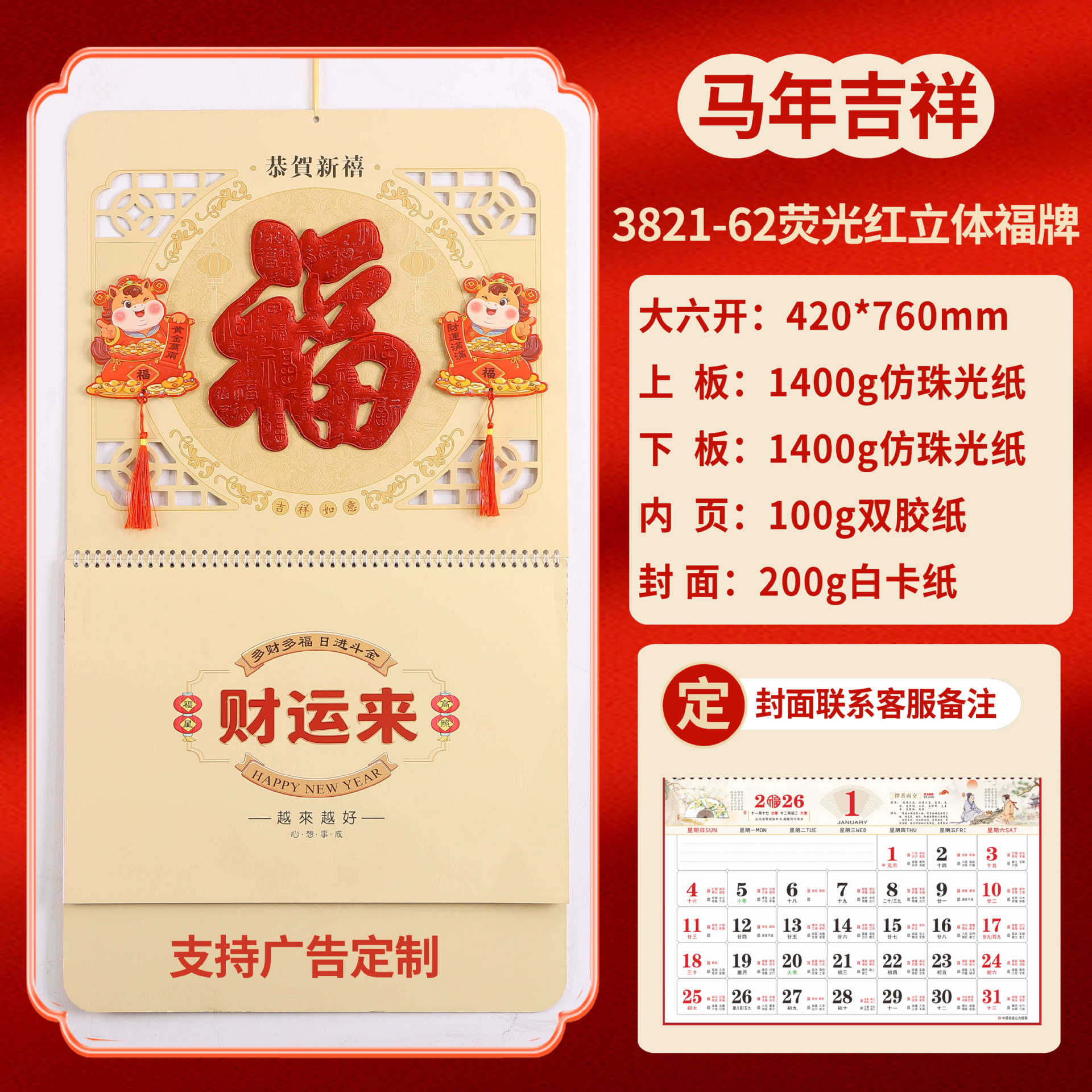 Календарь на 2026 год — Год Лошади, календарь удачи, персонализированный рекламный сувенир для компаний, календарь с индивидуальной печатью, настенный календарь, ежемесячный календарь, настольный календарь, оптом