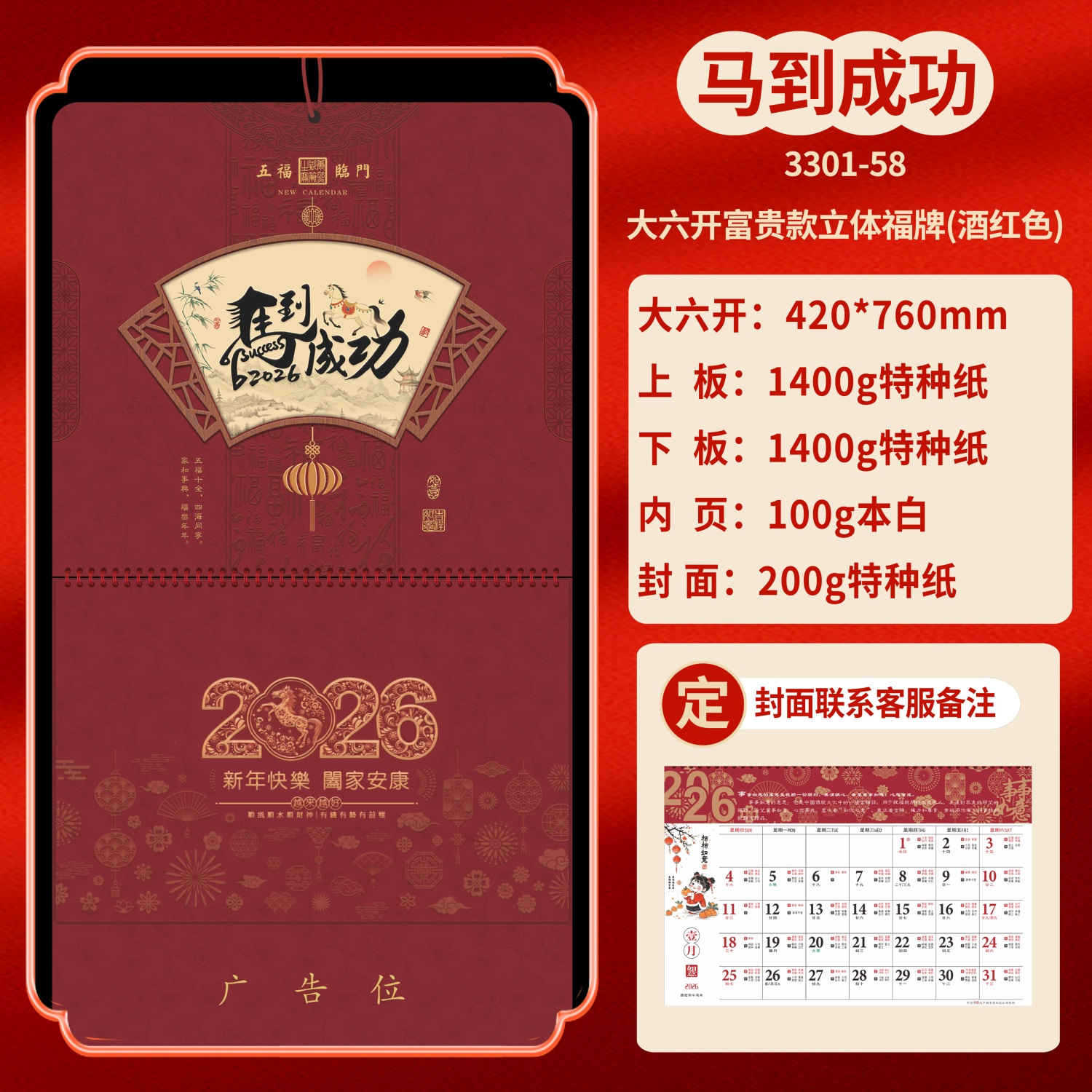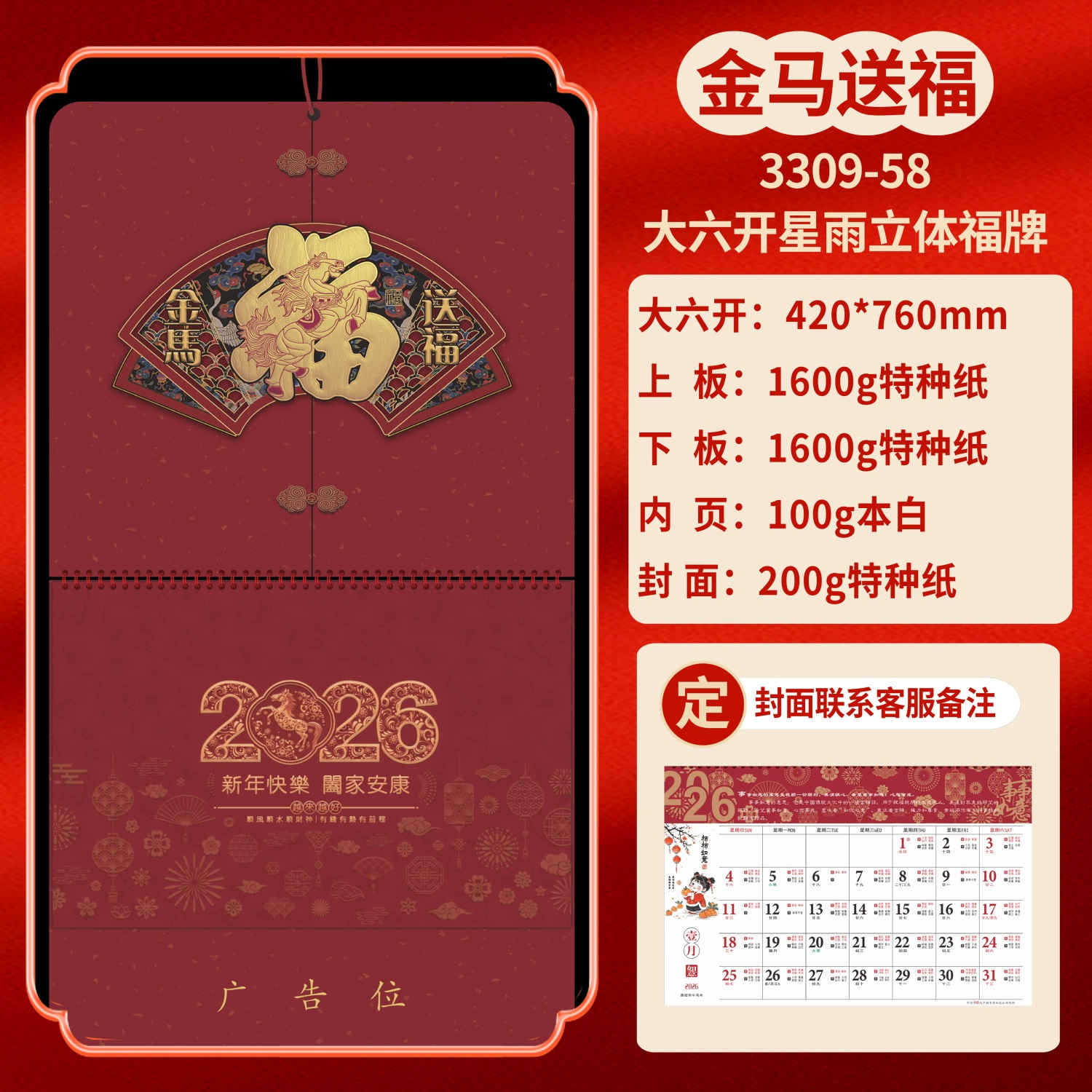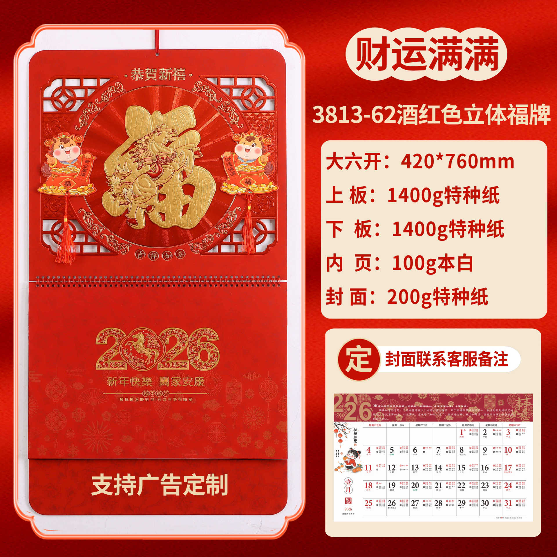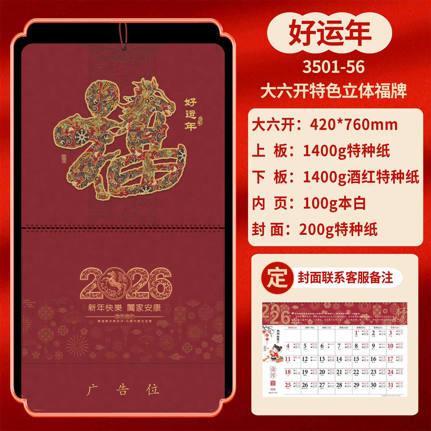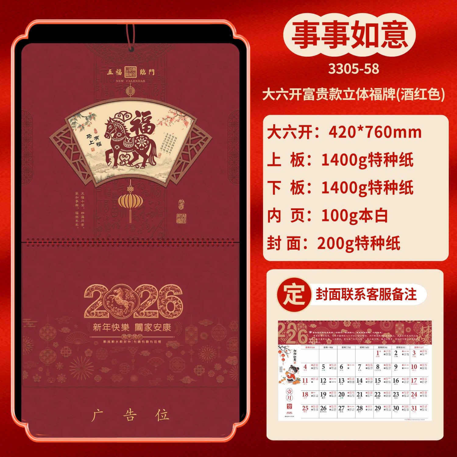 Календарь на 2026 год — Год Лошади, календарь удачи, персонализированный рекламный сувенир для компаний, календарь с индивидуальной печатью, настенный календарь, ежемесячный календарь, настольный календарь, оптом