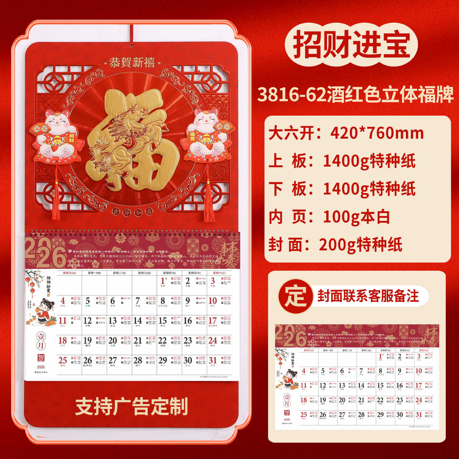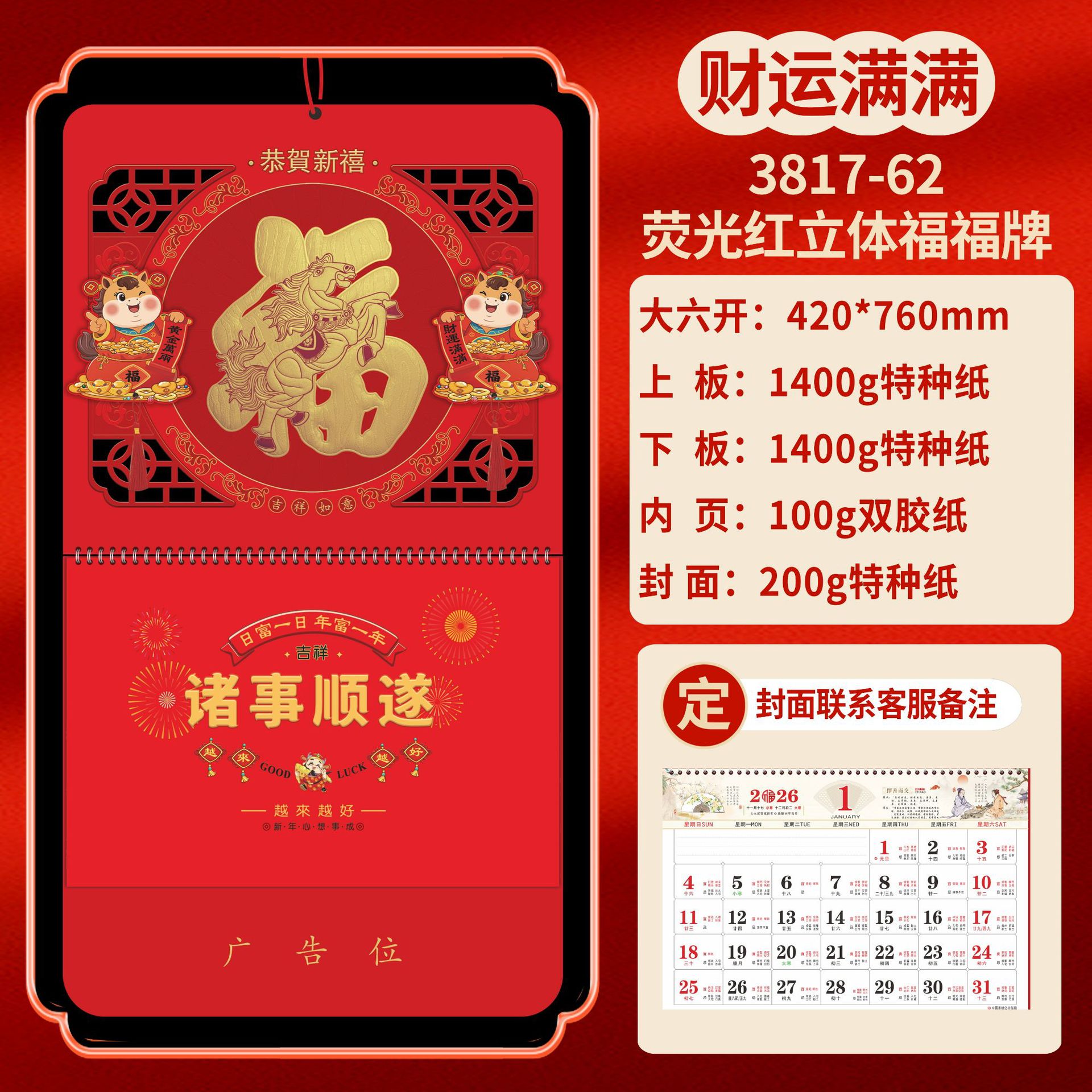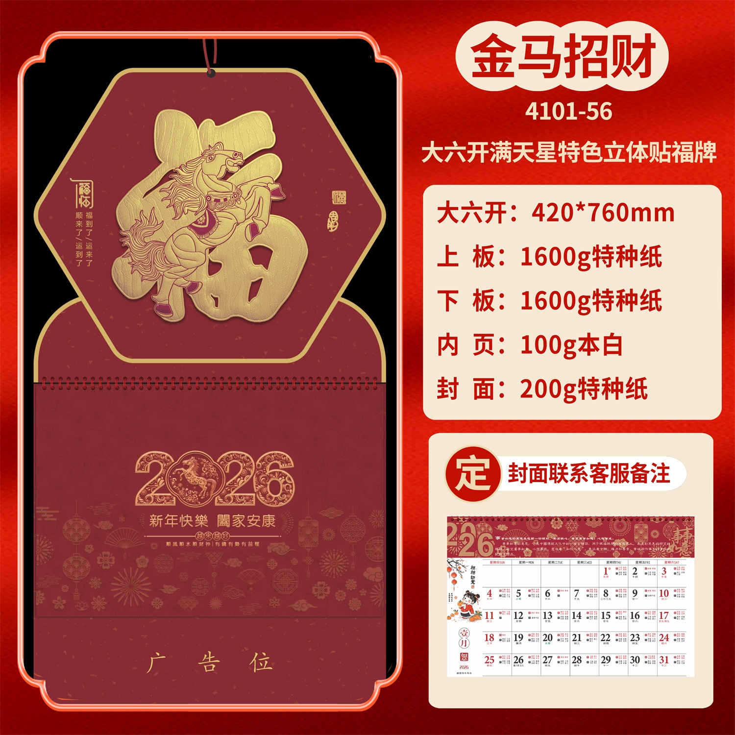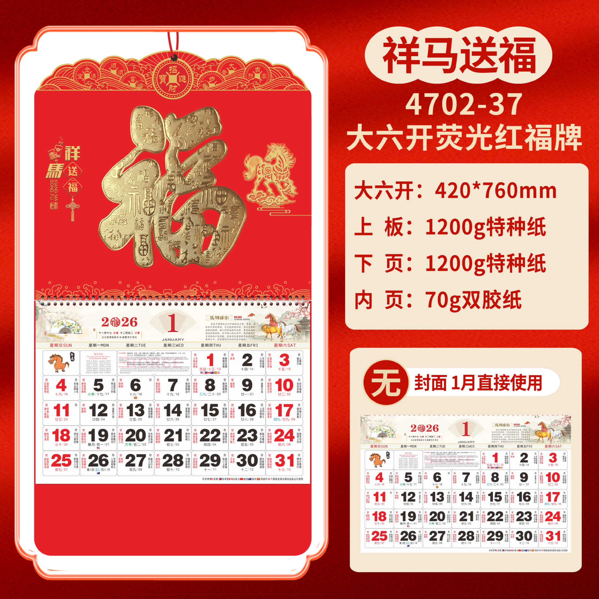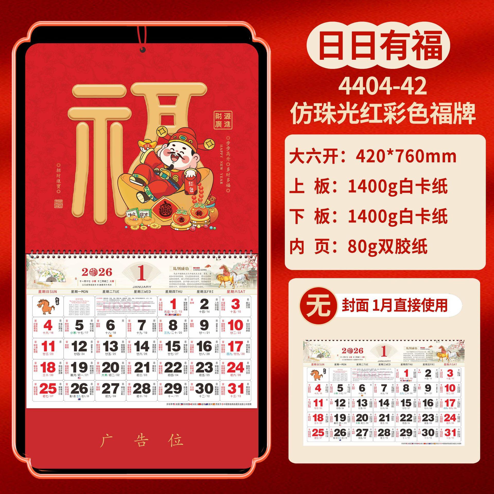 Календарь на 2026 год — Год Лошади, календарь удачи, персонализированный рекламный сувенир для компаний, календарь с индивидуальной печатью, настенный календарь, ежемесячный календарь, настольный календарь, оптом