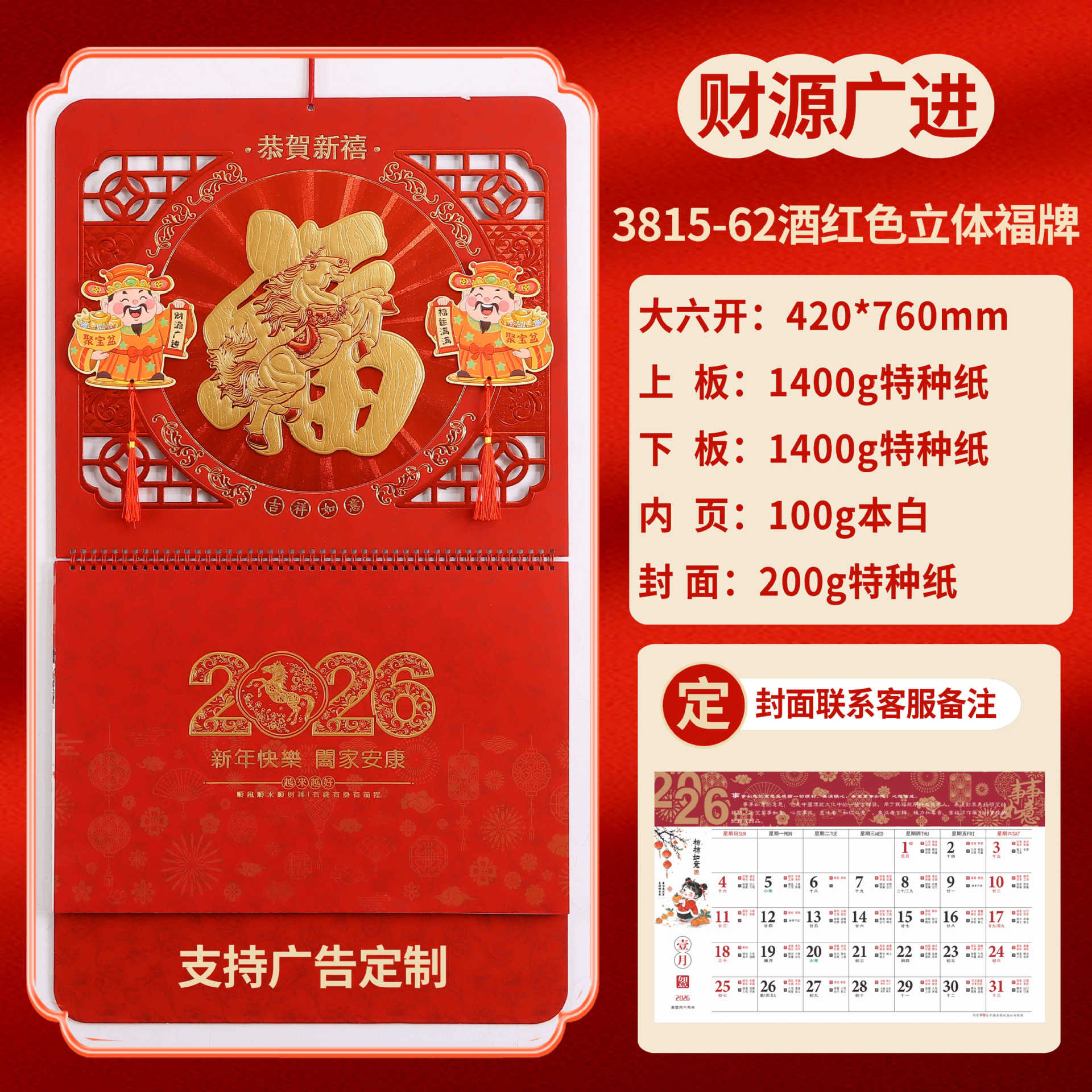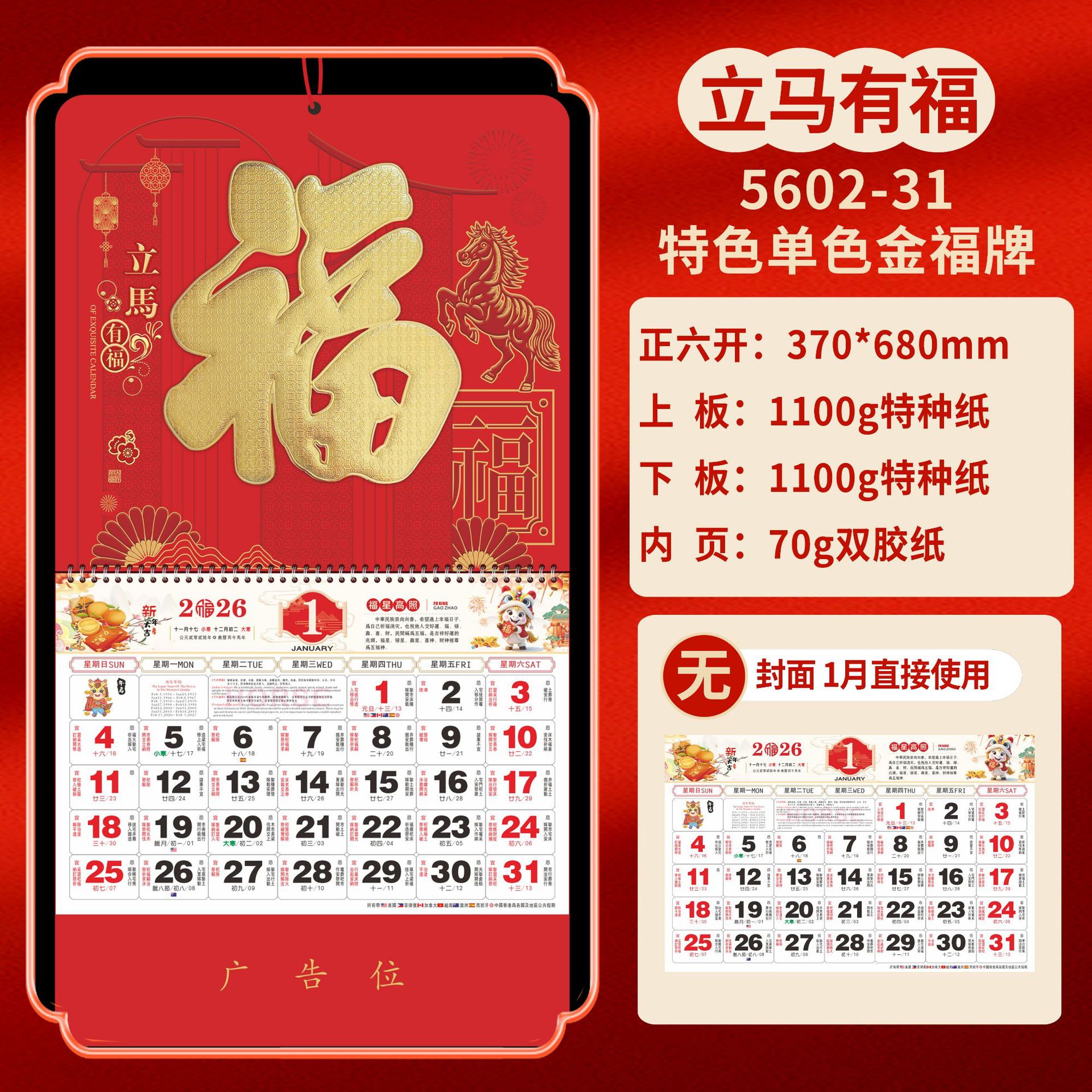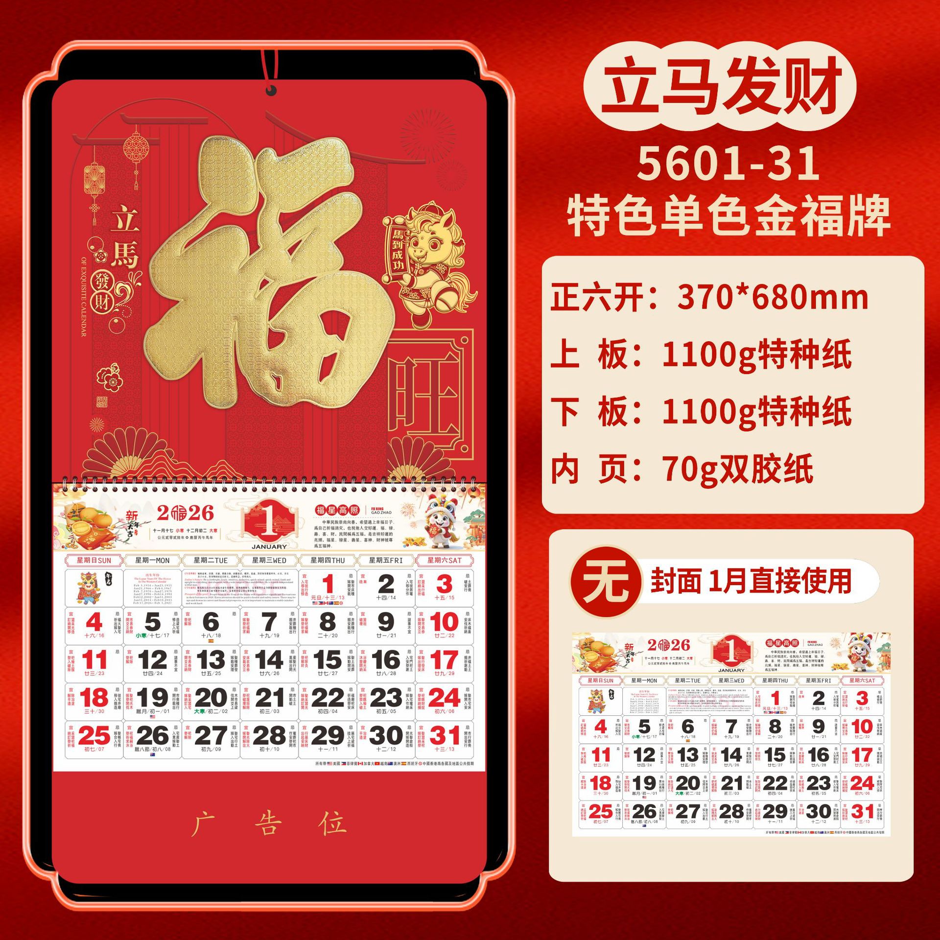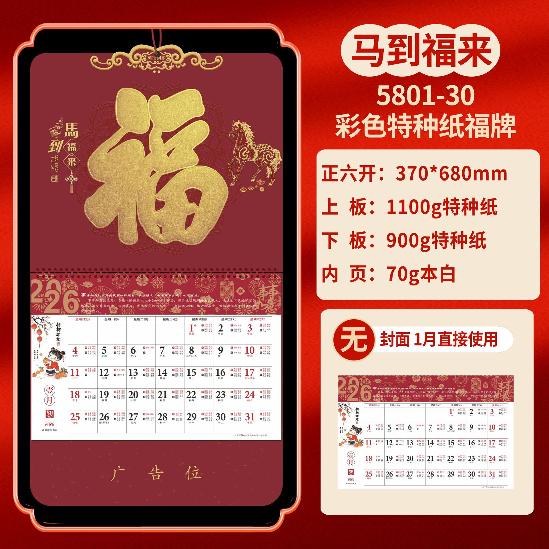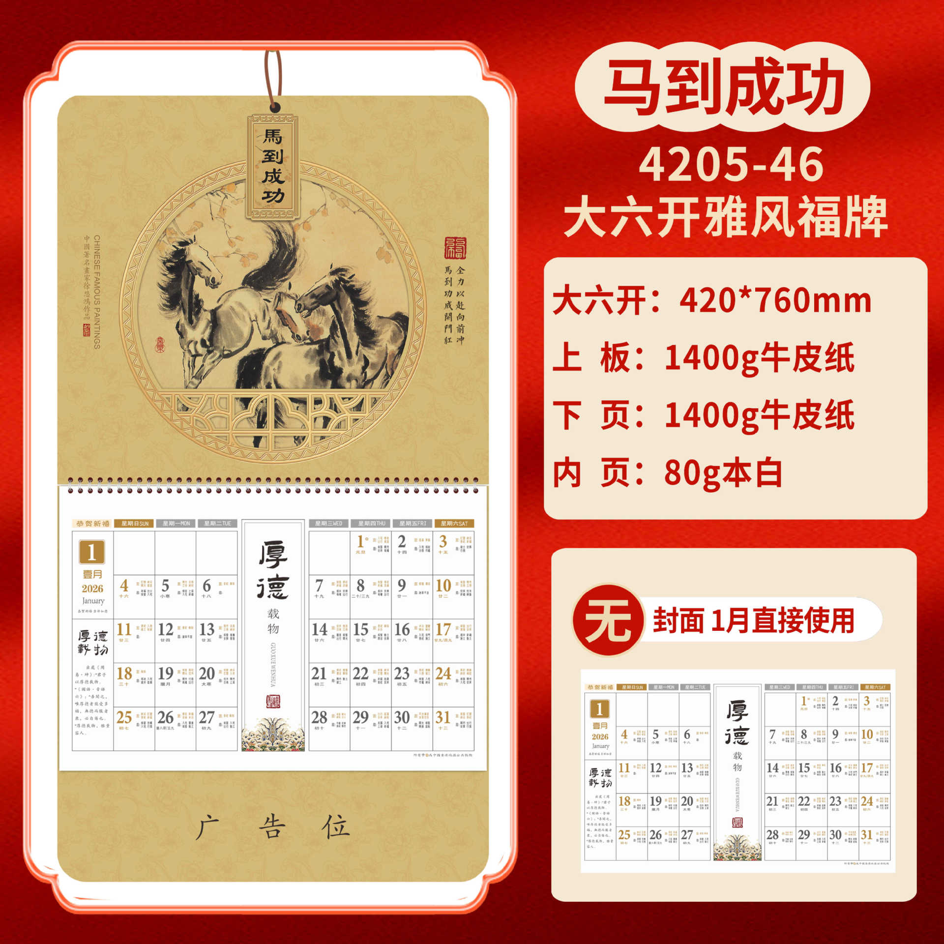 Календарь на 2026 год — Год Лошади, календарь удачи, персонализированный рекламный сувенир для компаний, календарь с индивидуальной печатью, настенный календарь, ежемесячный календарь, настольный календарь, оптом
