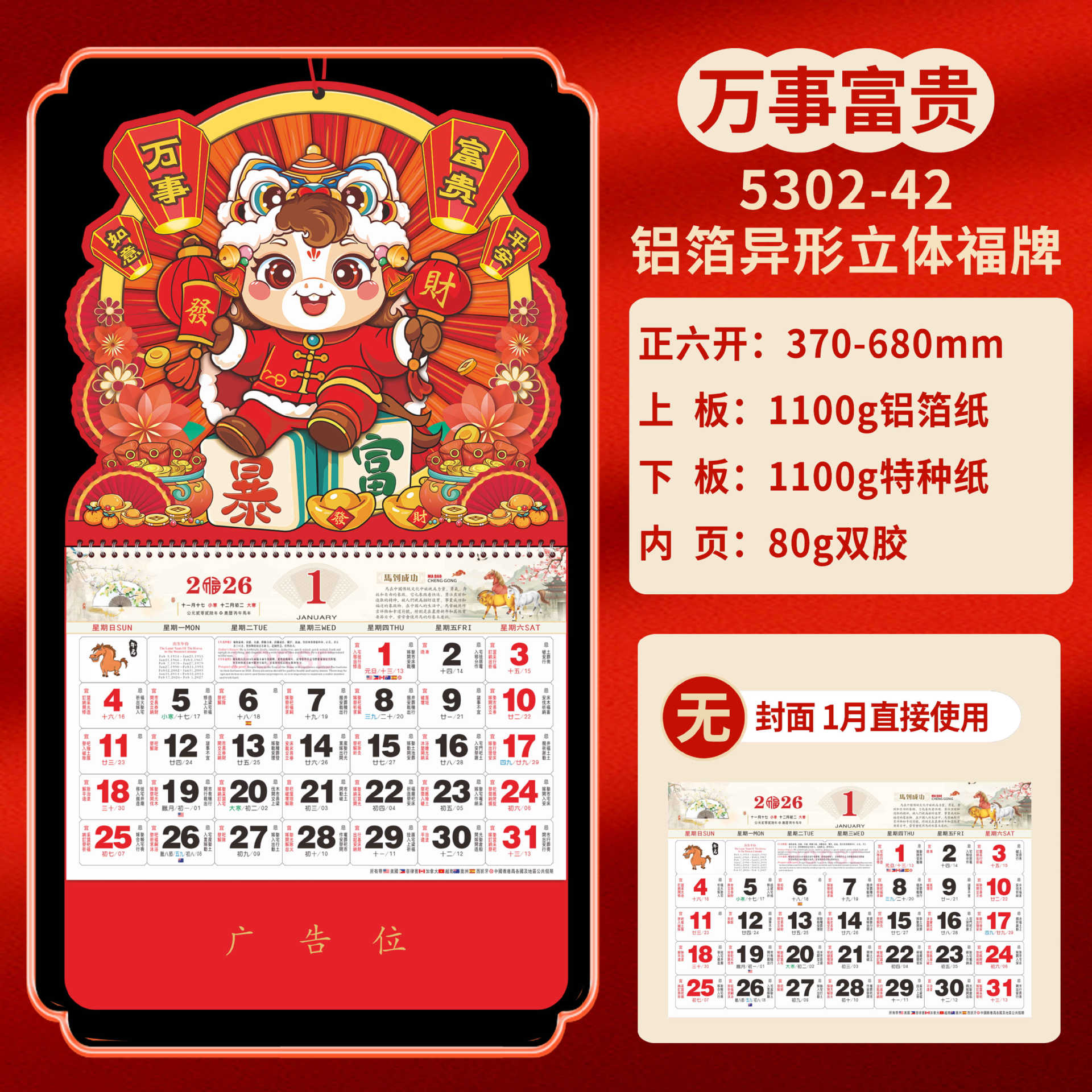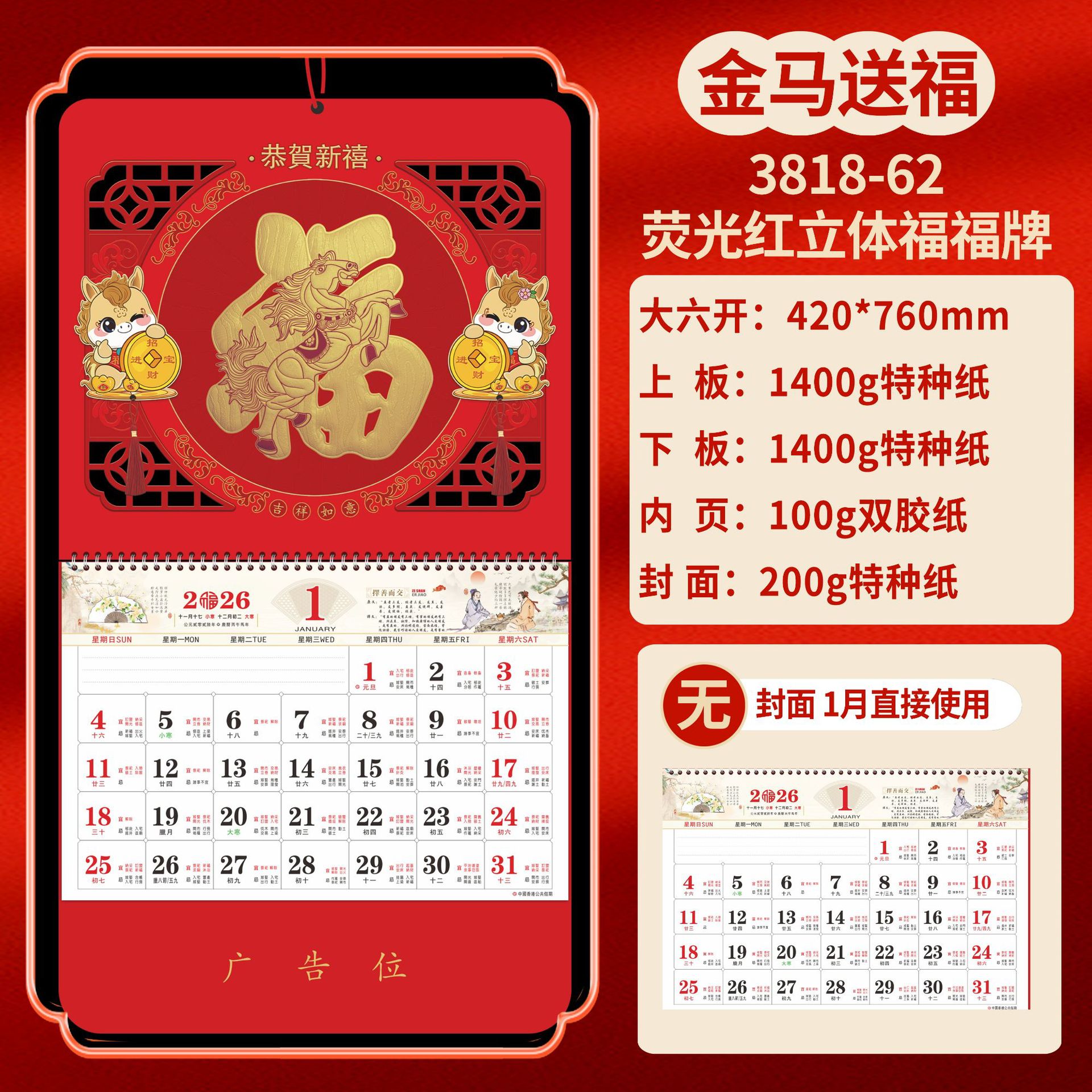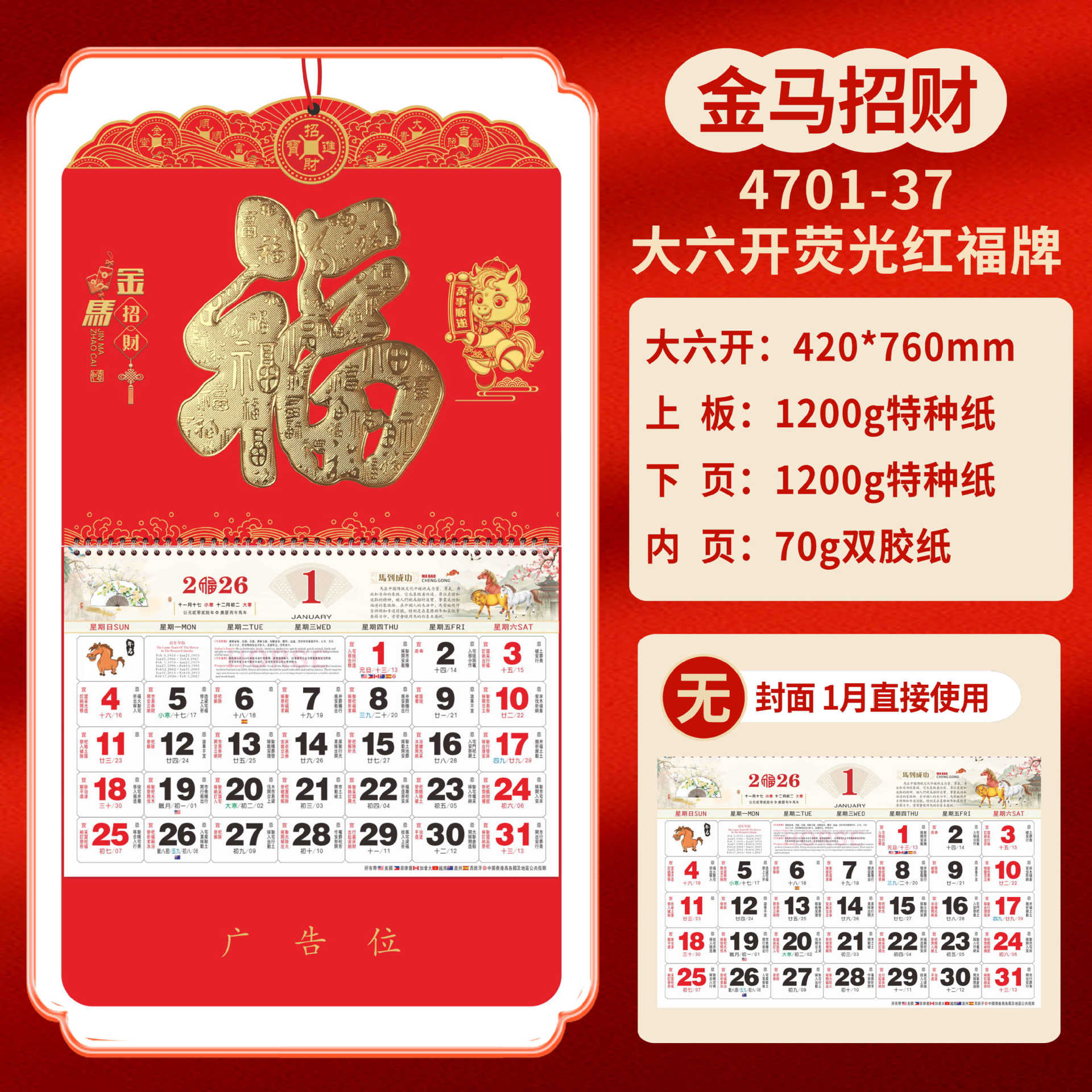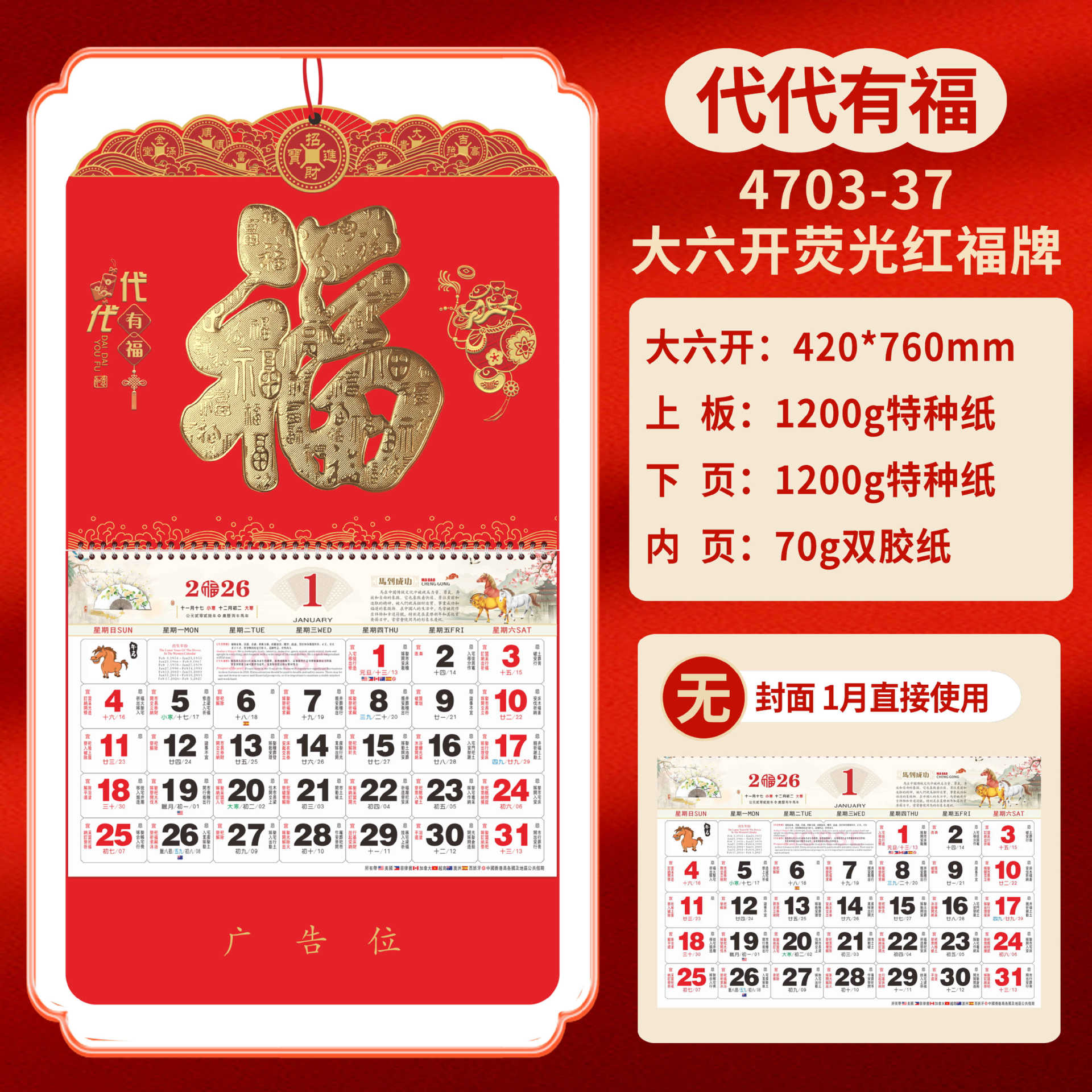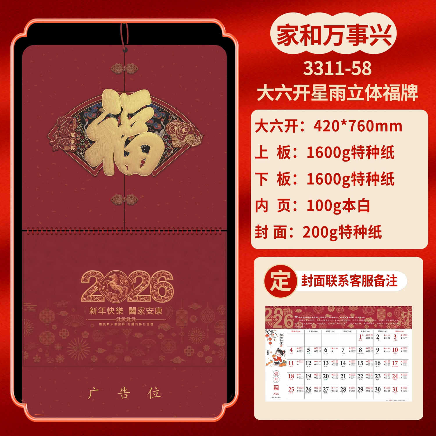 Календарь на 2026 год — Год Лошади, календарь удачи, персонализированный рекламный сувенир для компаний, календарь с индивидуальной печатью, настенный календарь, ежемесячный календарь, настольный календарь, оптом