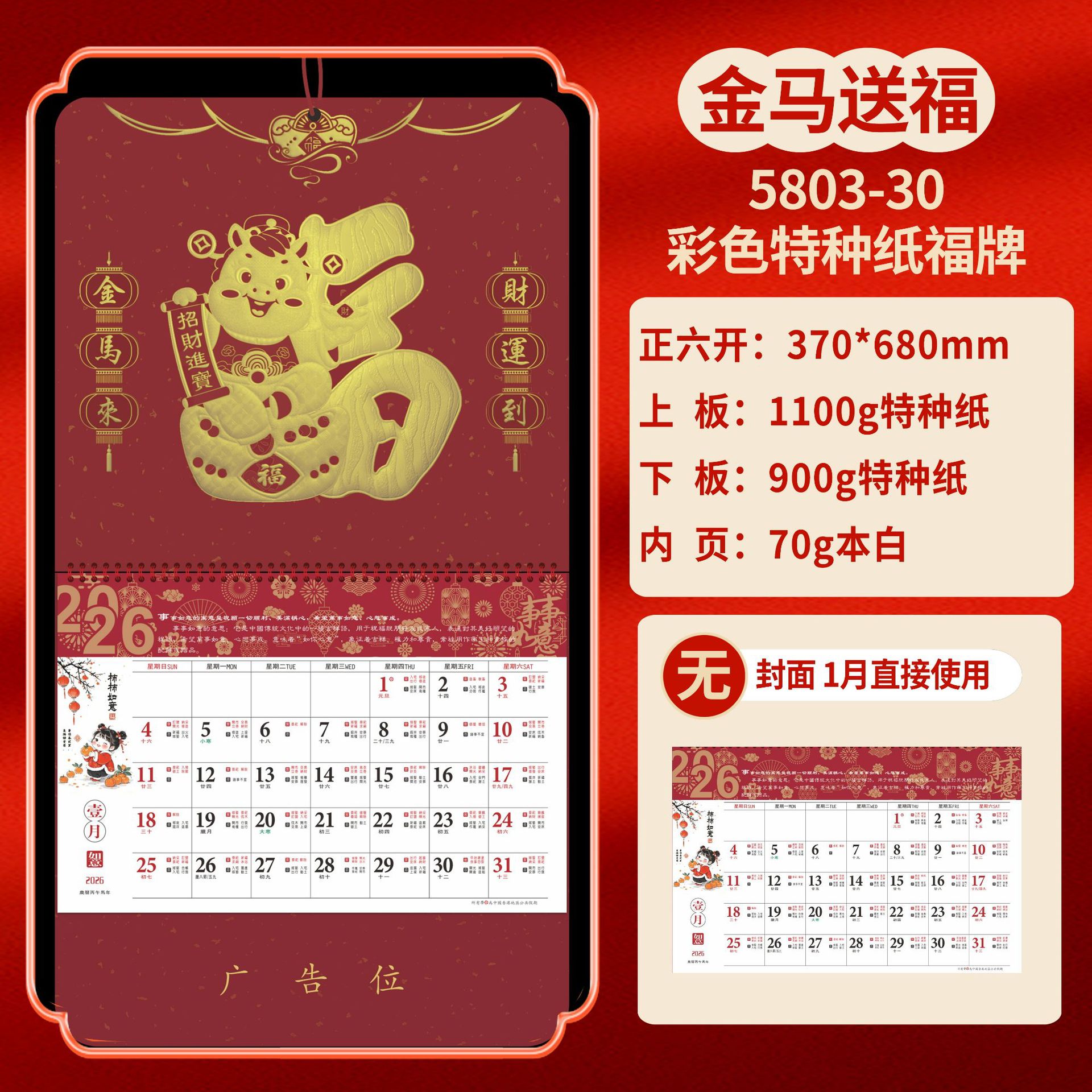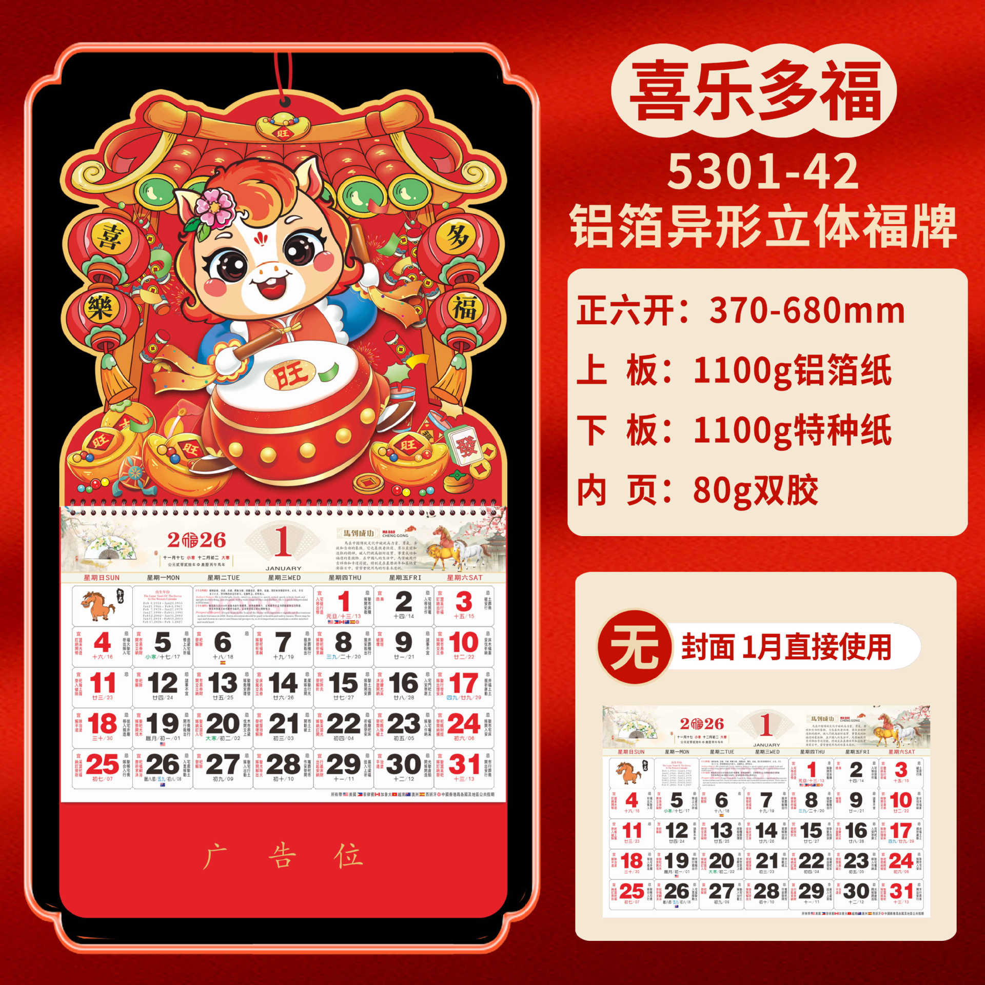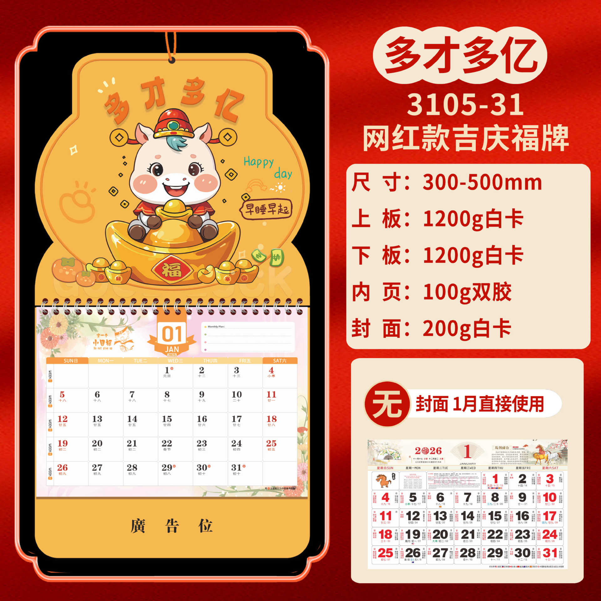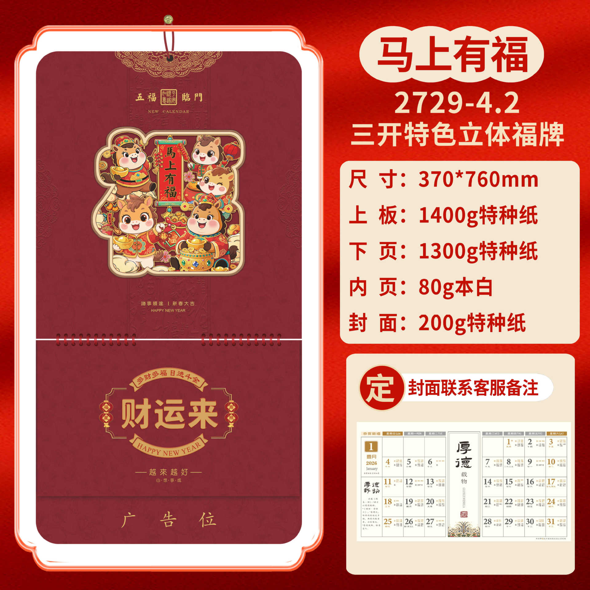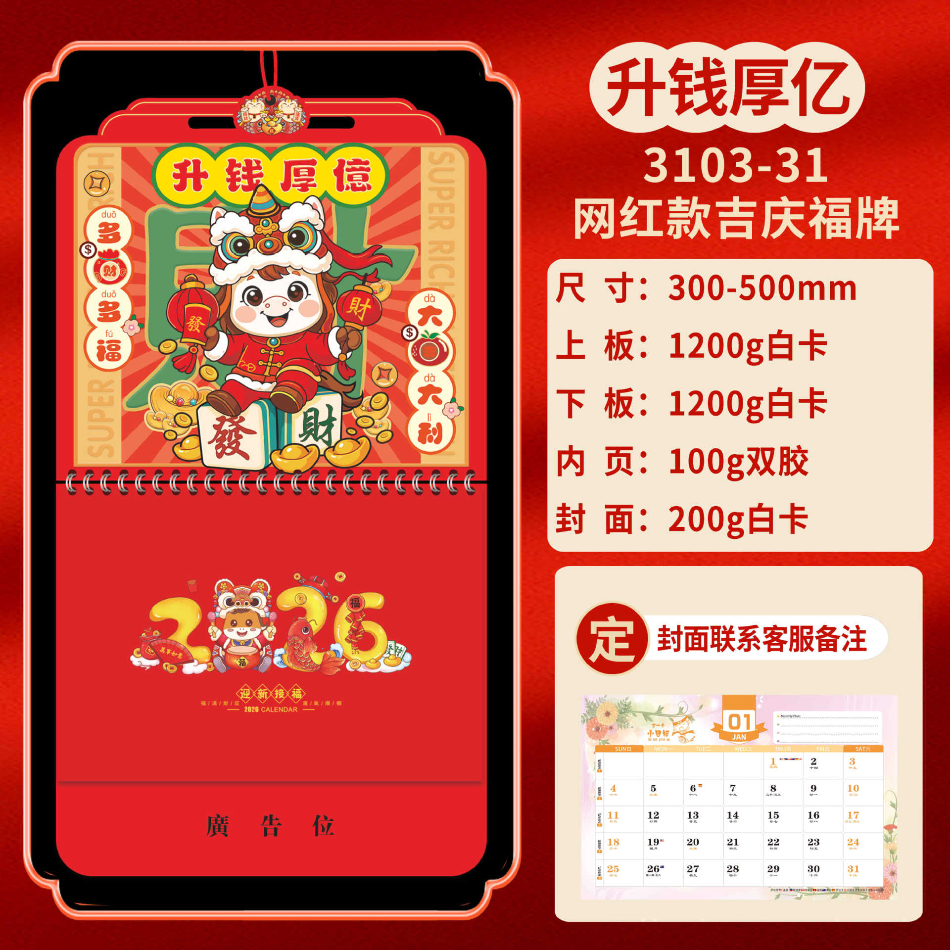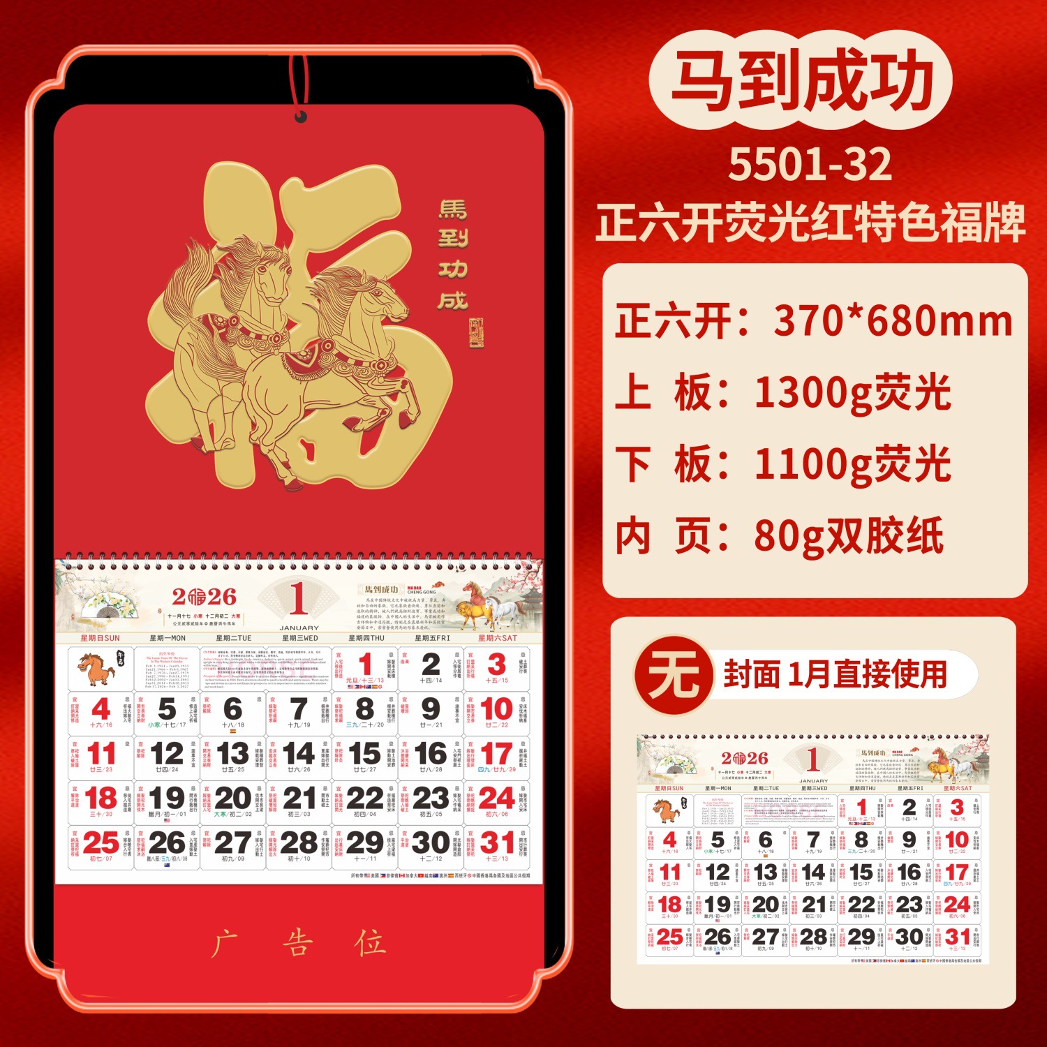 Календарь на 2026 год — Год Лошади, календарь удачи, персонализированный рекламный сувенир для компаний, календарь с индивидуальной печатью, настенный календарь, ежемесячный календарь, настольный календарь, оптом