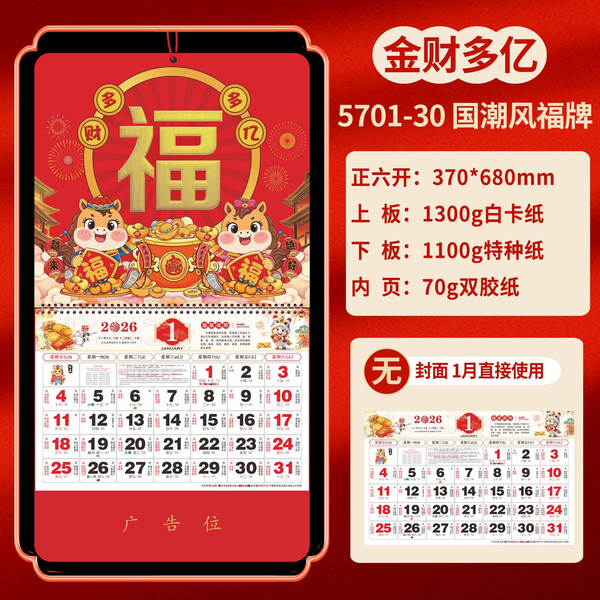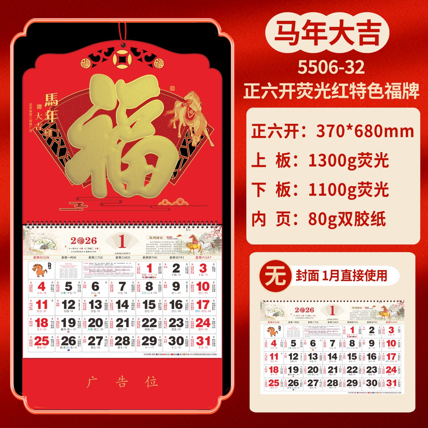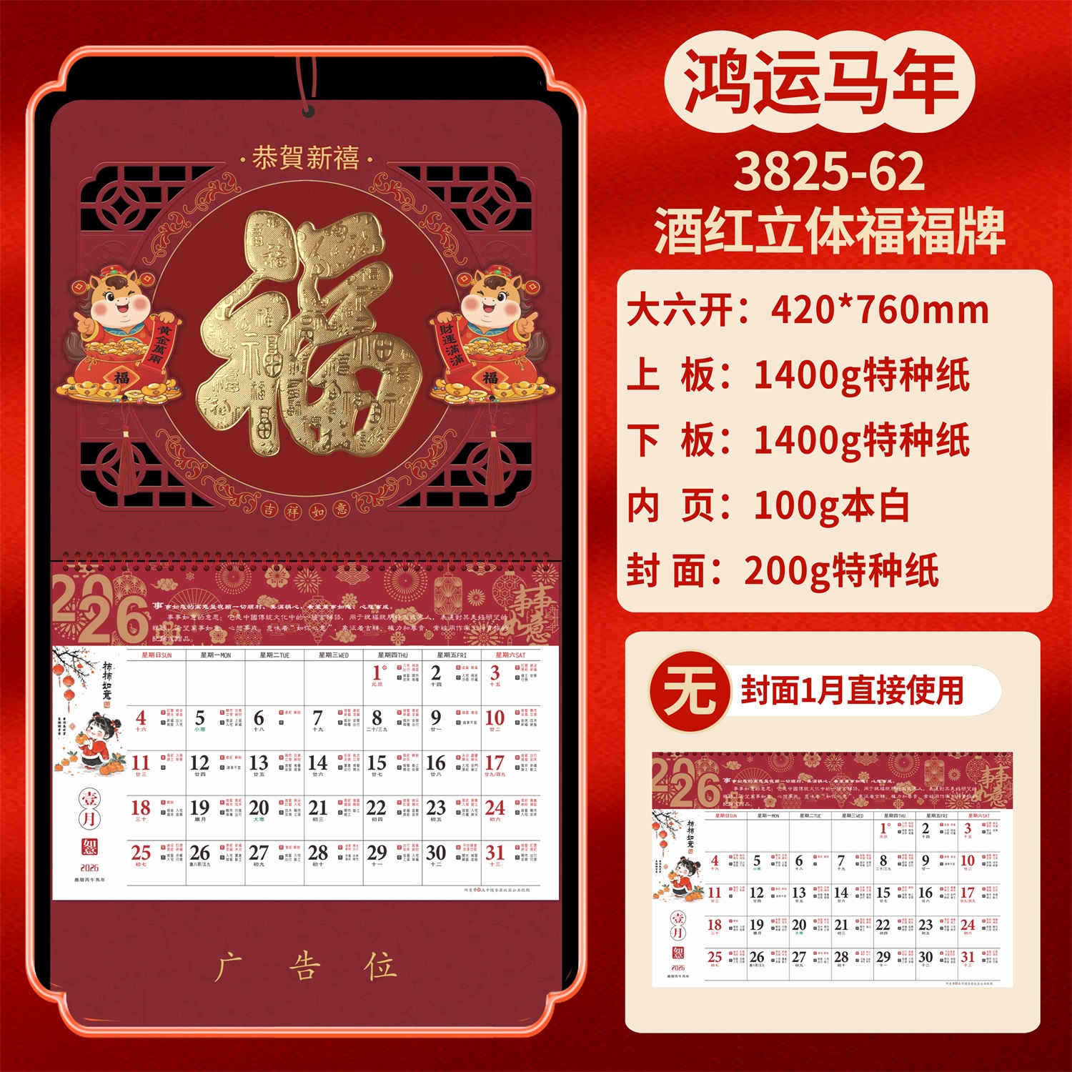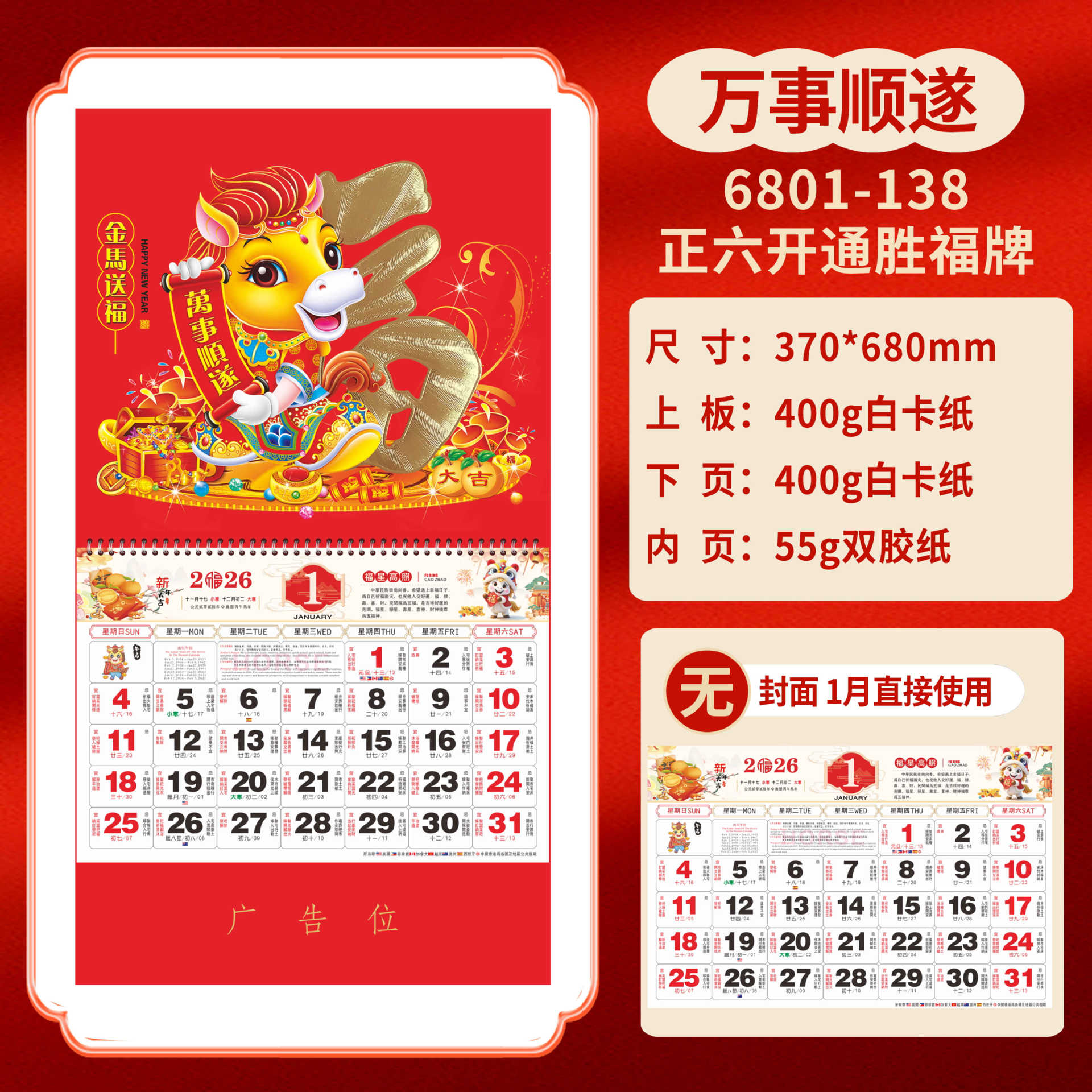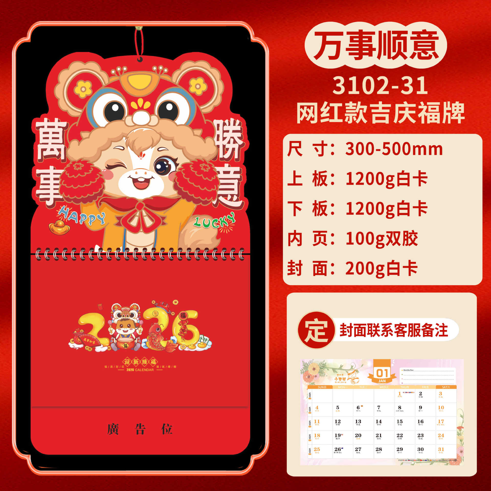 Календарь на 2026 год — Год Лошади, календарь удачи, персонализированный рекламный сувенир для компаний, календарь с индивидуальной печатью, настенный календарь, ежемесячный календарь, настольный календарь, оптом