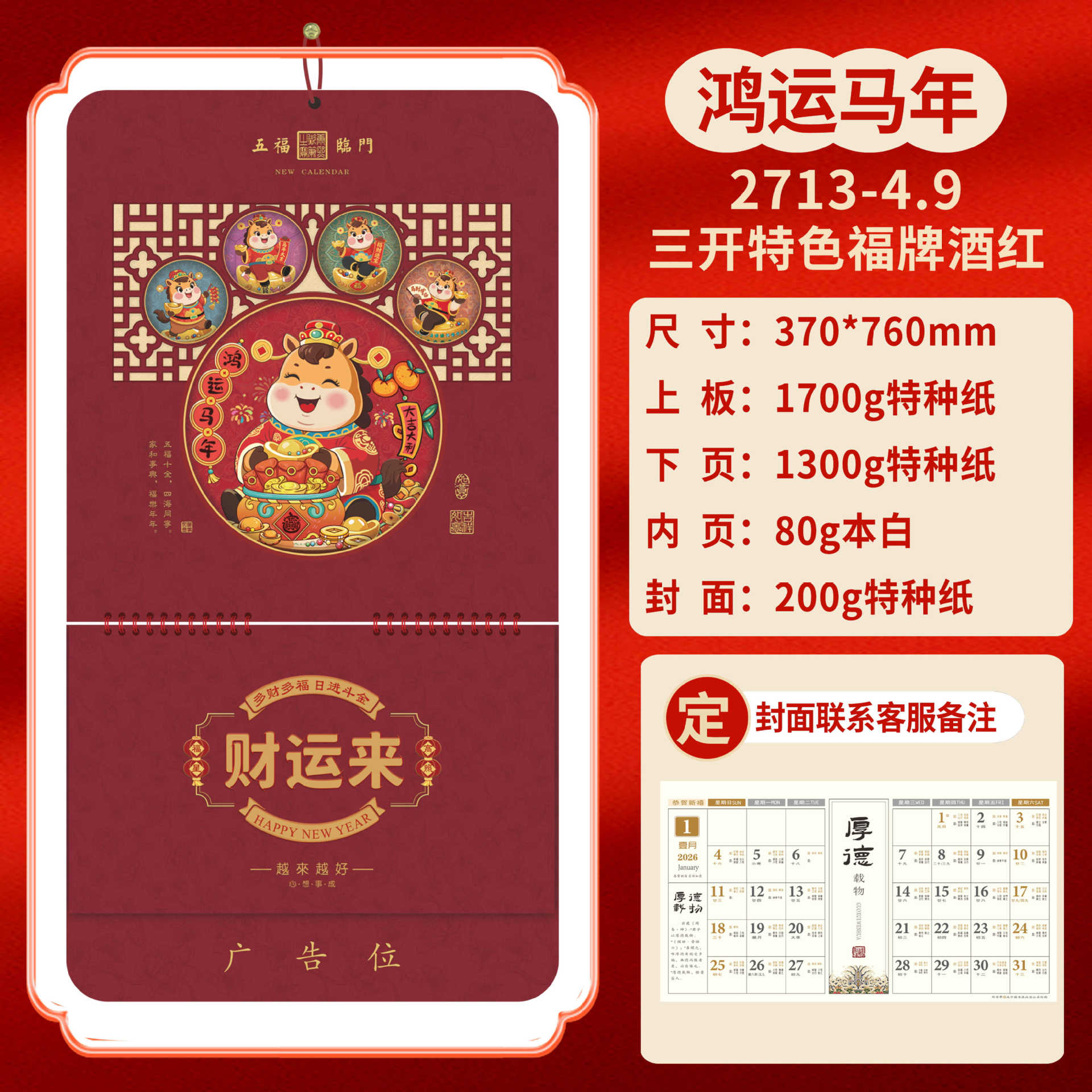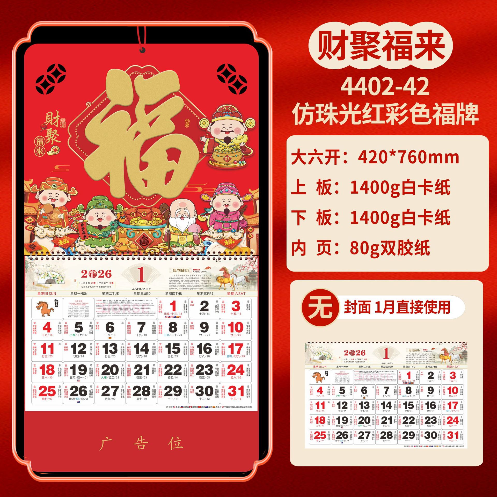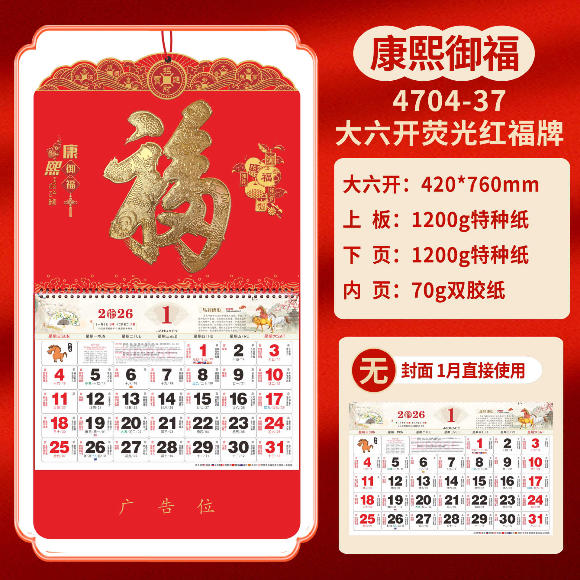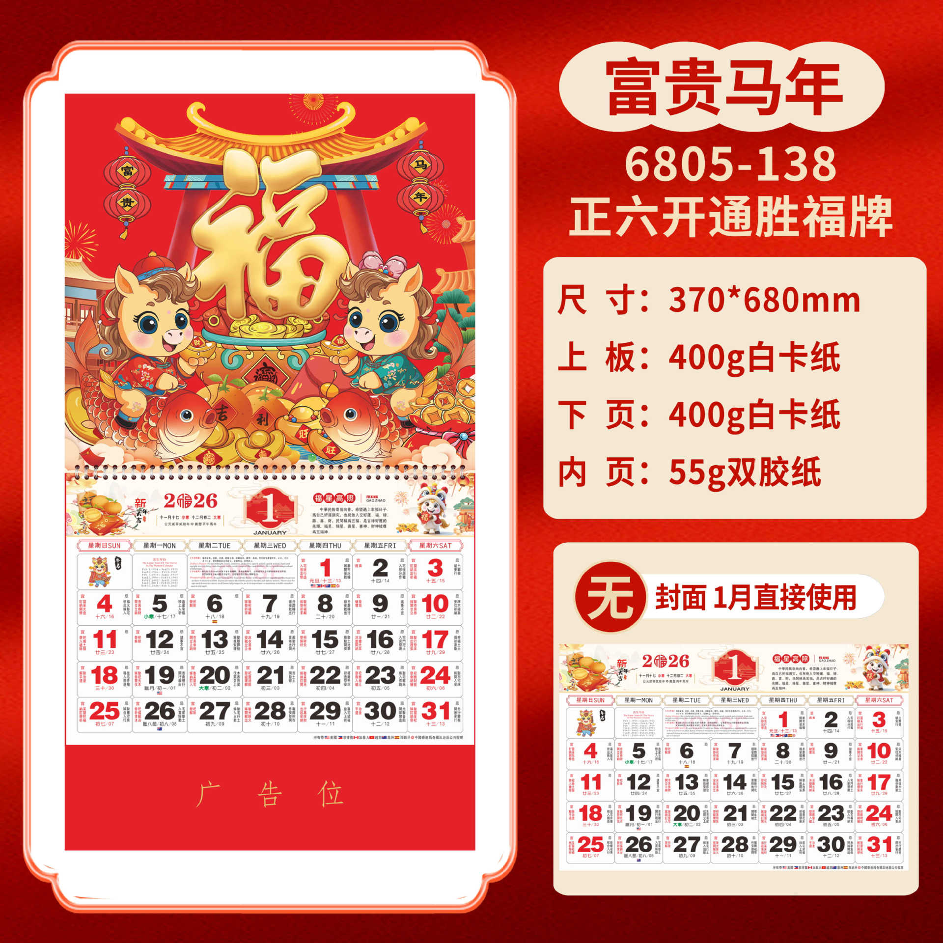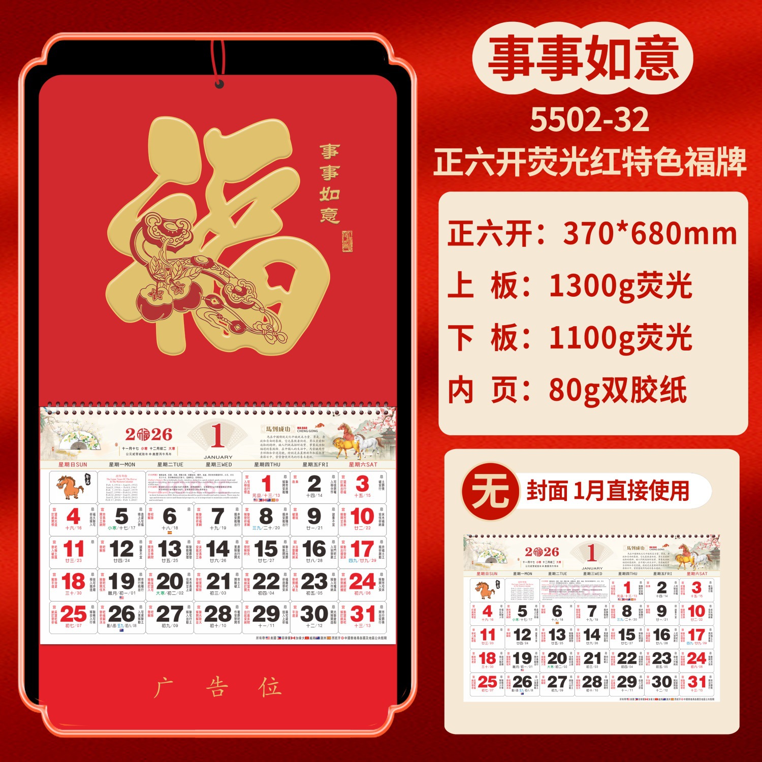 Календарь на 2026 год — Год Лошади, календарь удачи, персонализированный рекламный сувенир для компаний, календарь с индивидуальной печатью, настенный календарь, ежемесячный календарь, настольный календарь, оптом