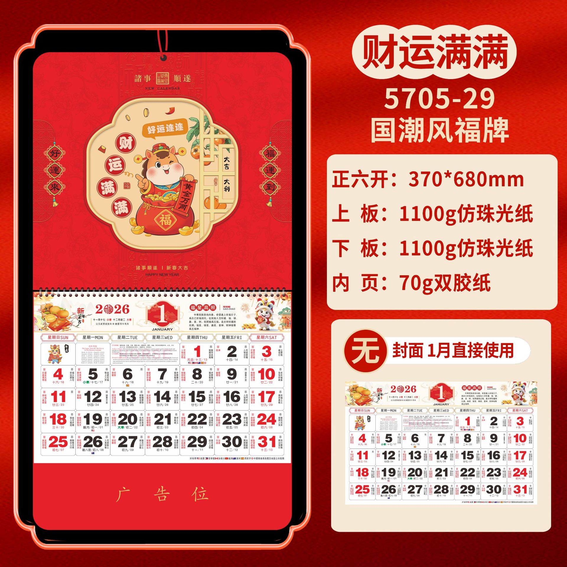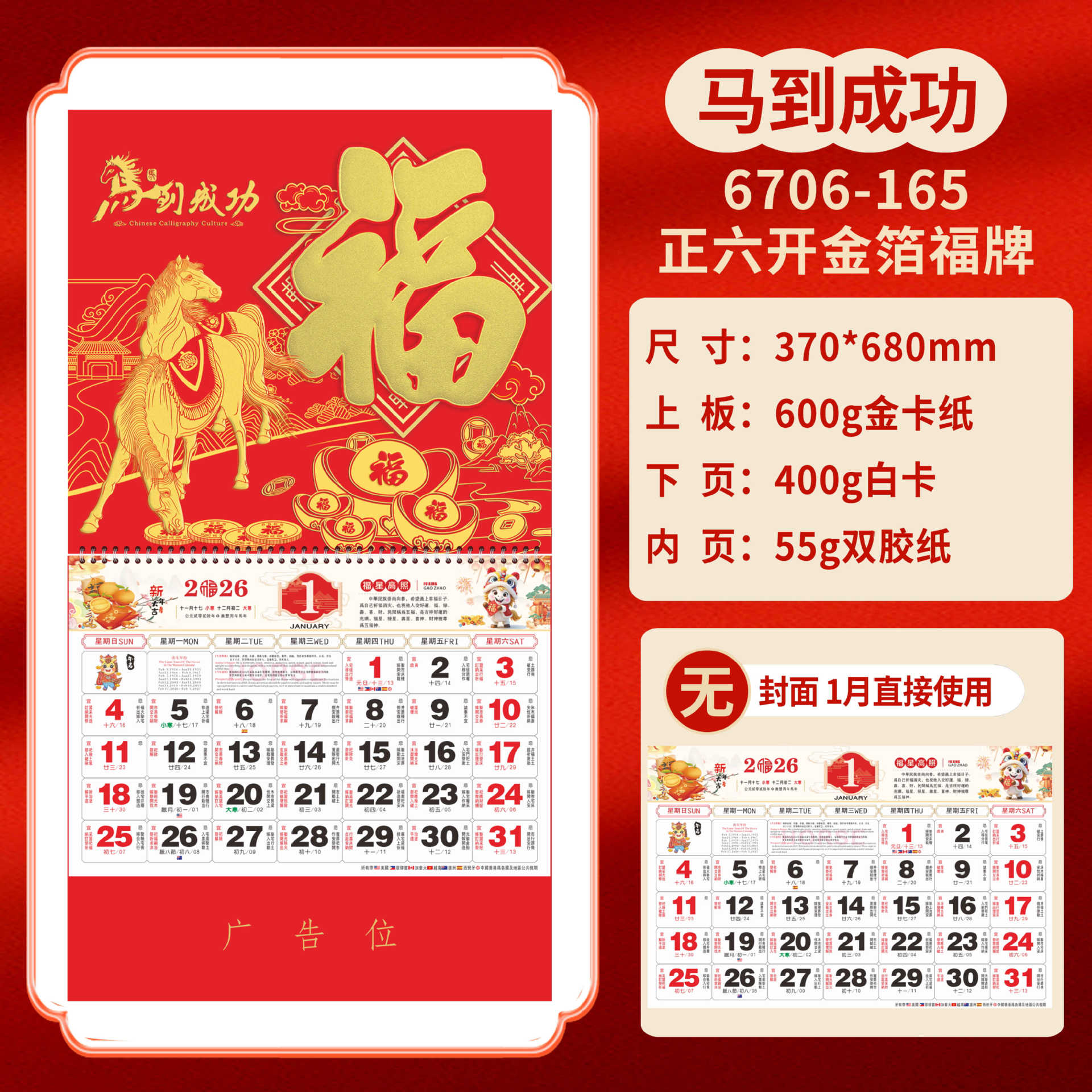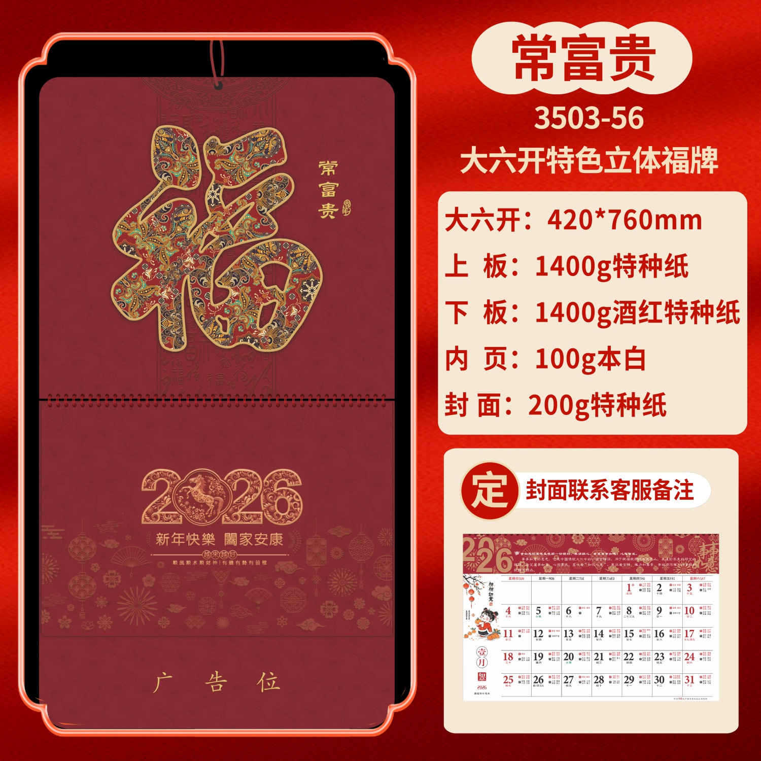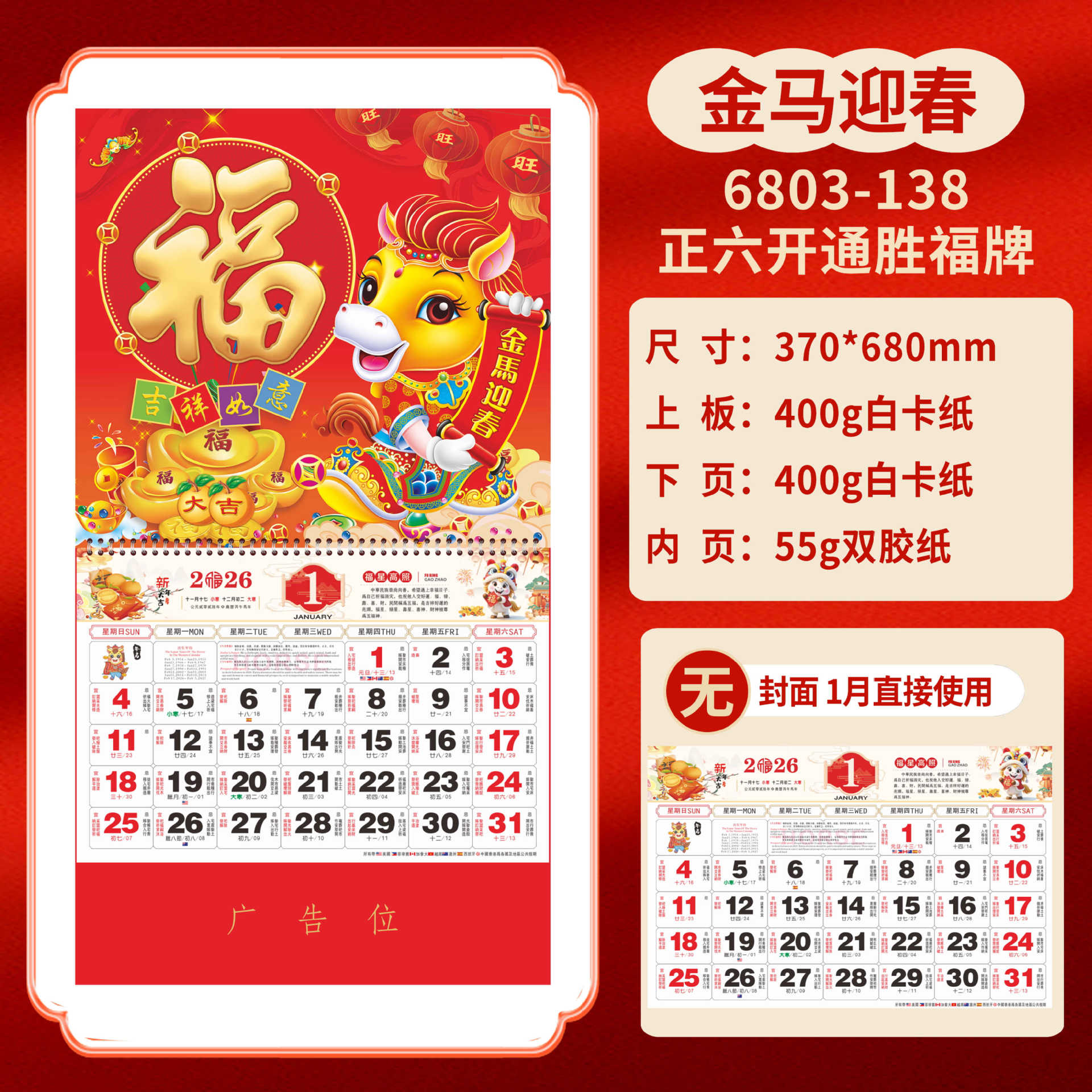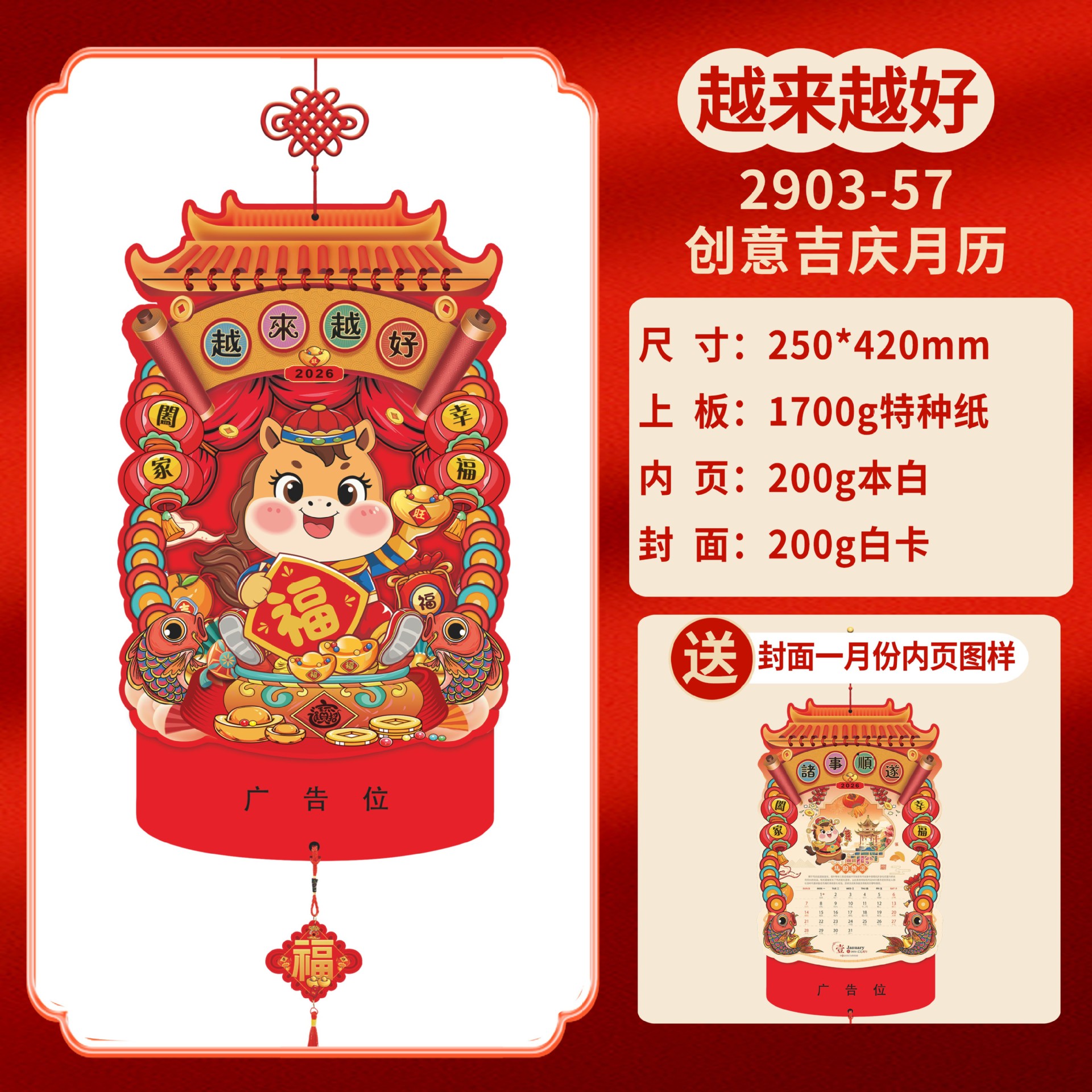 Календарь на 2026 год — Год Лошади, календарь удачи, персонализированный рекламный сувенир для компаний, календарь с индивидуальной печатью, настенный календарь, ежемесячный календарь, настольный календарь, оптом