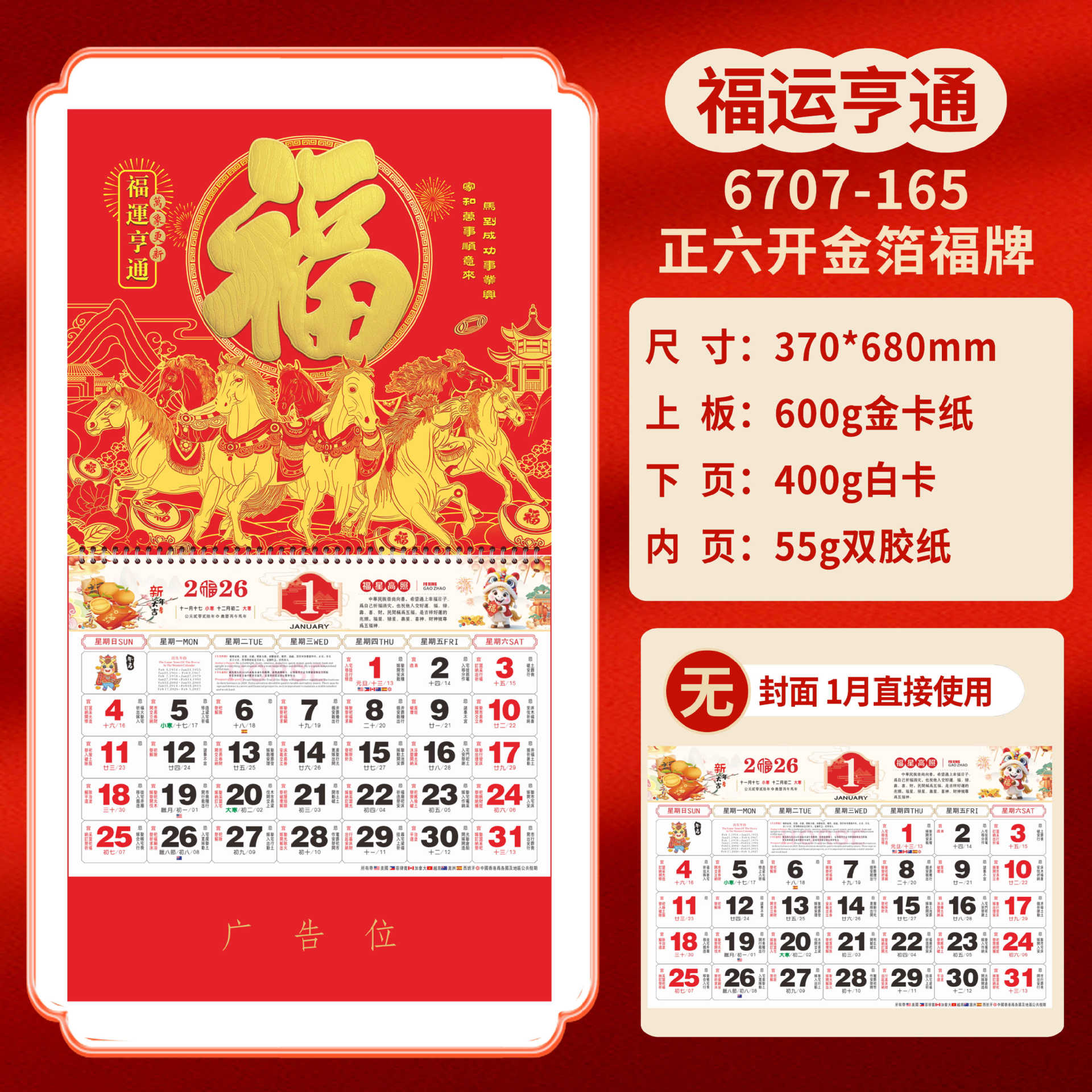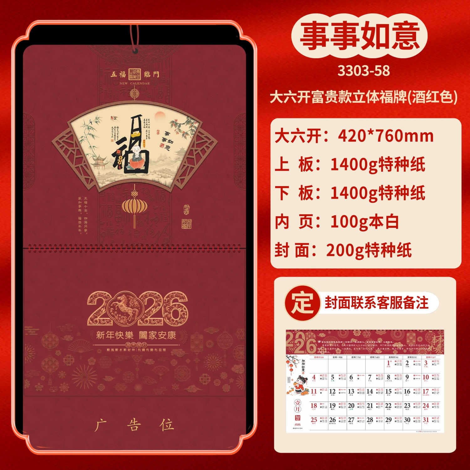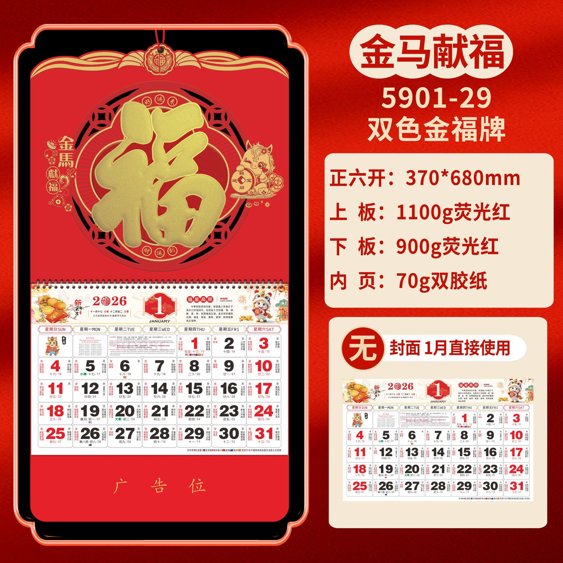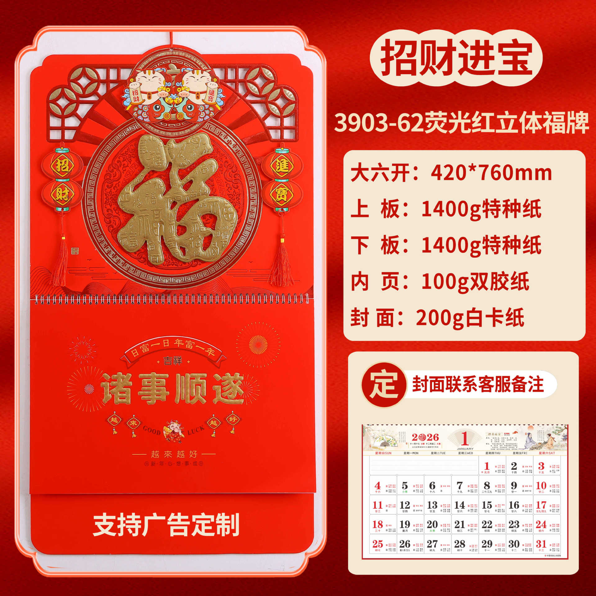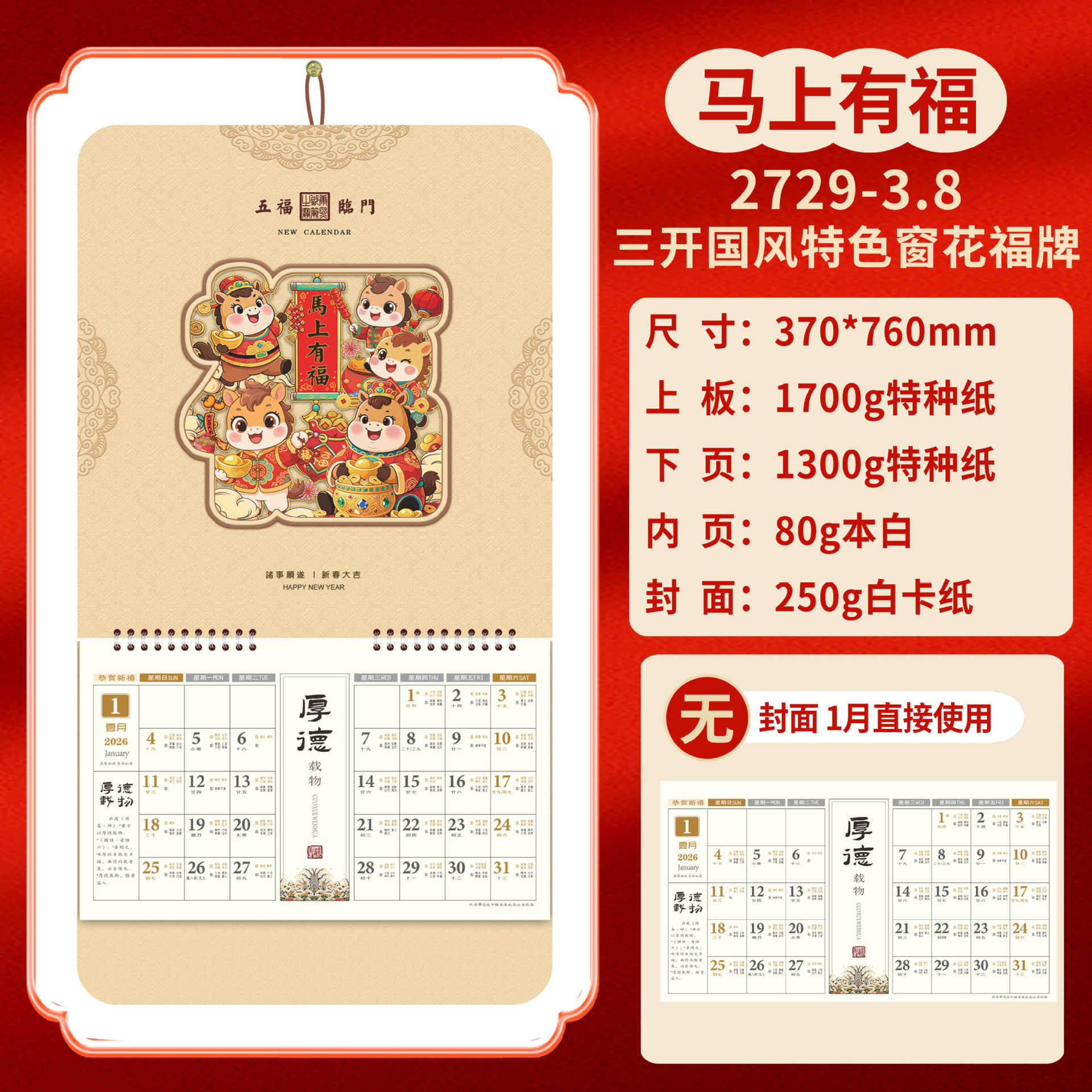 Календарь на 2026 год — Год Лошади, календарь удачи, персонализированный рекламный сувенир для компаний, календарь с индивидуальной печатью, настенный календарь, ежемесячный календарь, настольный календарь, оптом