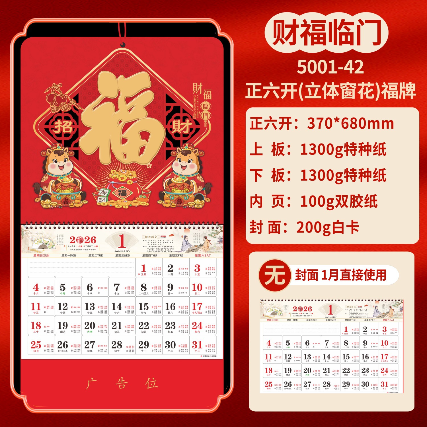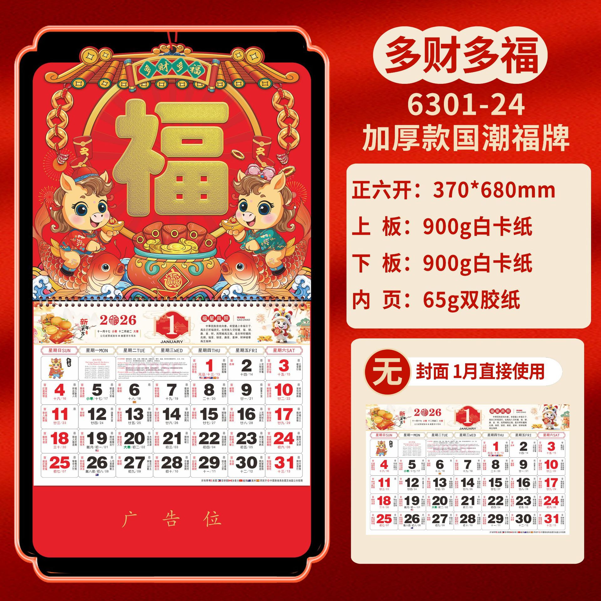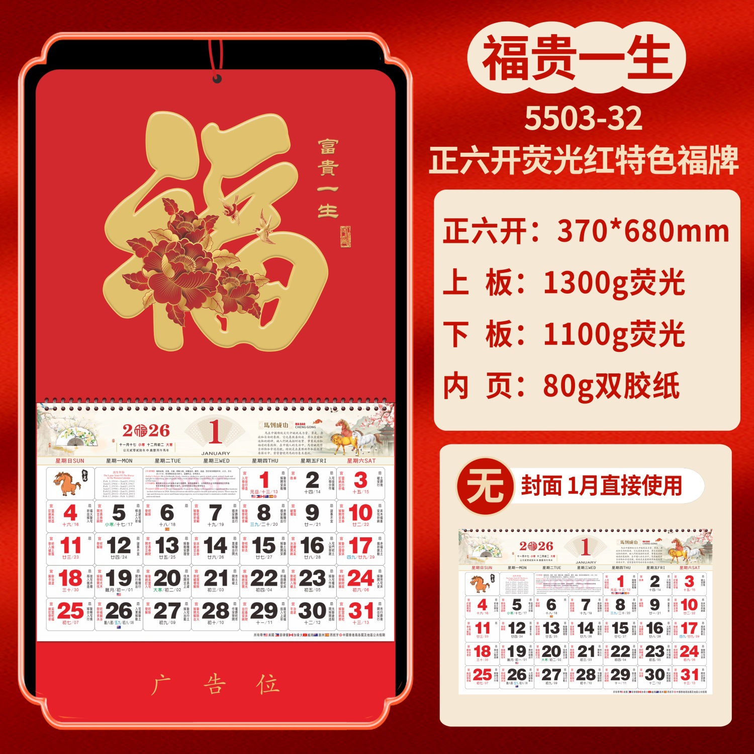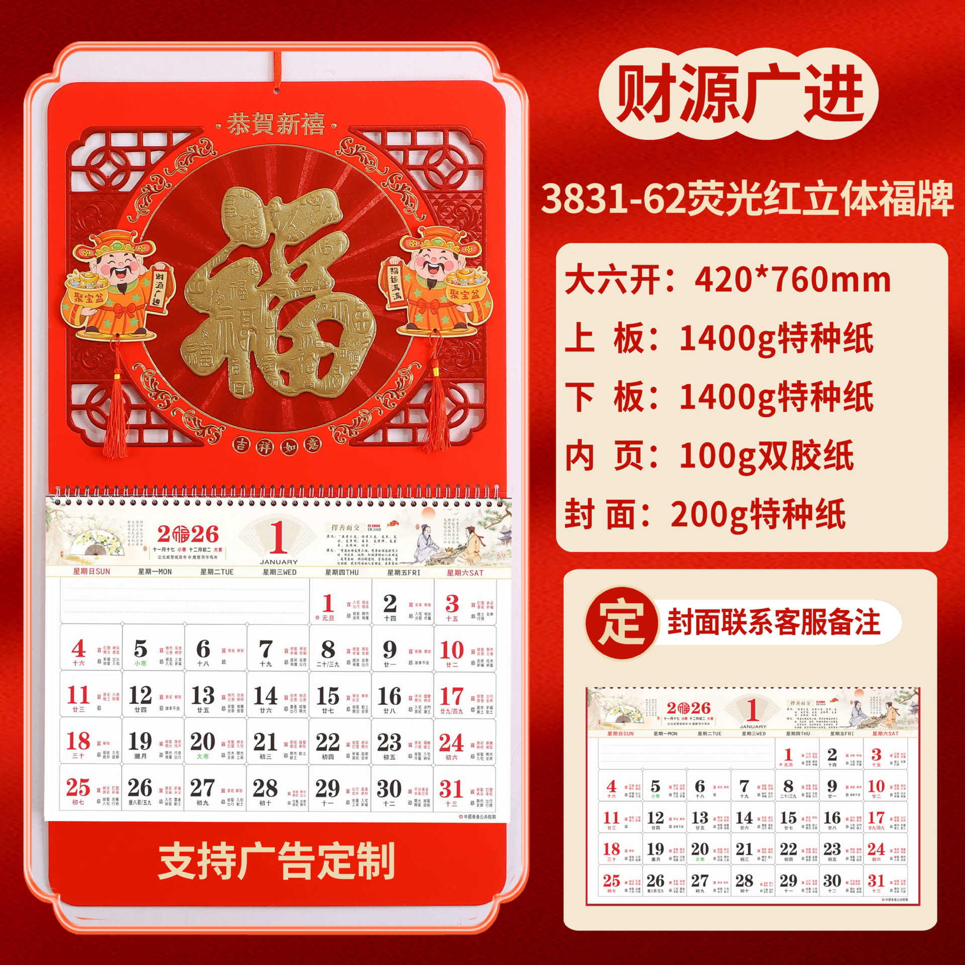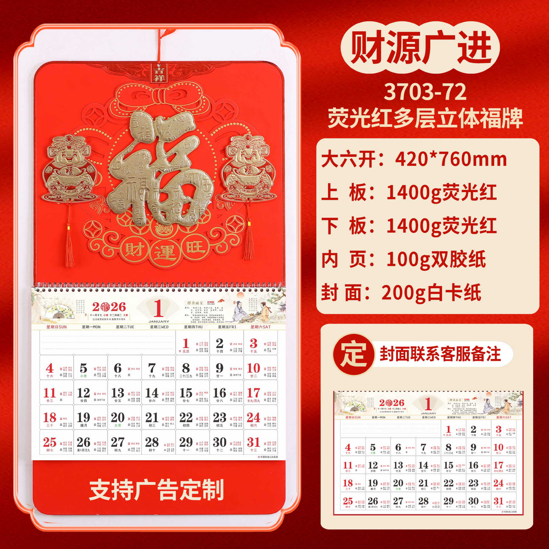 Календарь на 2026 год — Год Лошади, календарь удачи, персонализированный рекламный сувенир для компаний, календарь с индивидуальной печатью, настенный календарь, ежемесячный календарь, настольный календарь, оптом