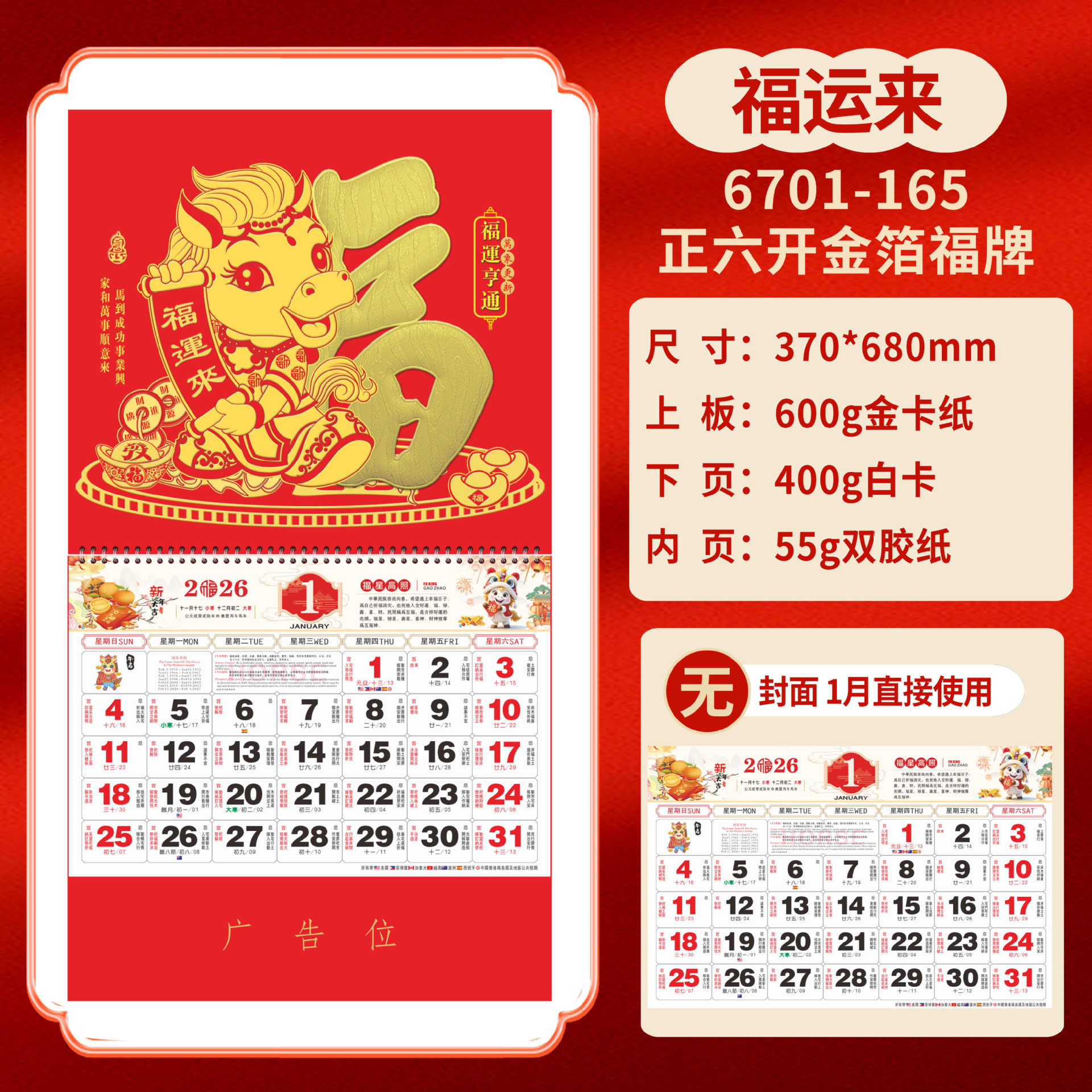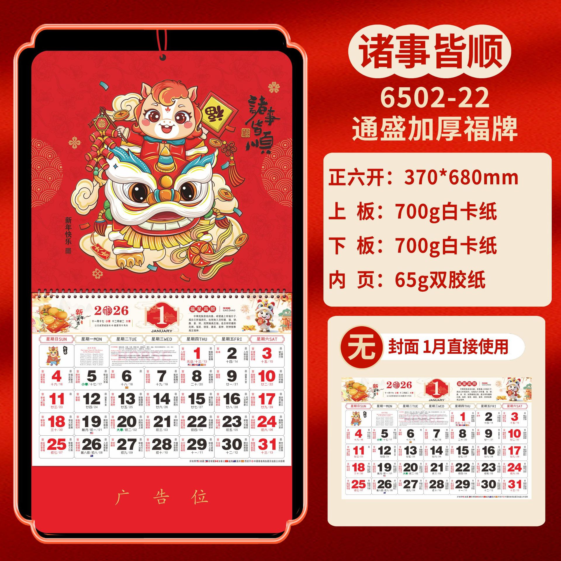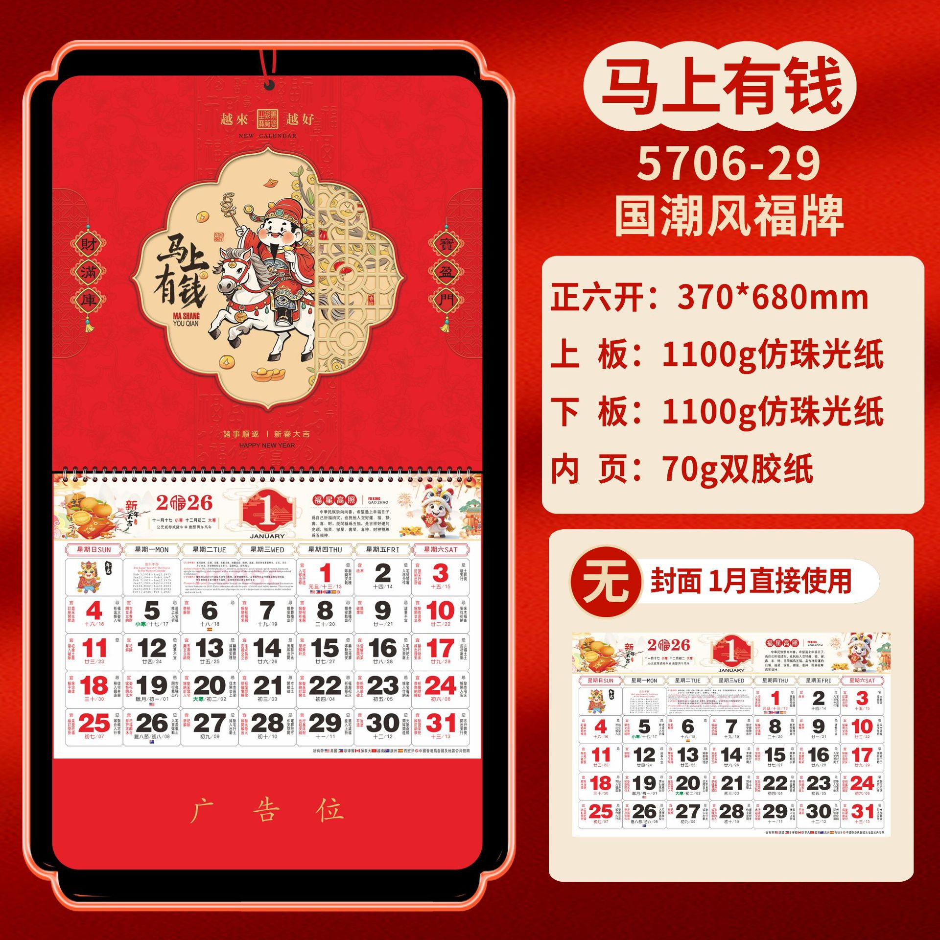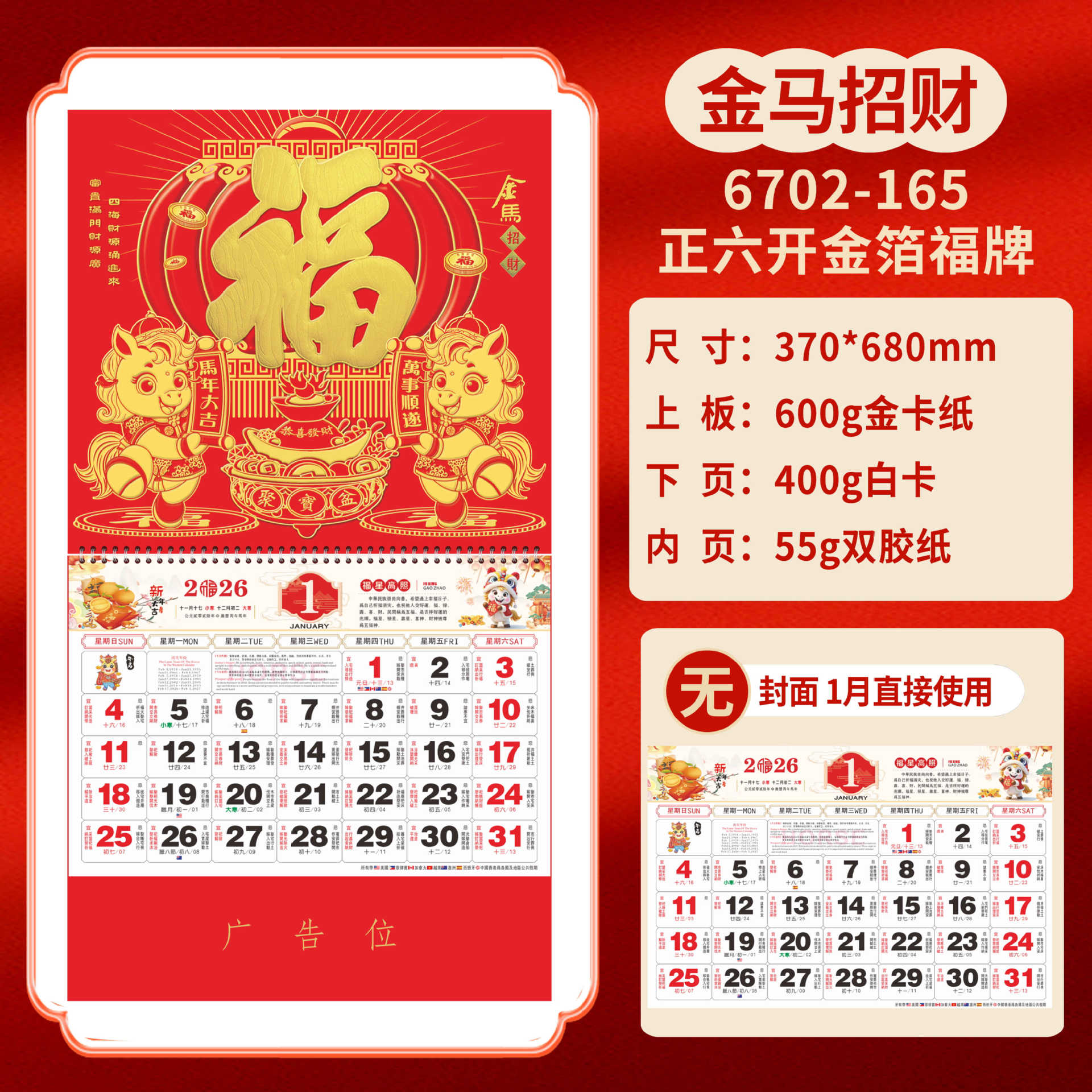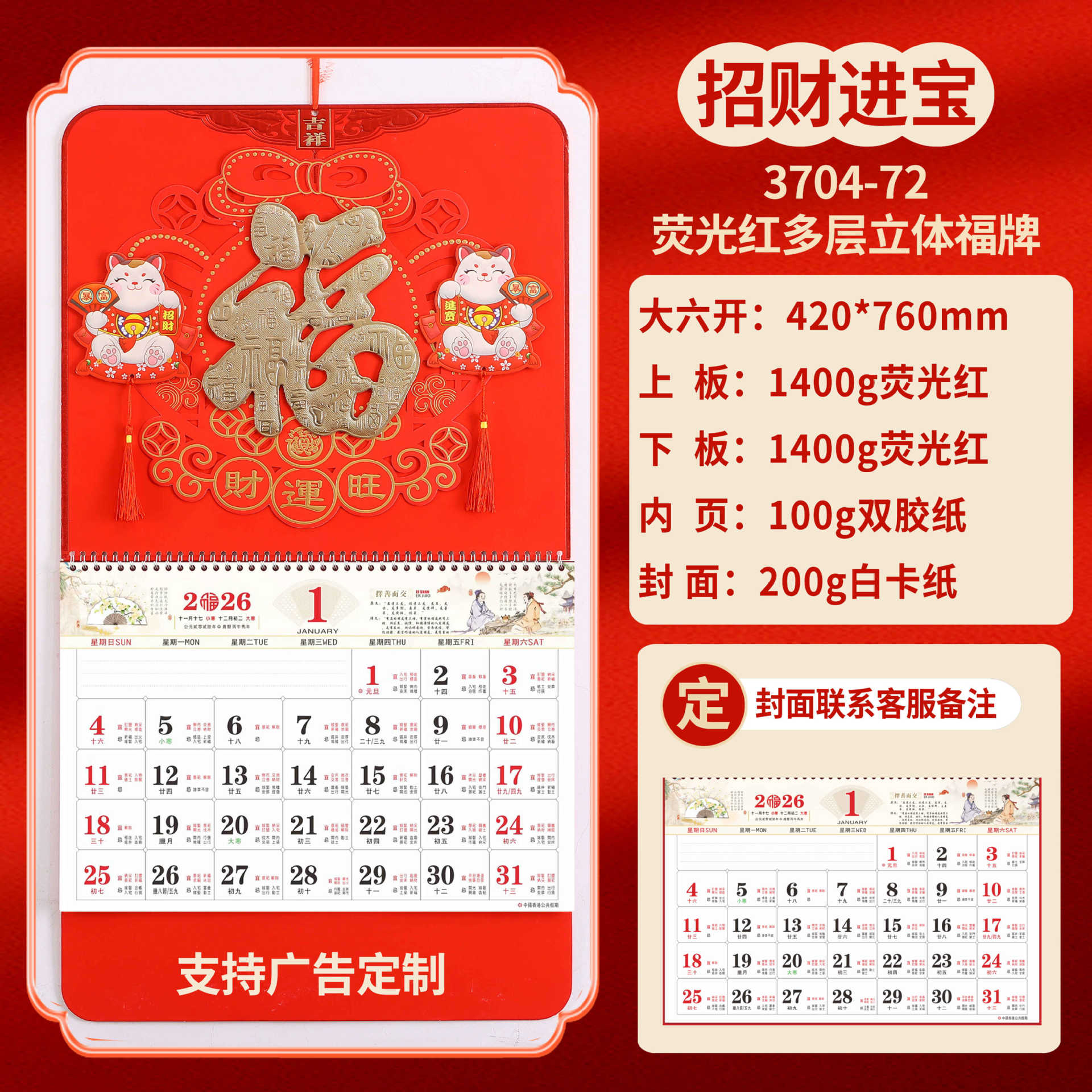 Календарь на 2026 год — Год Лошади, календарь удачи, персонализированный рекламный сувенир для компаний, календарь с индивидуальной печатью, настенный календарь, ежемесячный календарь, настольный календарь, оптом