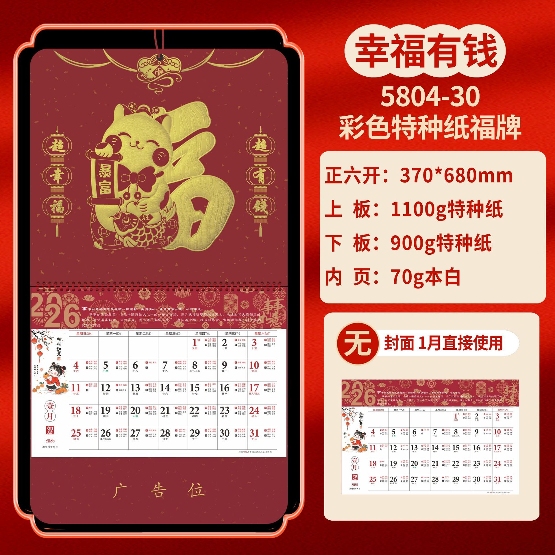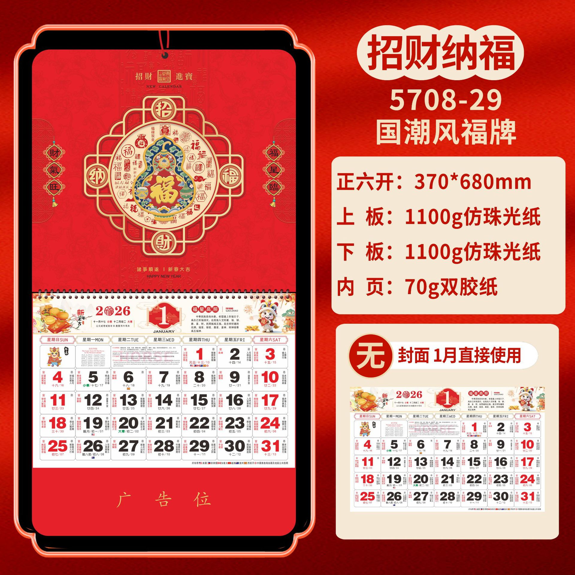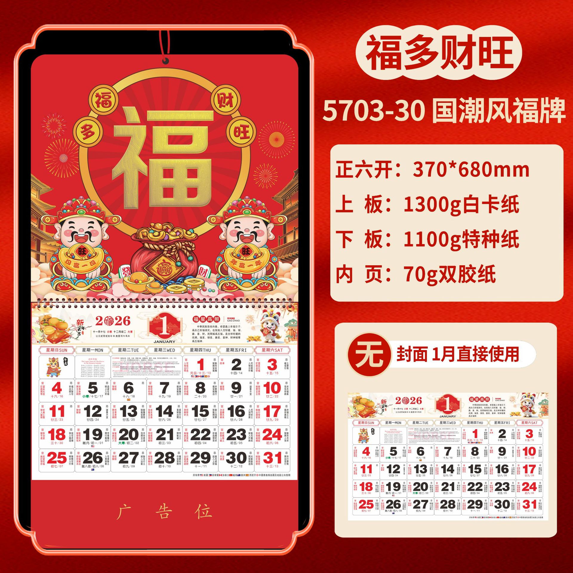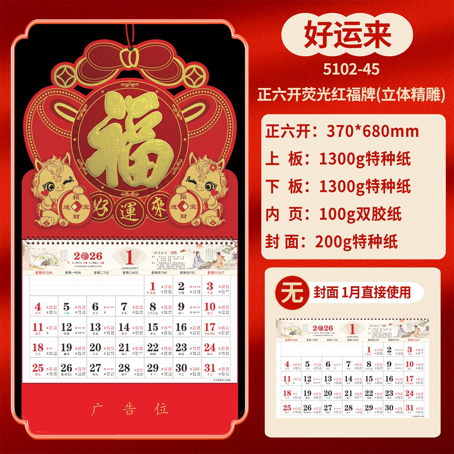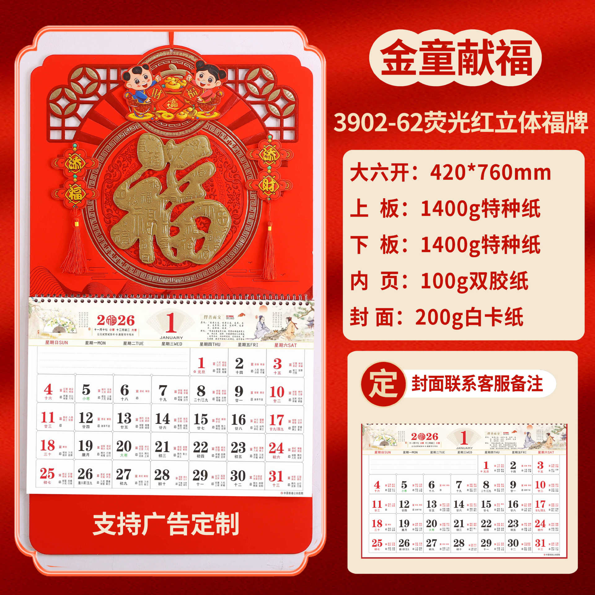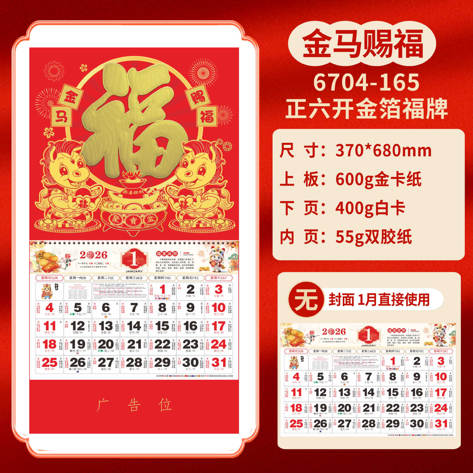 Календарь на 2026 год — Год Лошади, календарь удачи, персонализированный рекламный сувенир для компаний, календарь с индивидуальной печатью, настенный календарь, ежемесячный календарь, настольный календарь, оптом