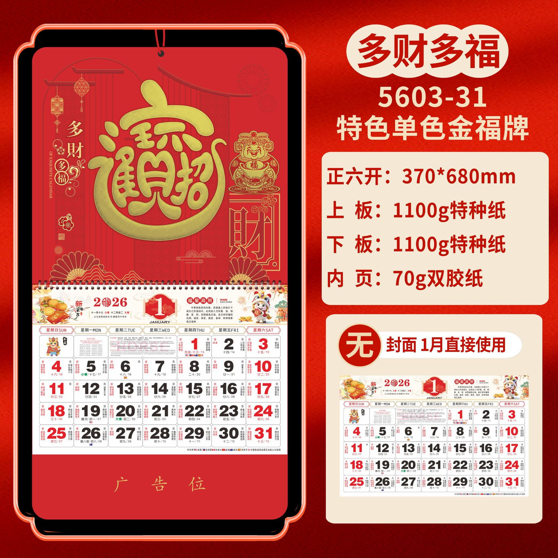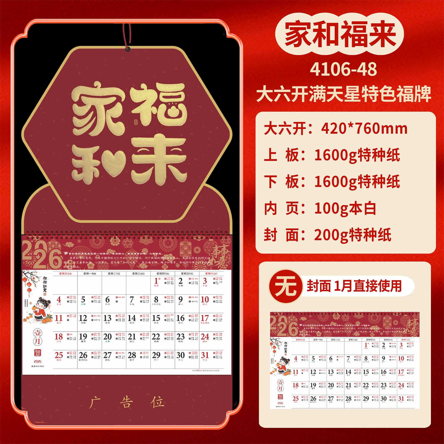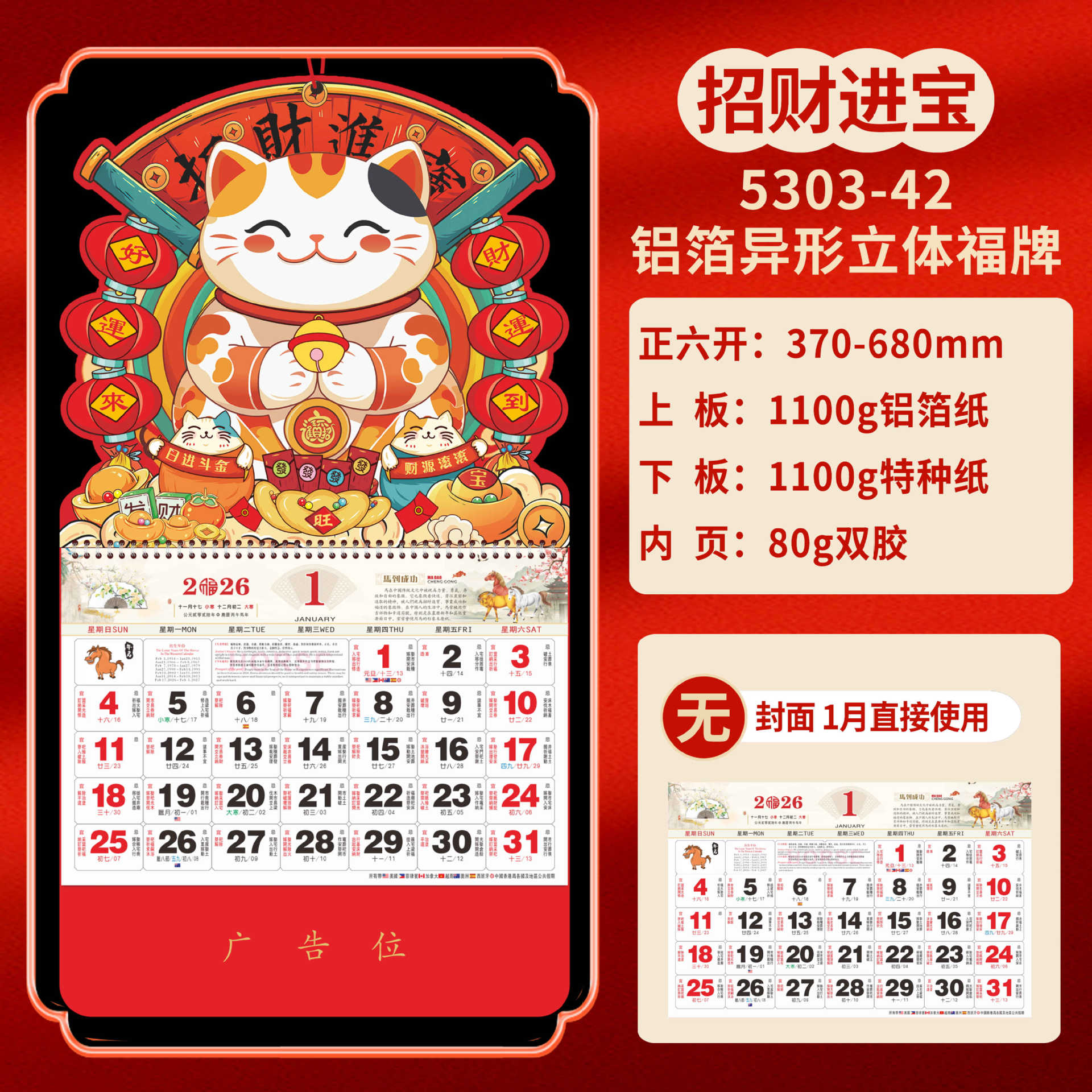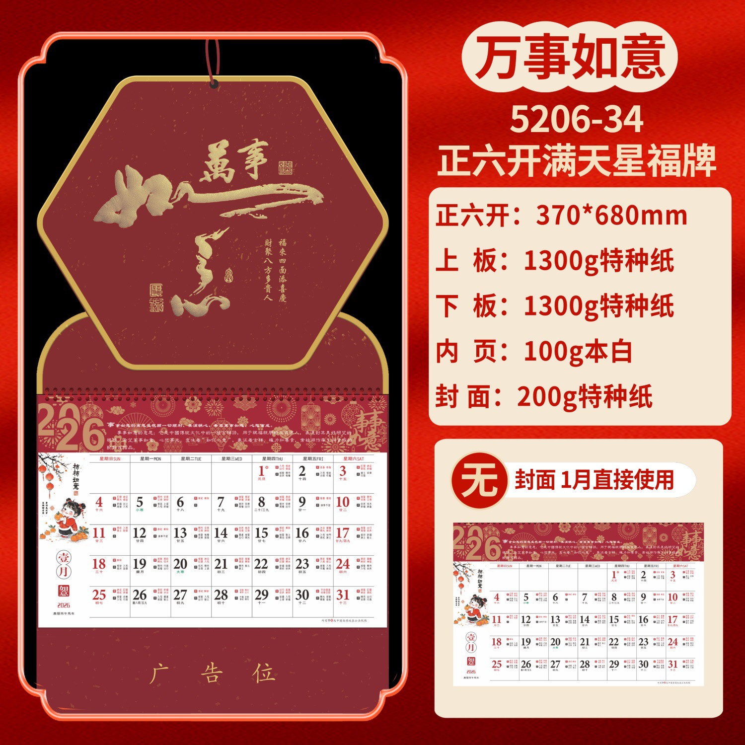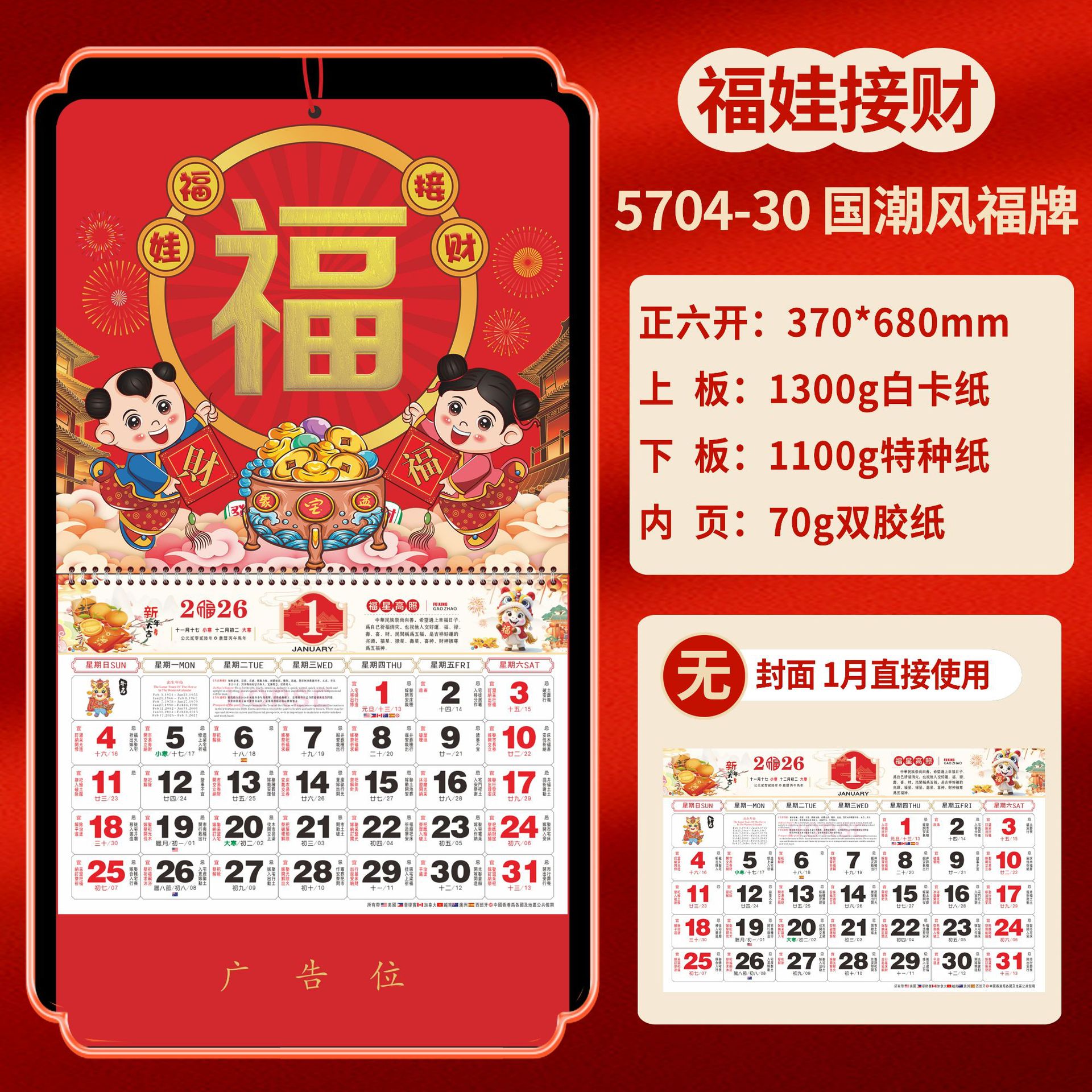 Календарь на 2026 год — Год Лошади, календарь удачи, персонализированный рекламный сувенир для компаний, календарь с индивидуальной печатью, настенный календарь, ежемесячный календарь, настольный календарь, оптом