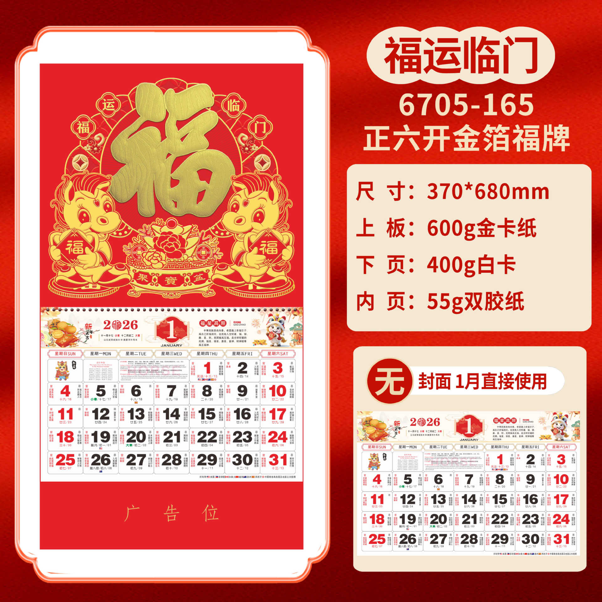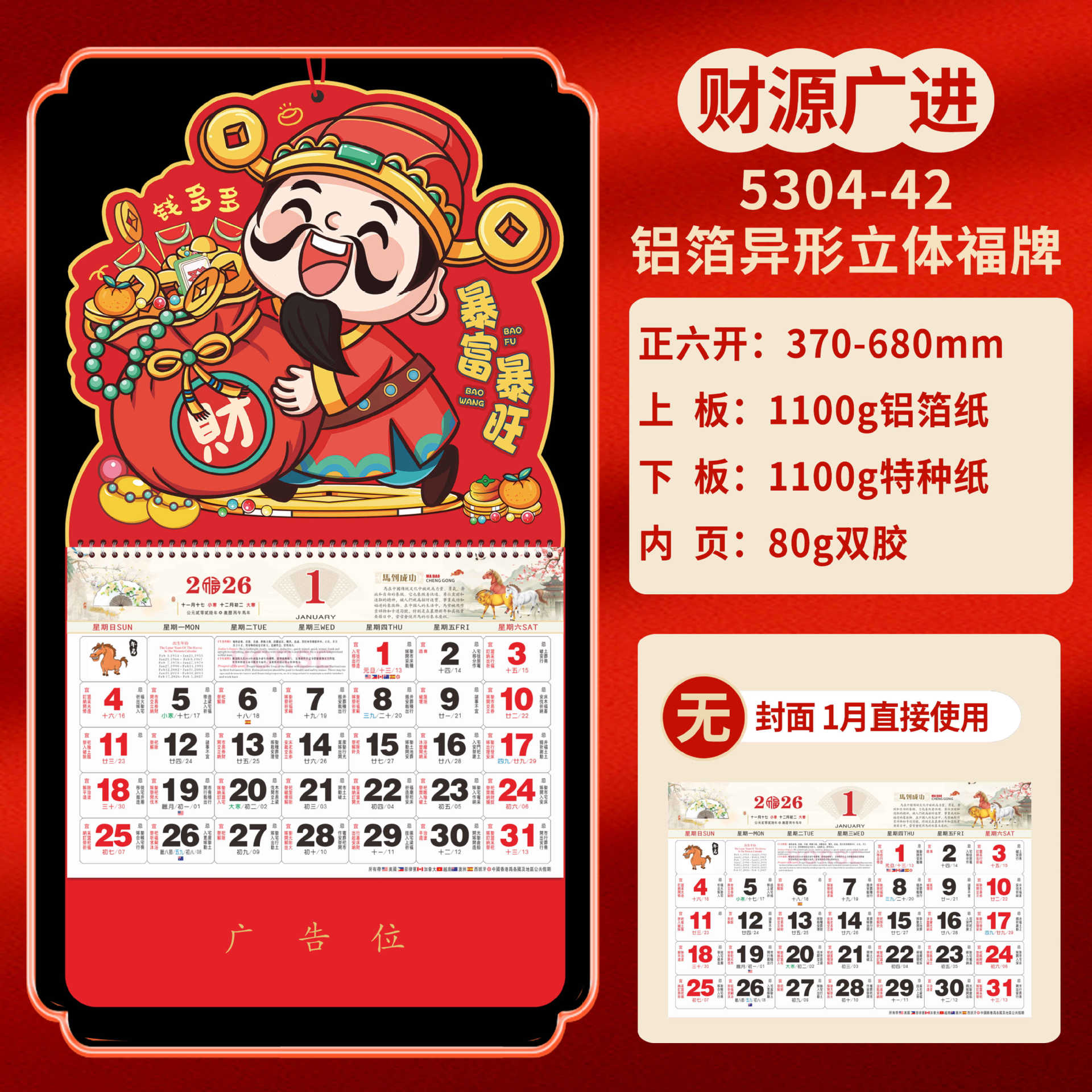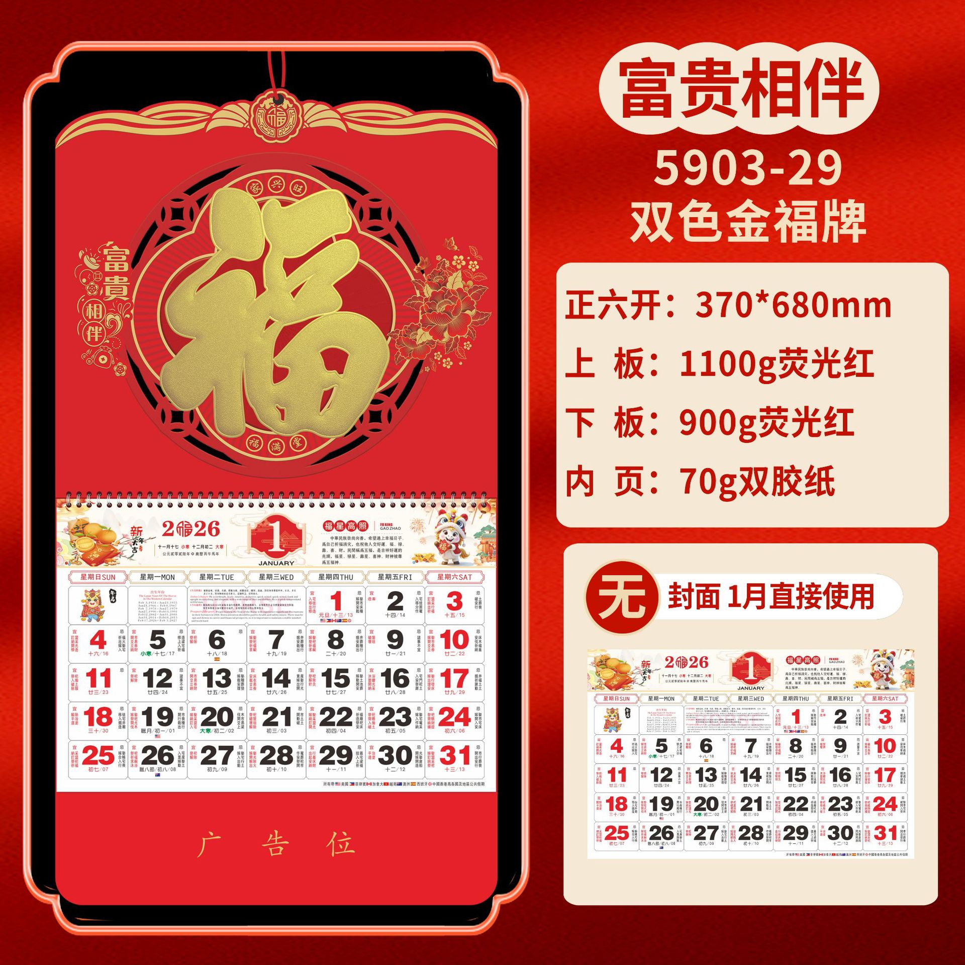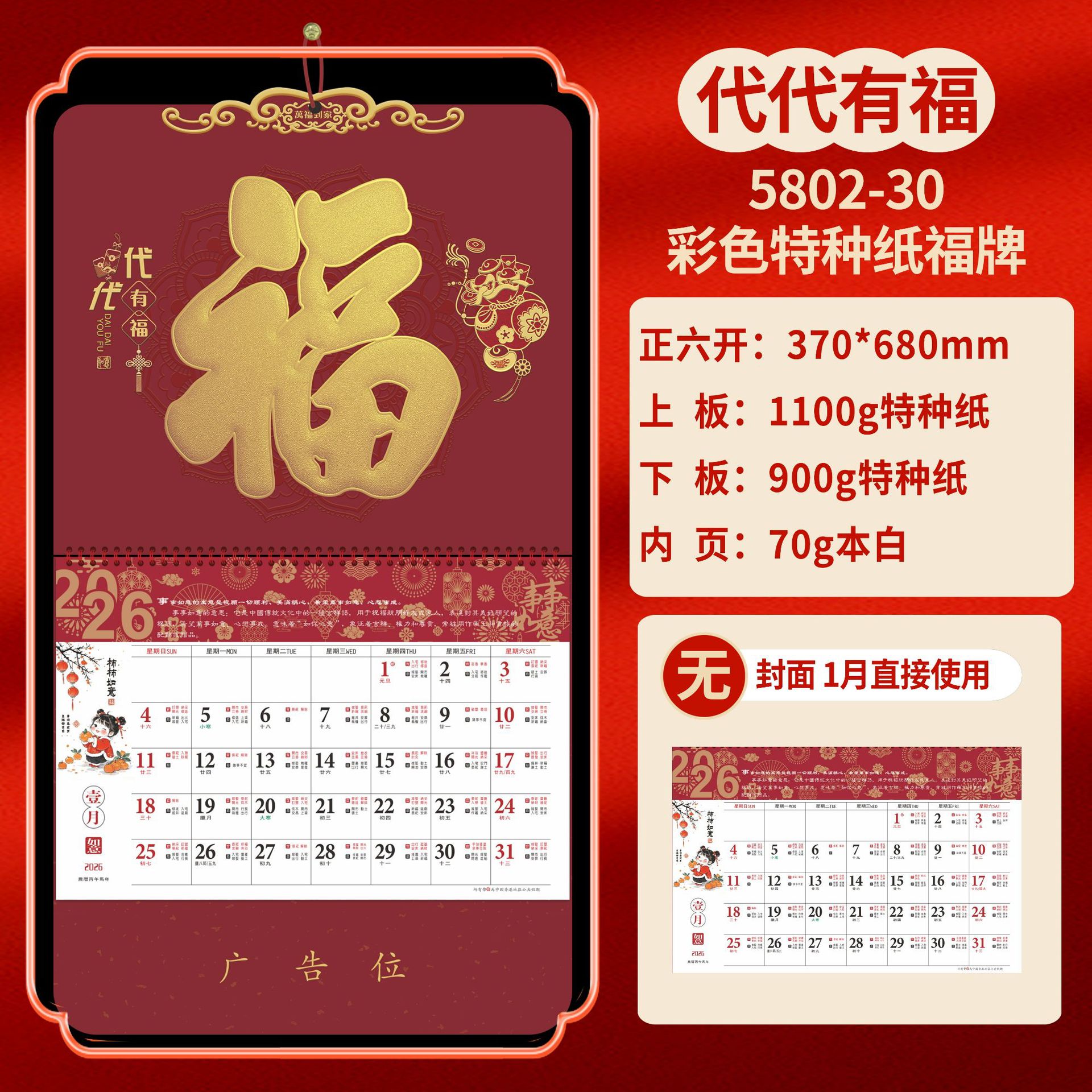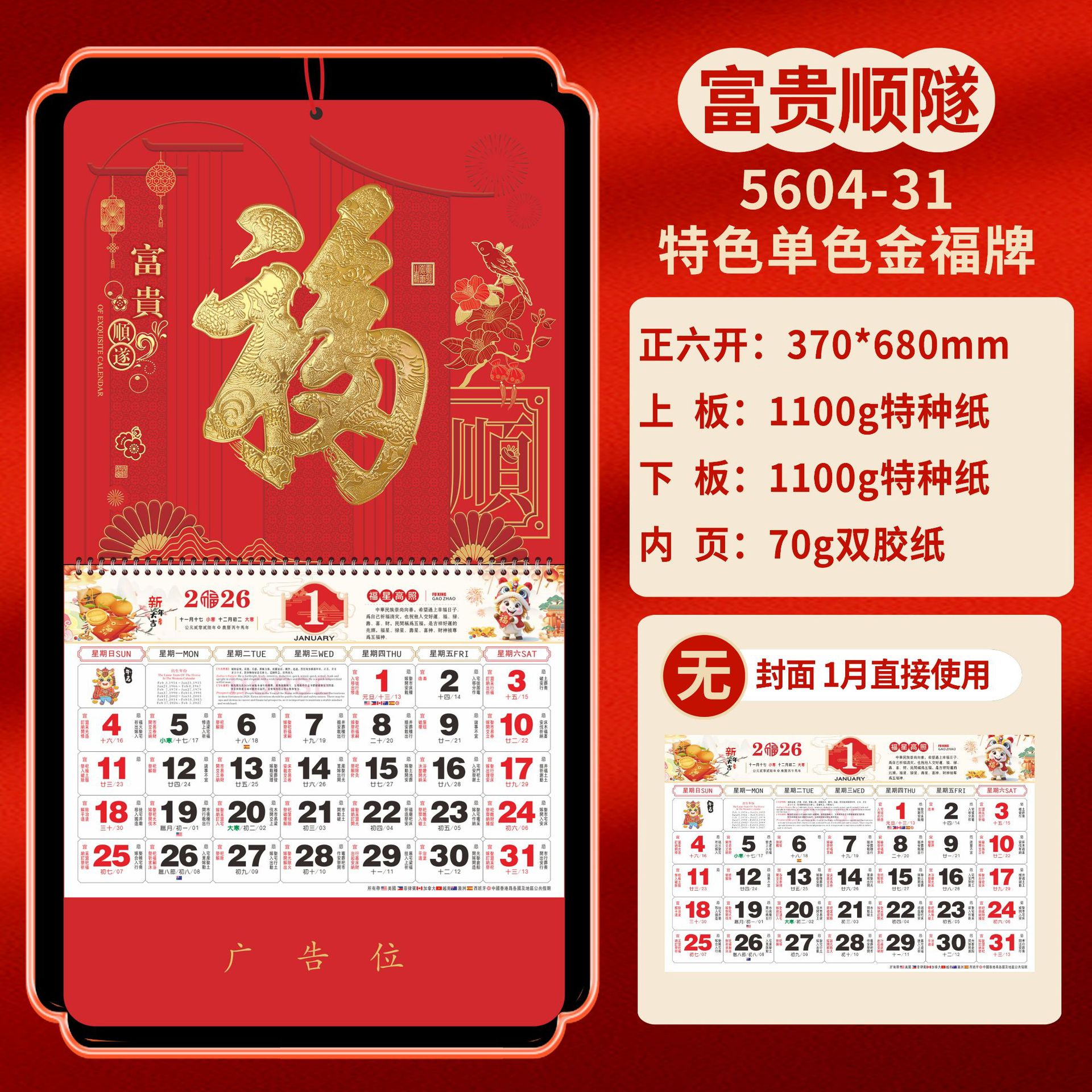 Календарь на 2026 год — Год Лошади, календарь удачи, персонализированный рекламный сувенир для компаний, календарь с индивидуальной печатью, настенный календарь, ежемесячный календарь, настольный календарь, оптом