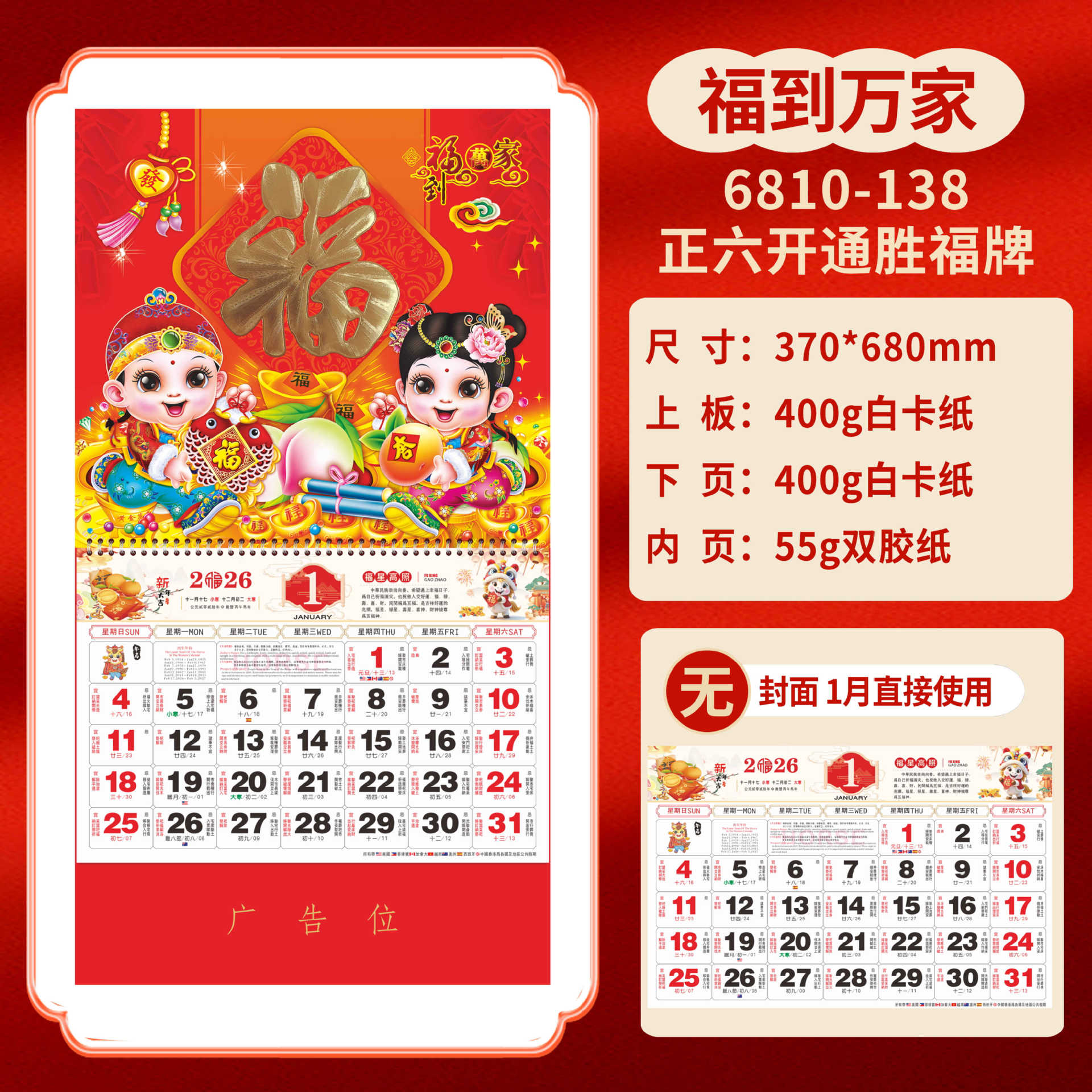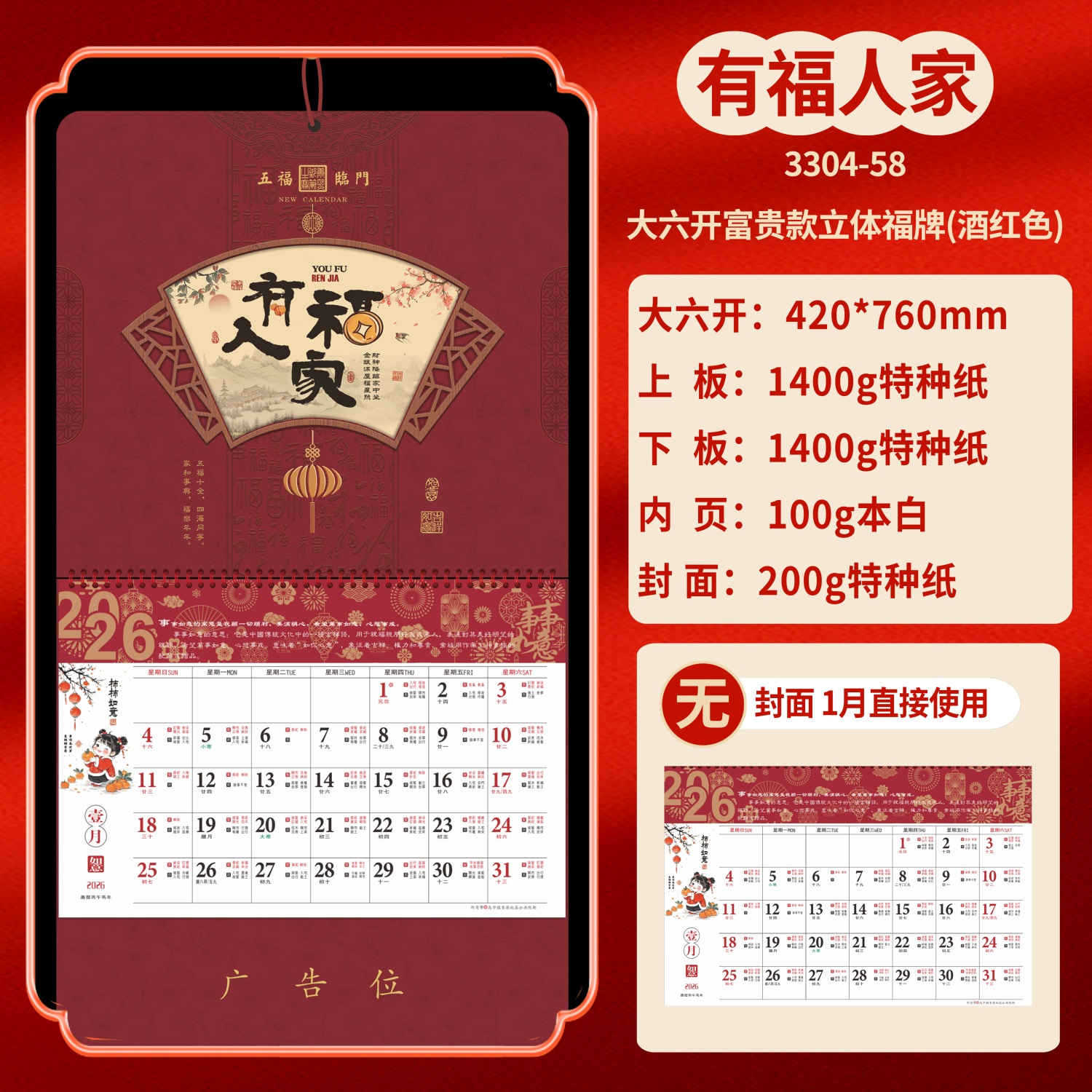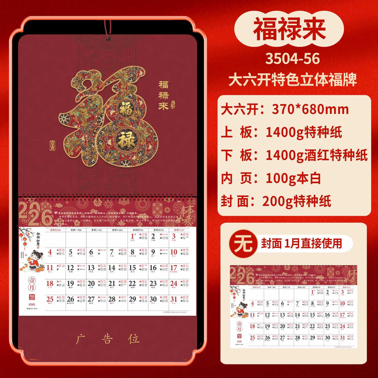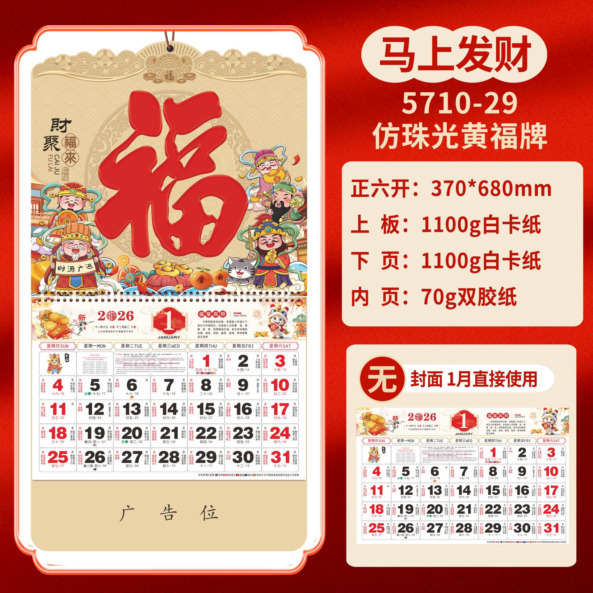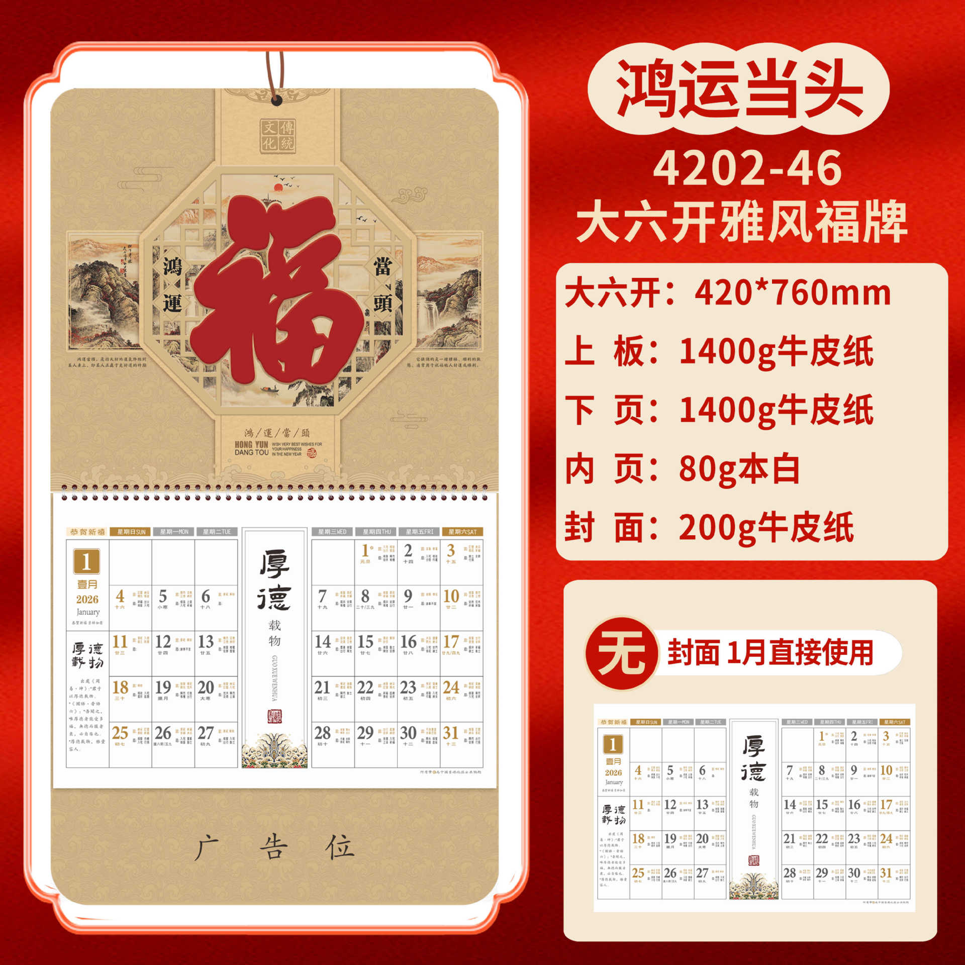 Календарь на 2026 год — Год Лошади, календарь удачи, персонализированный рекламный сувенир для компаний, календарь с индивидуальной печатью, настенный календарь, ежемесячный календарь, настольный календарь, оптом