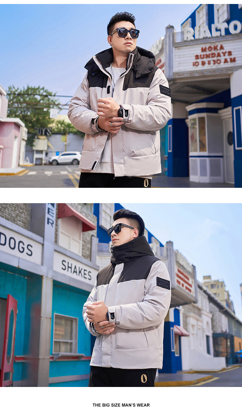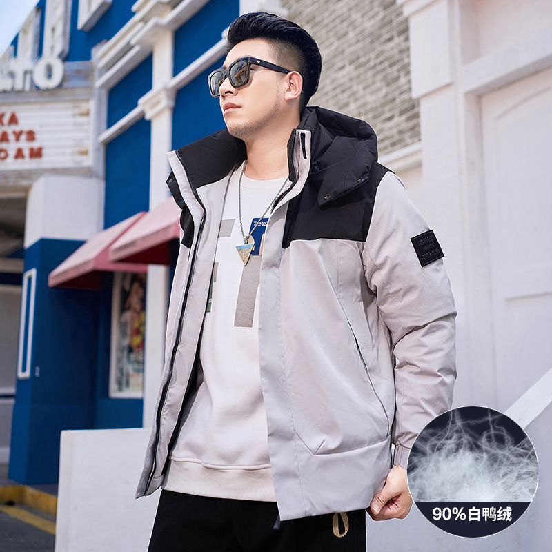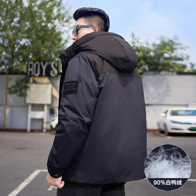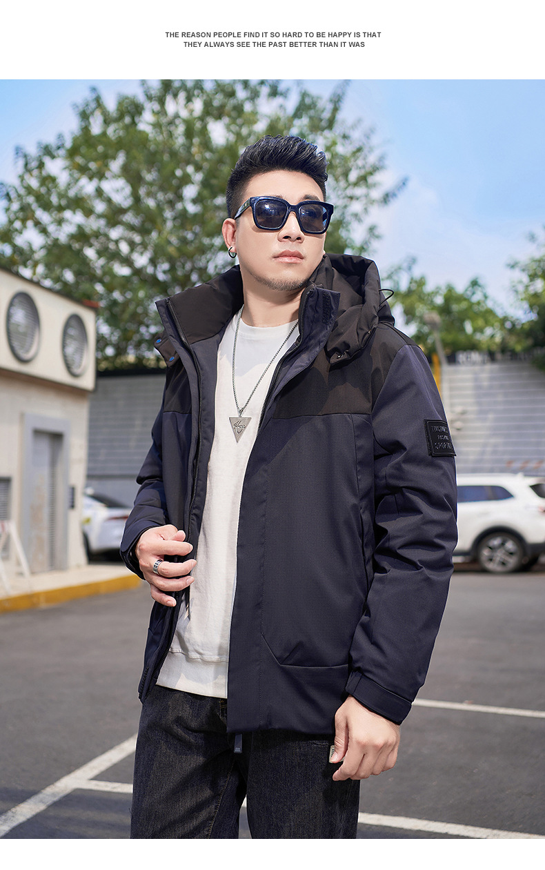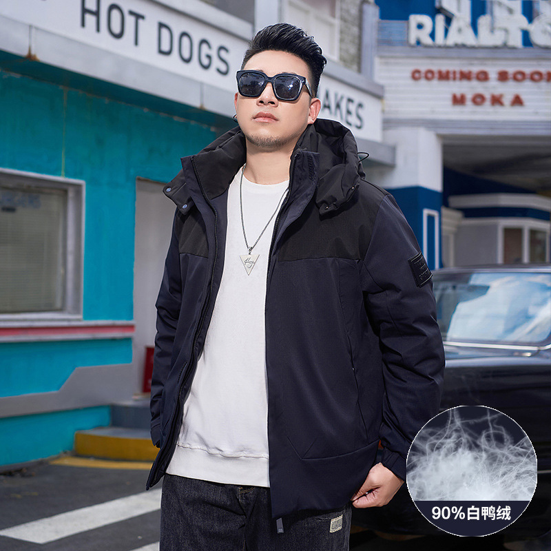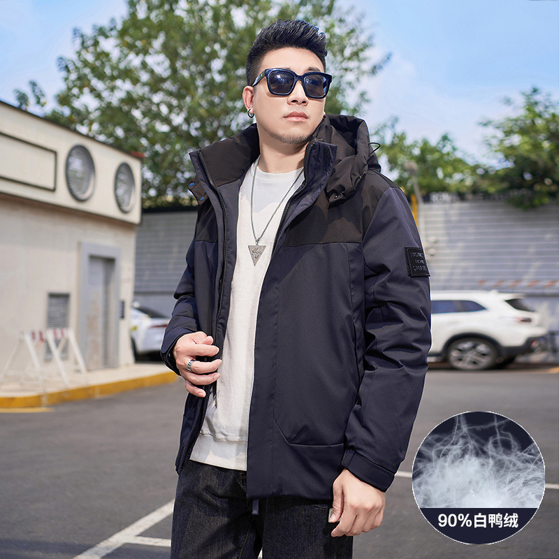 【Защита от холода до -20】 ℃ Мужская зимняя куртка большого размера с капюшоном и накладками, наполнитель — 90% белый утиный пух