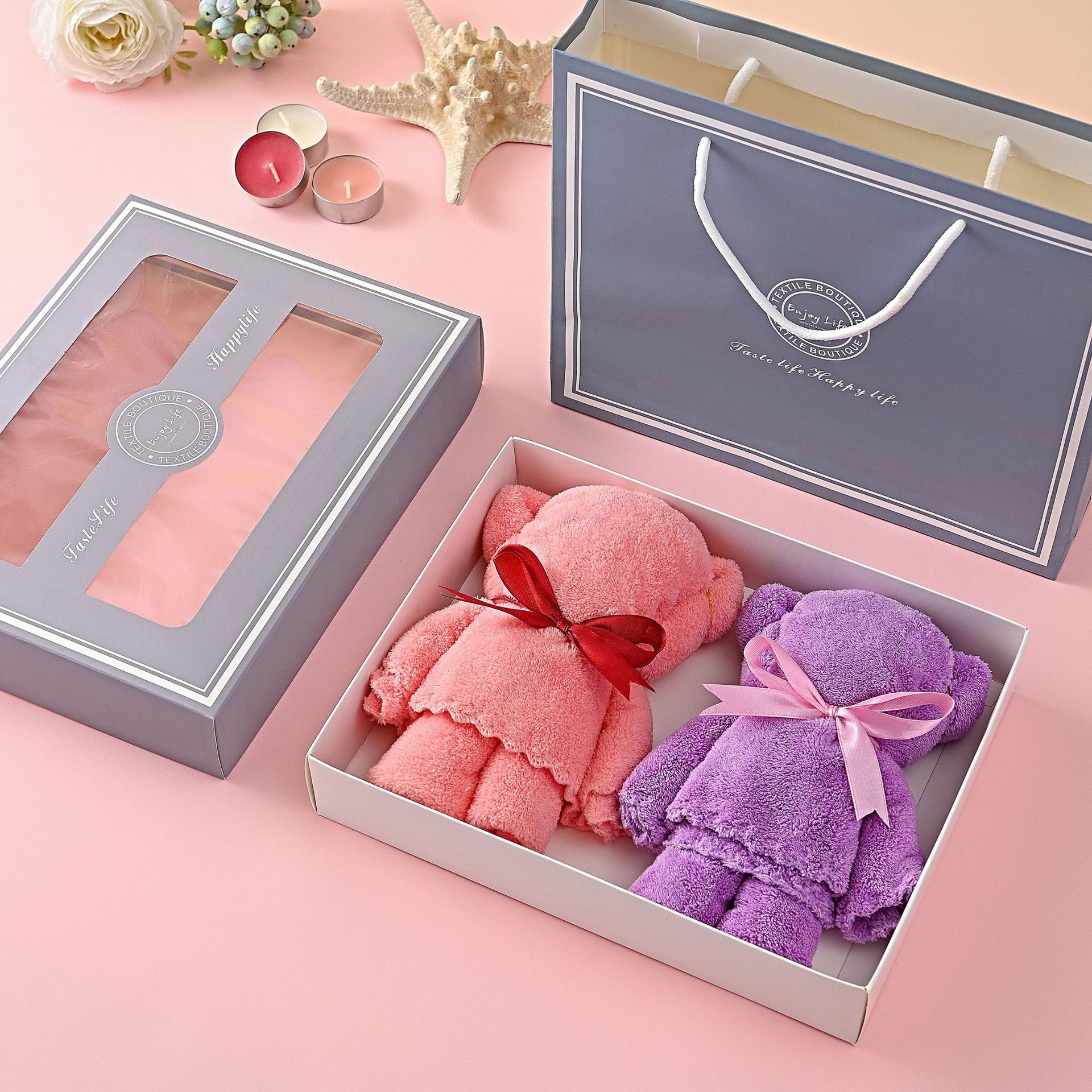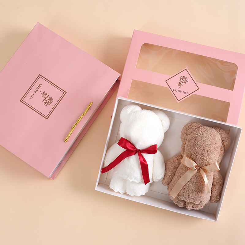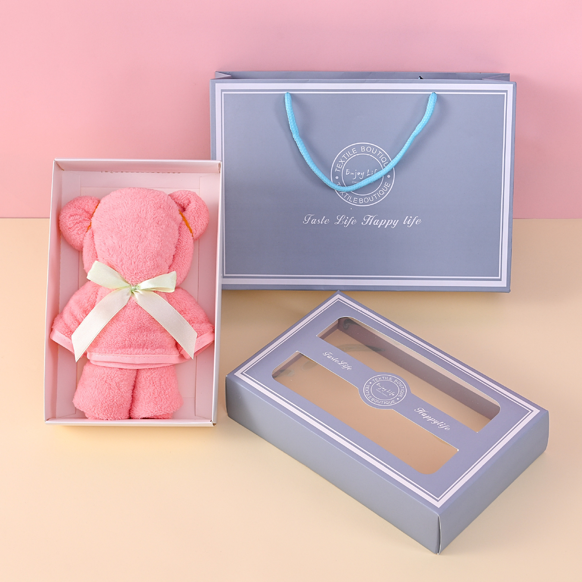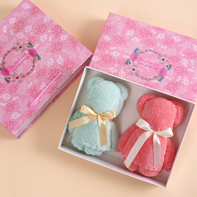 Коралловый бархатный медведь полотенце Подарочная коробка Подарочное полотенце детский сад праздник бизнес мероприятия Подарочное полотенце оптом