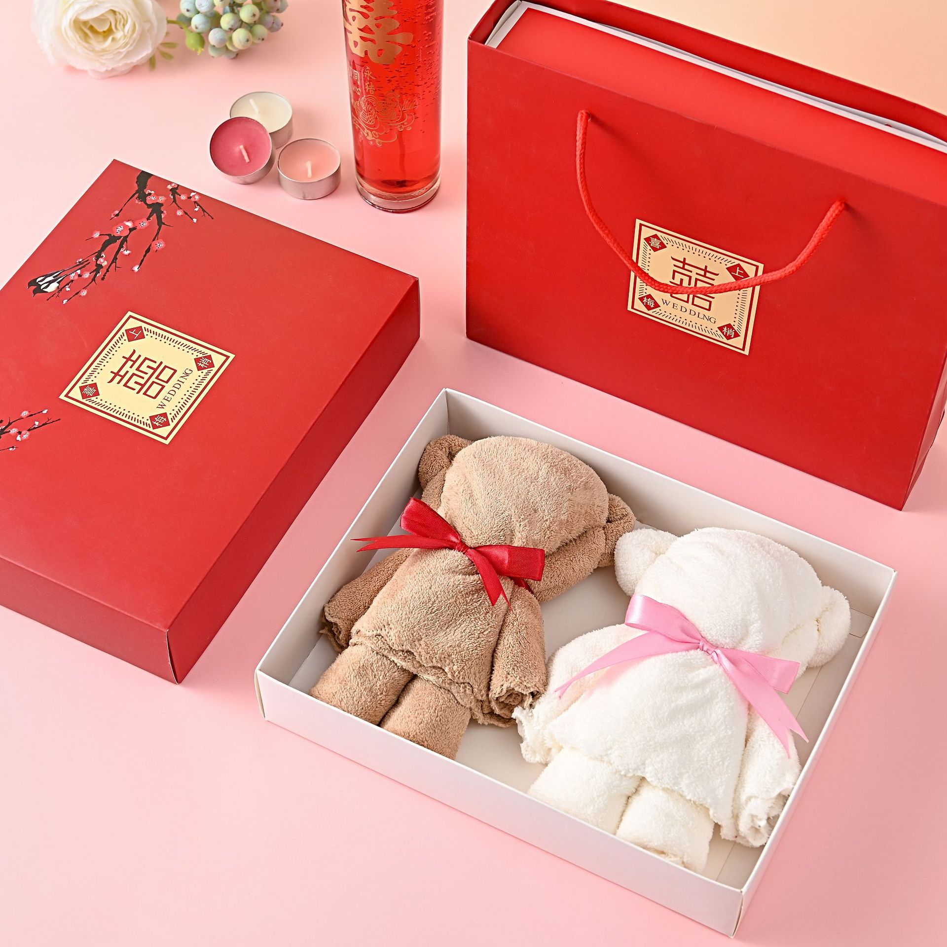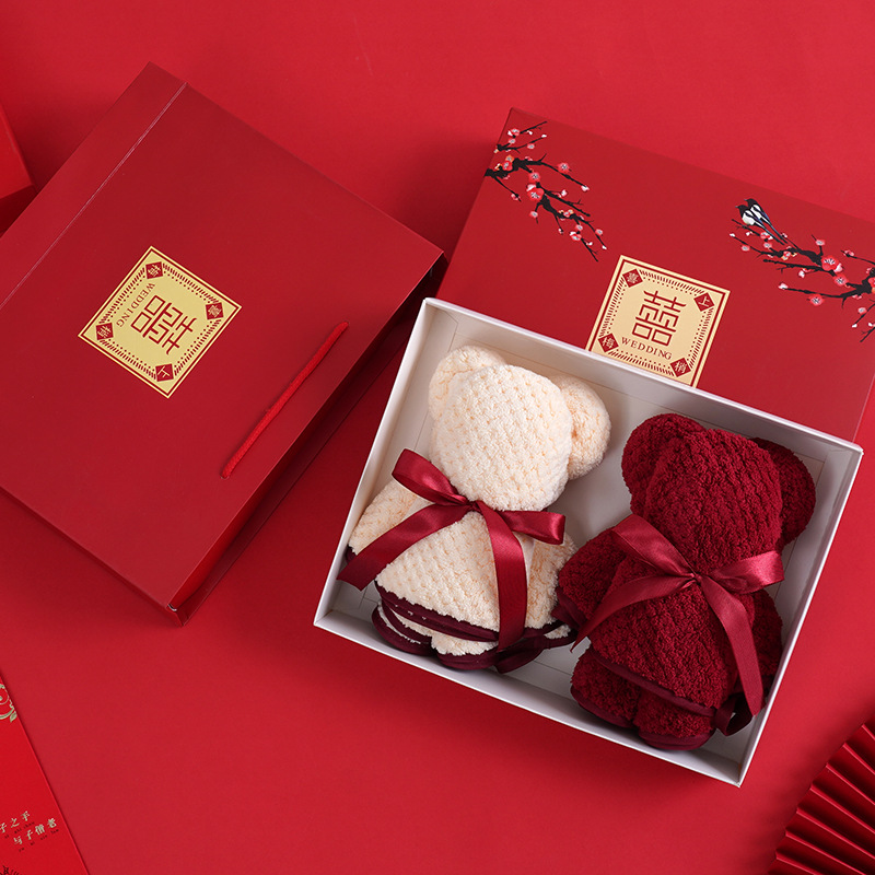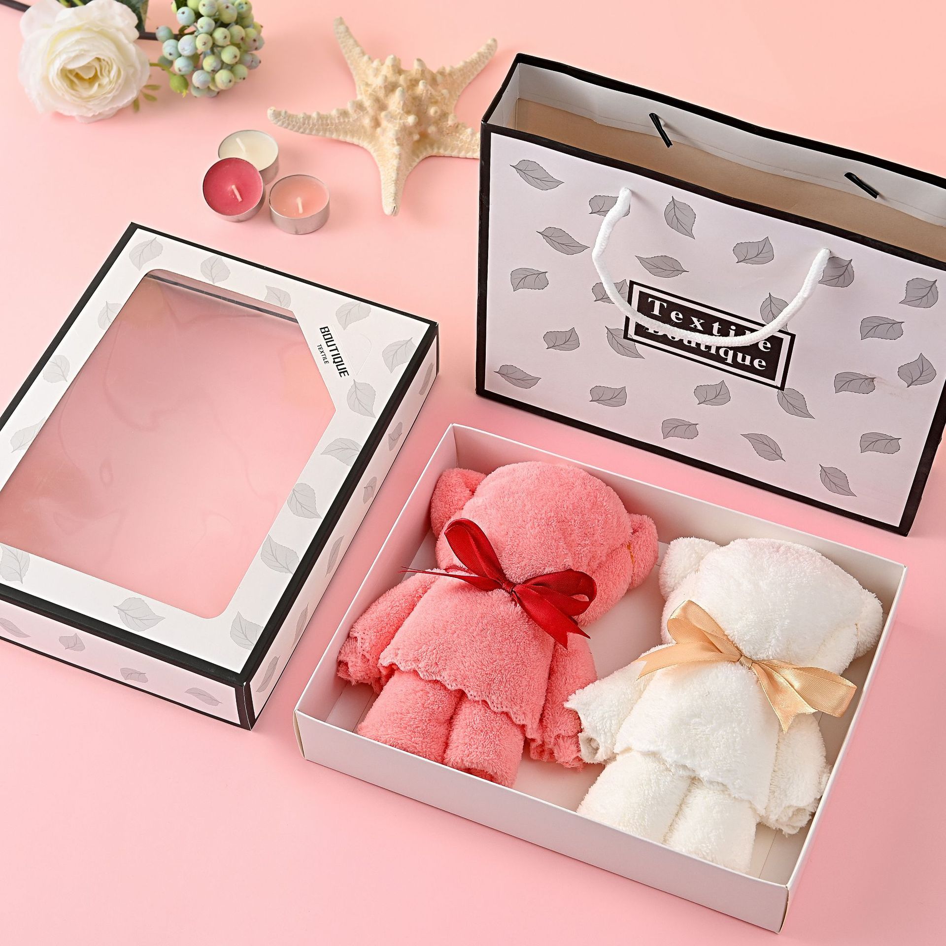 Коралловый бархатный медведь полотенце Подарочная коробка Подарочное полотенце детский сад праздник бизнес мероприятия Подарочное полотенце оптом