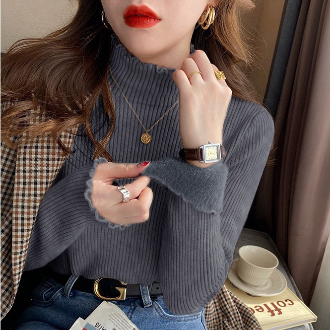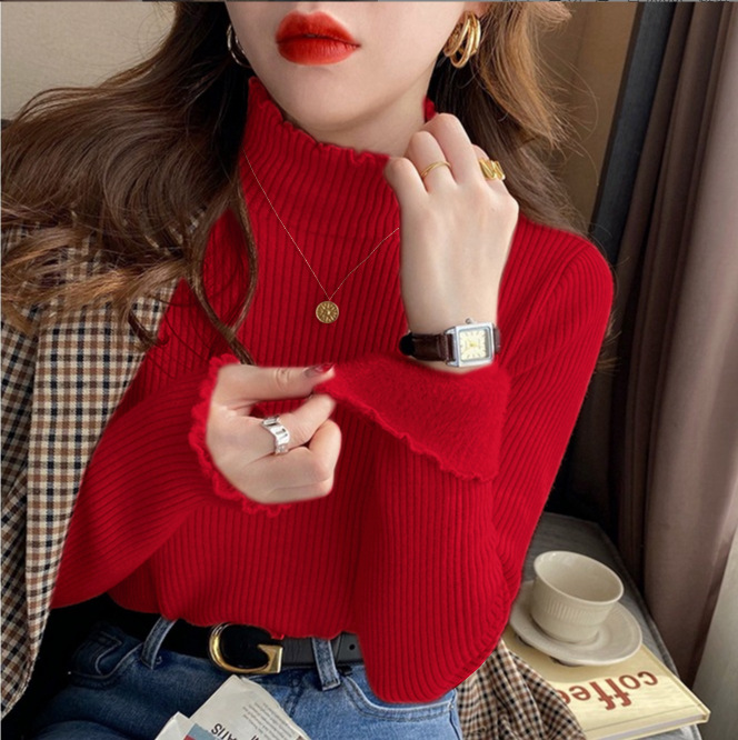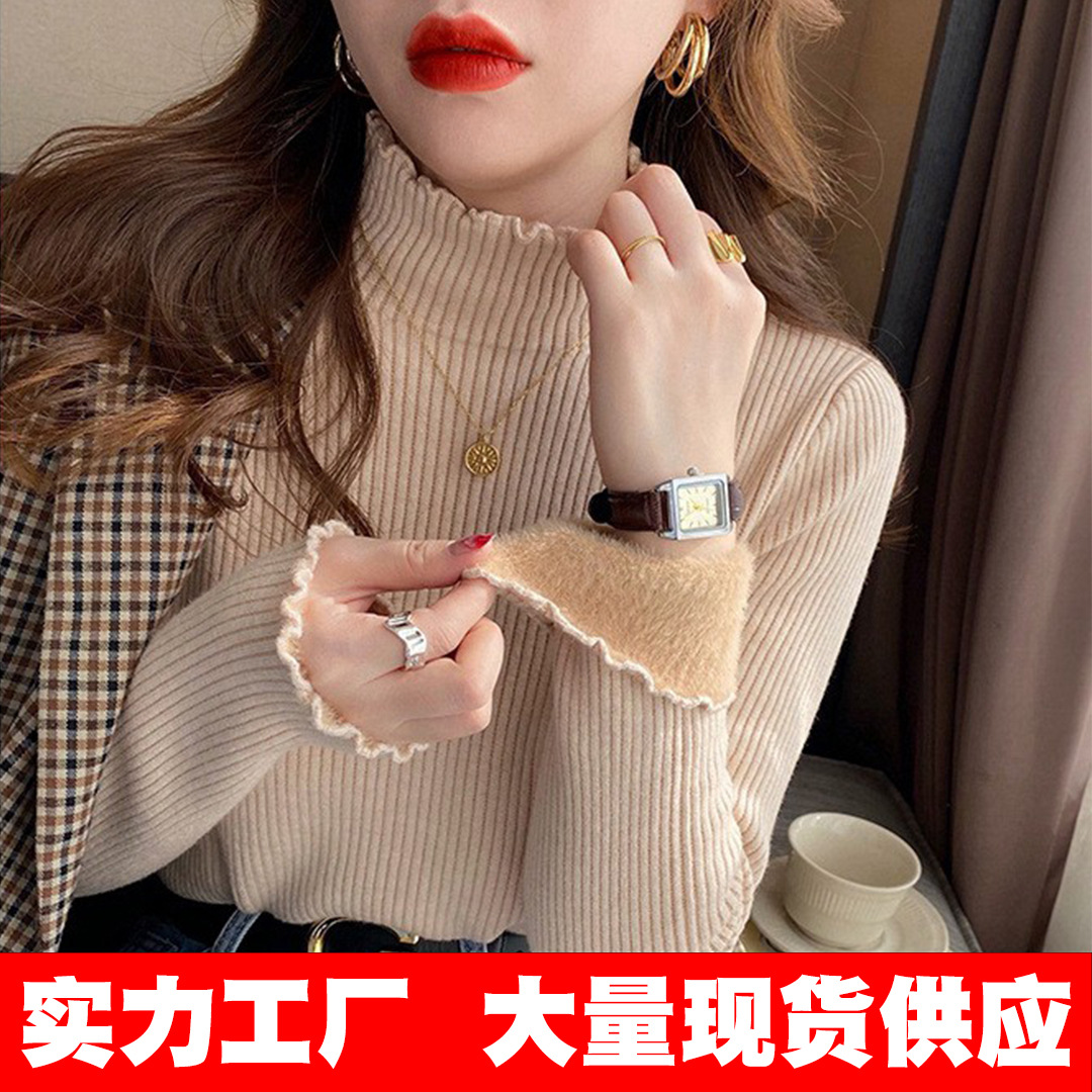 Цельный бархатный трикотаж 2025, новинка осени и зимы, утолщенный бархатный трикотаж, женский трикотаж с полугольфом