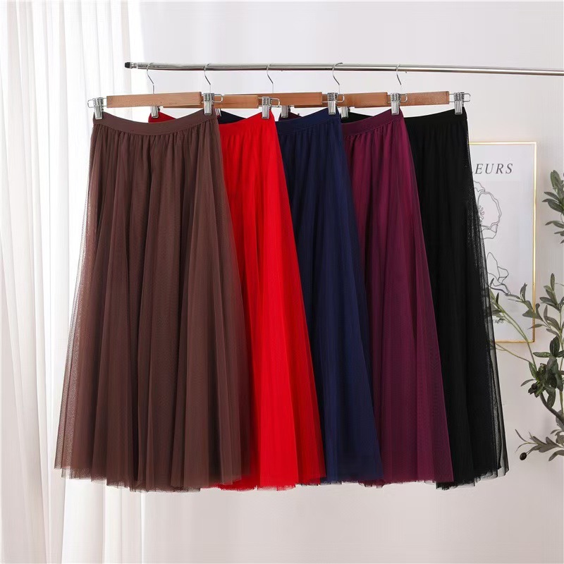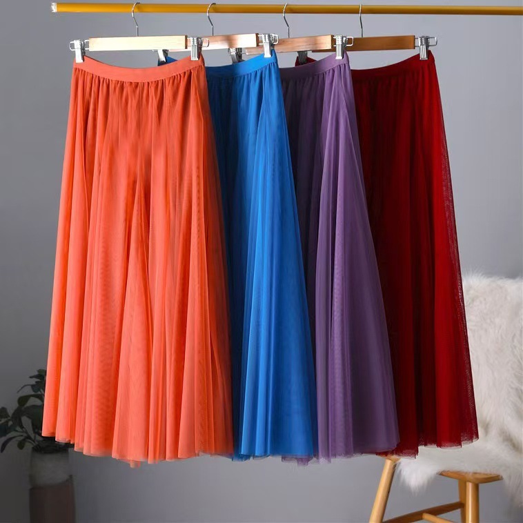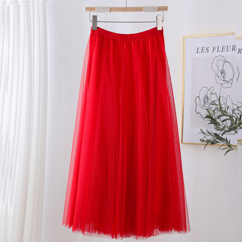 Сетчатая юбка женская сетчатая юбка средней длины большая качели-образная плиссированная юбка красная юбка танцевальная юбка квадратная танцевальная юбка