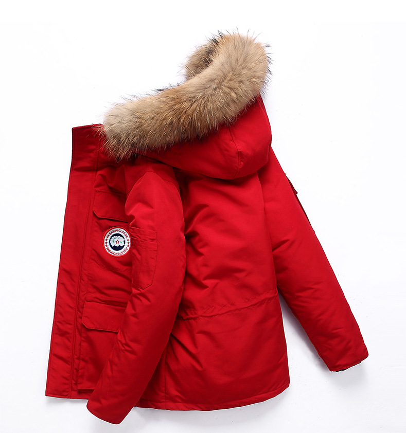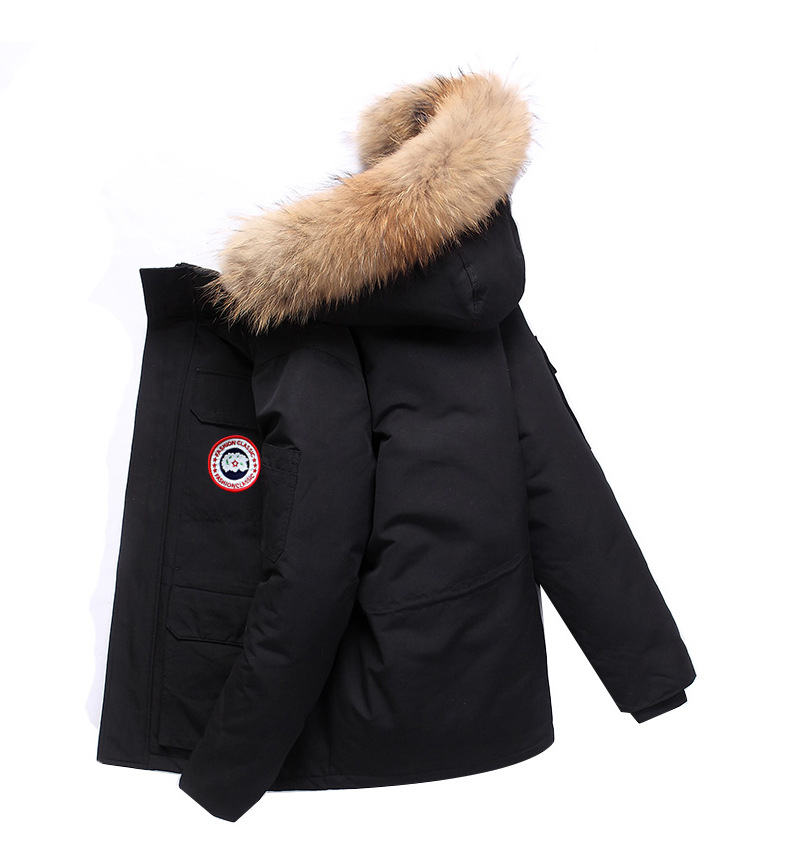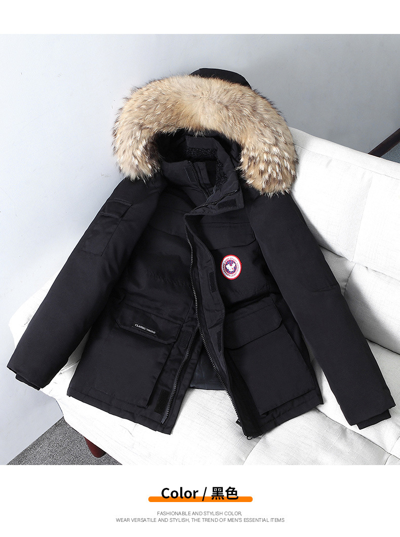 Трансграничный Зимний новый модный пуховик с капюшоном для пар, Мужская модная утолщенная синяя куртка с маленьким шерстяным воротником, модная куртка