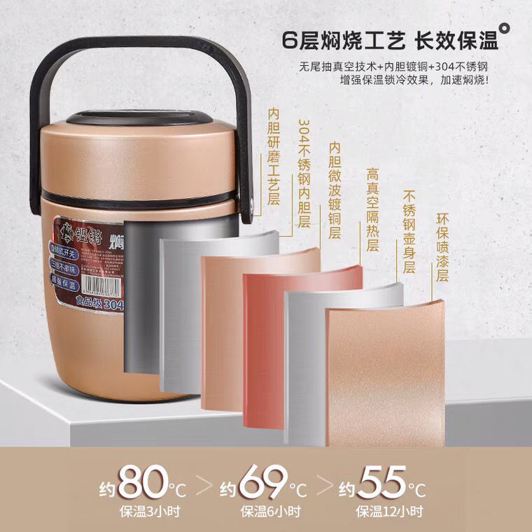 Sonorous Изоляционный Ланч-бокс Студенческий офисный работник 304 Сверхдлинный вакуумный горшок из нержавеющей стали Тушеная банка для чашки на 12 часов