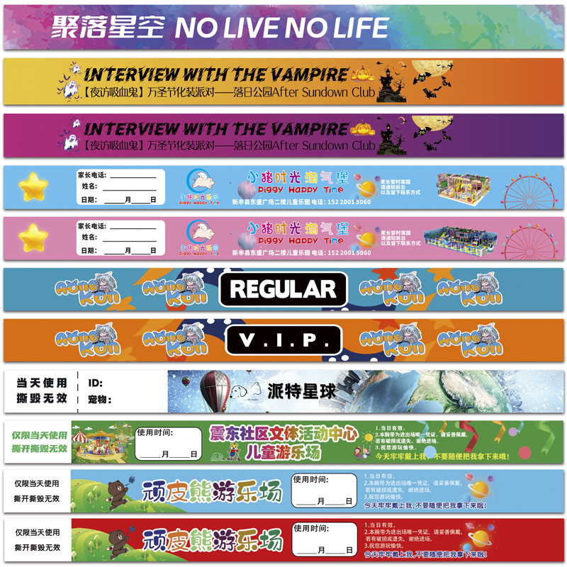 Детский парк развлечений Встреча Одноразовый бумажный браслет DuPont Живописный бар Открытый водонепроницаемый браслет с защитой от разрывов