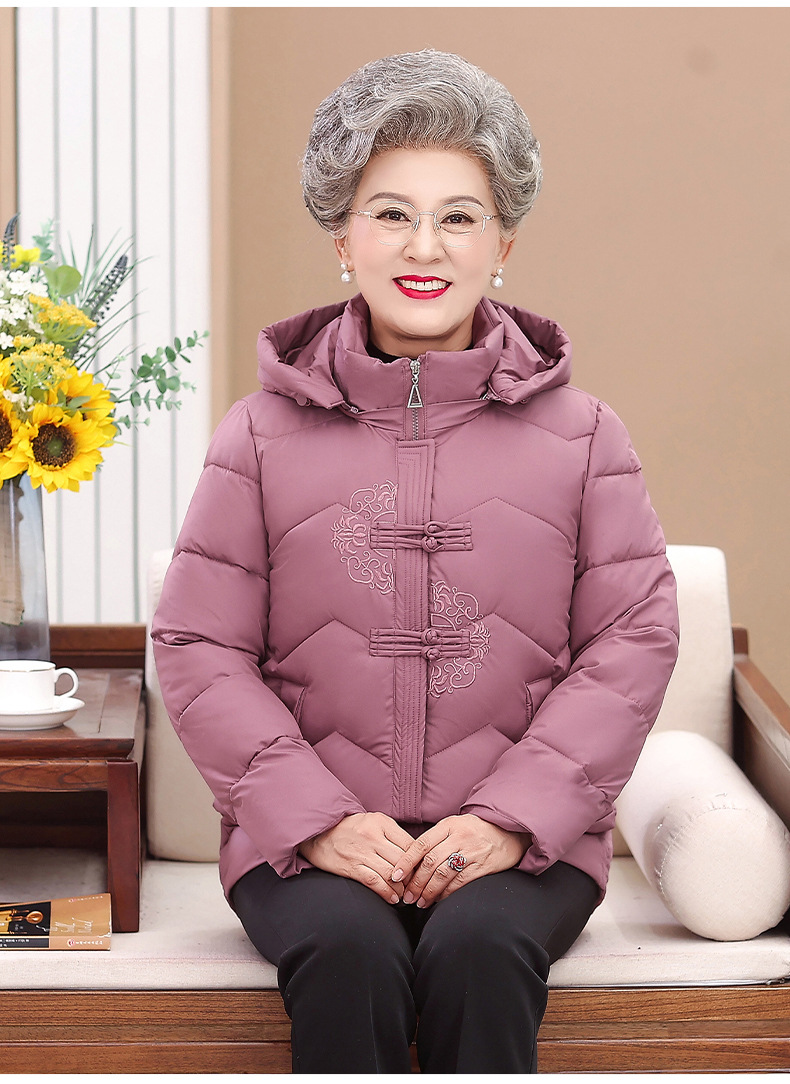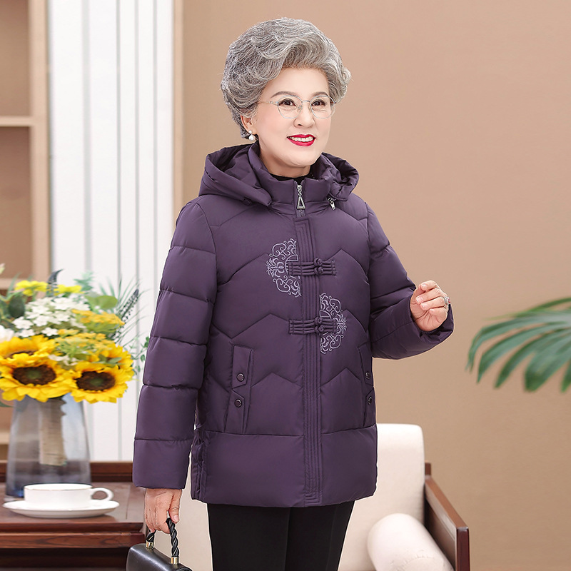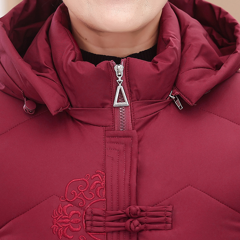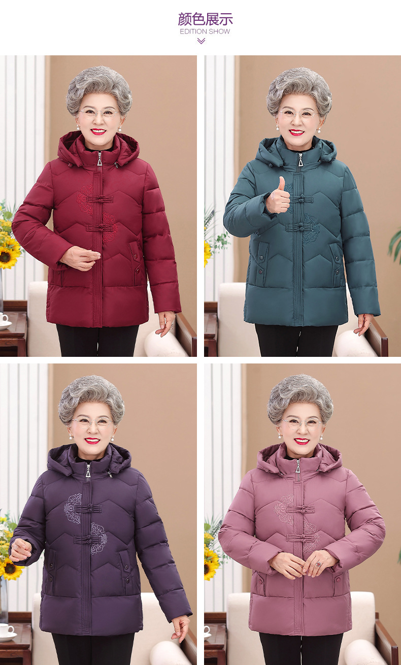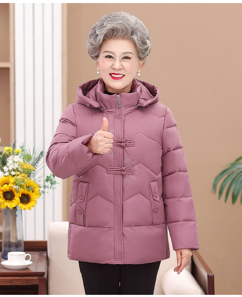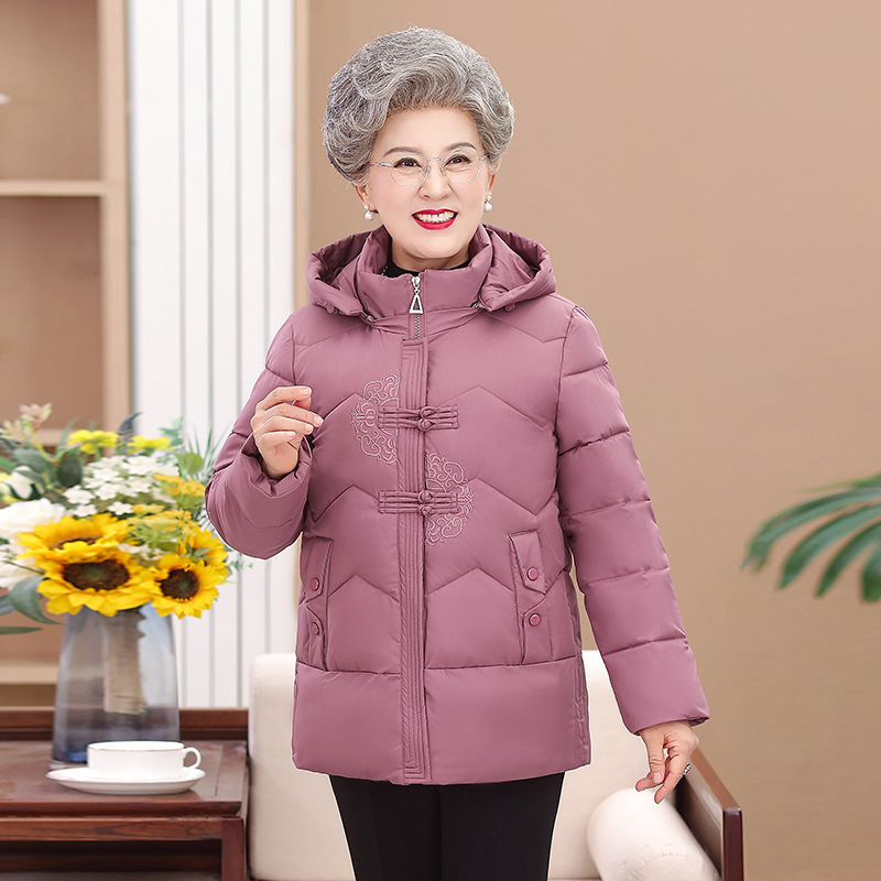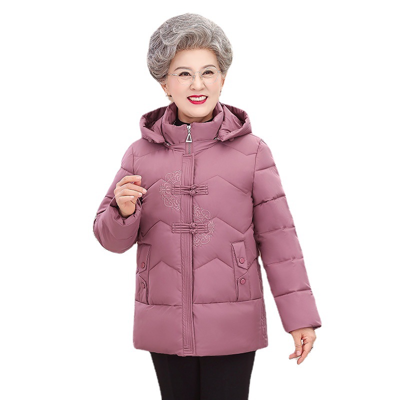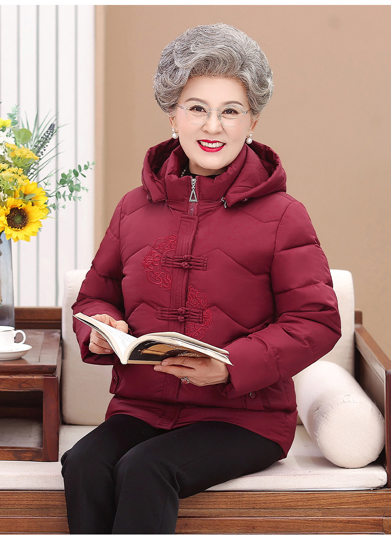 Пожилые зимние костюмы с капюшоном плюс пушистая толстая женская хлопчатобумажная одежда среднего и пожилого возраста