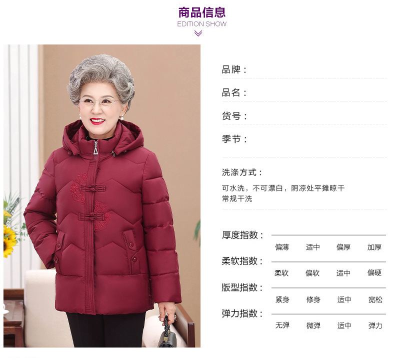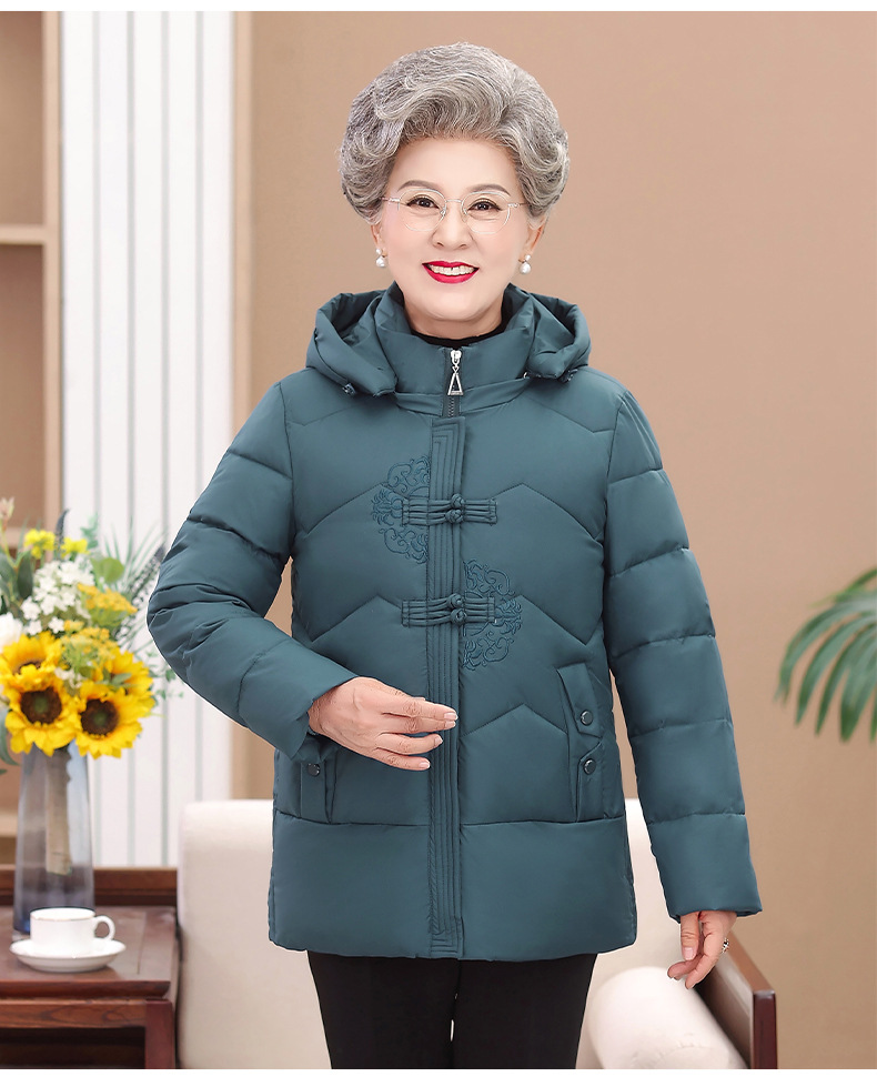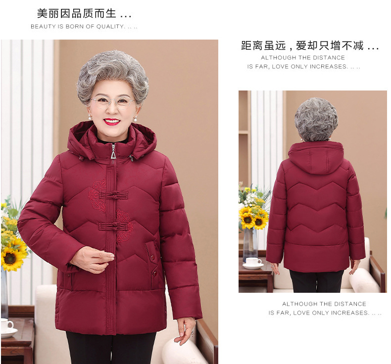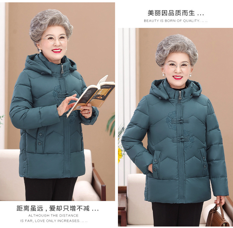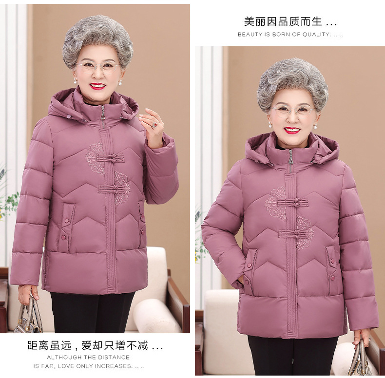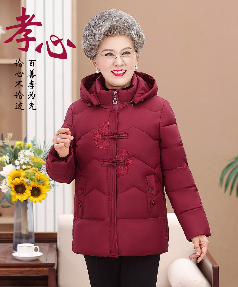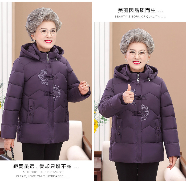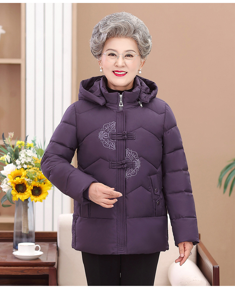 Пожилые зимние костюмы с капюшоном плюс пушистая толстая женская хлопчатобумажная одежда среднего и пожилого возраста