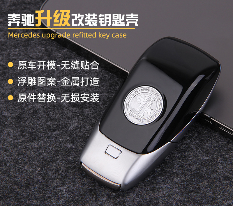 【商品名称】适用于奔驰迈巴赫新E级C级S级E300L钥匙壳改装AMG苹果树钥匙后盖