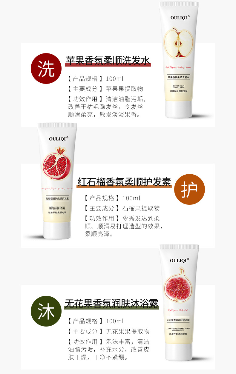 Кондиционер аромата граната 100мл; Шампунь Apple Fragrance 100мл; Гель для душа с ароматом Fig 100мл; Шампунь Apple Fragrance 100 мл + кондиционер для ароматов граната 100 мл + гель для душа с ароматом риса 100 мл; Шампунь с ароматом яблока 520 мл (красный)