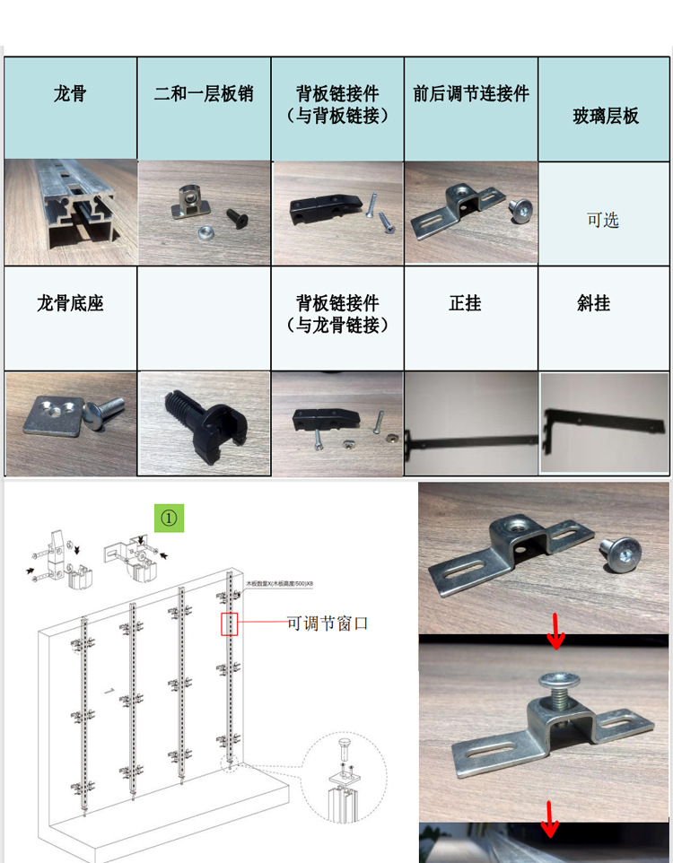 Колонка/ветвь (3 метра); Основание колонны/шт.; Стойка с двойным отверстием для крепления/шт.; Стойка с одним отверстием для крепления/шт.; Угол стойки фиксации/шт.; Настенная карта застежка/шт; 25 ламината кронштейн/ветвь (500 глубин); 36 ламината/опора (500 глубин); Наклонная пластина кронштейн/ветвь; Ламинарный соединительный элемент/комплект; Левая стойка ящика/ветвь; Держатель правого ящика/ветвь; Алюминиевая задняя панель-двухсторонняя кожа/㎡; Алюминиевая задняя панель-двухсторонняя древесина/2; Алюминиевая задняя панель-двухсторонняя деревянная кожа/2
