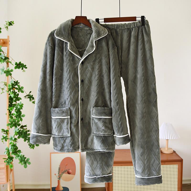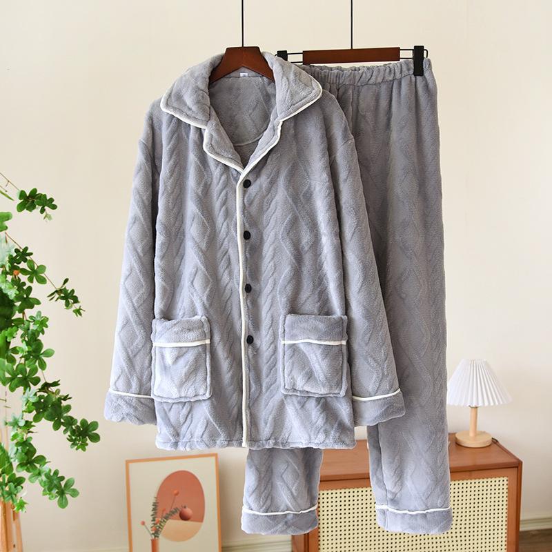 Осенне-зимние утолщенные пижамы из кораллового флиса, женские и мужские однотонные Фланелевые брюки больших размеров с длинными рукавами, простая домашняя одежда для пар