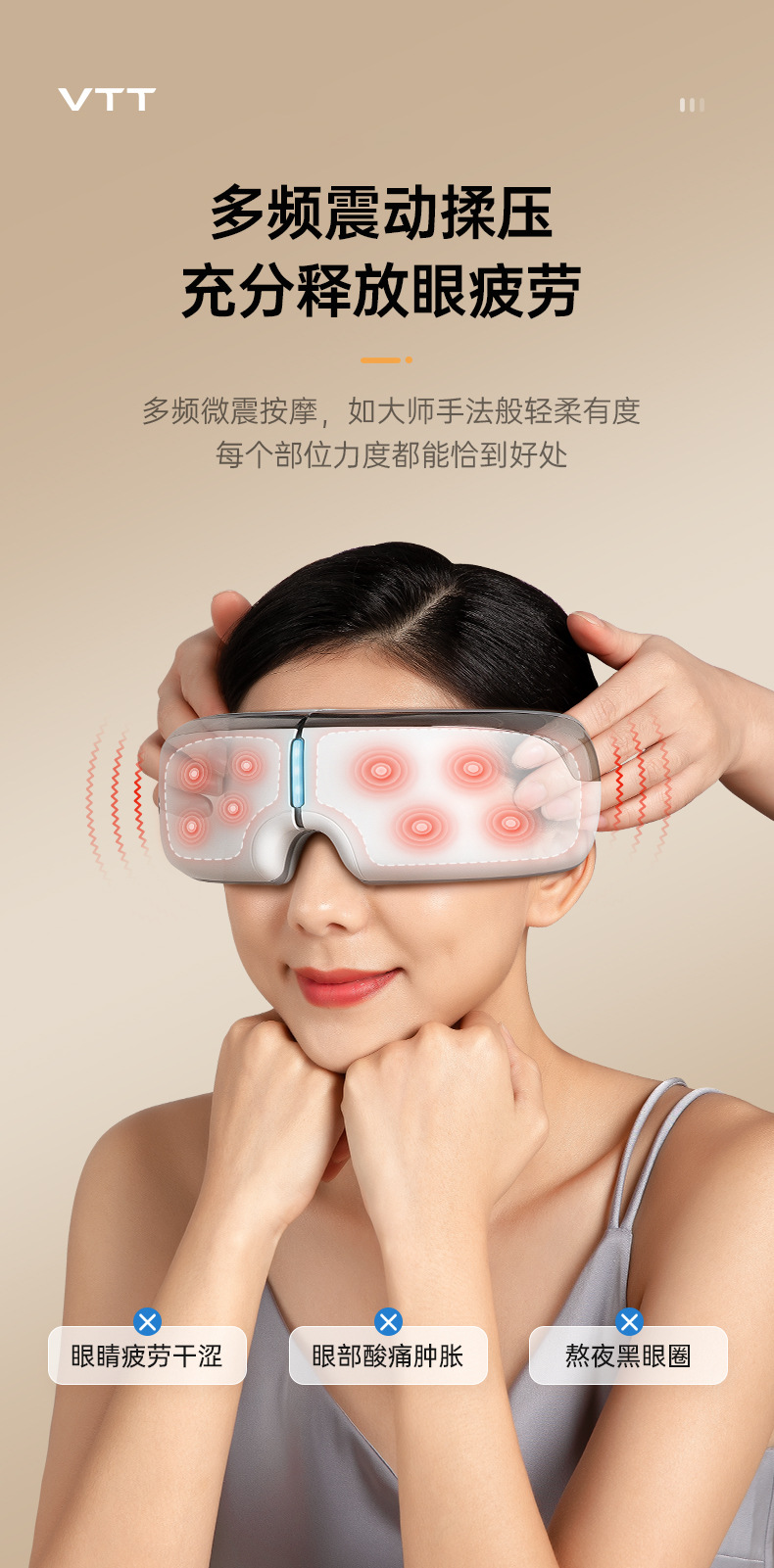 Массажер для глаз VTT с горячим компрессом, перезаряжаемая паровая маска для глаз, массажер для глаз, устройство для защиты глаз детей, умное устройство для защиты глаз