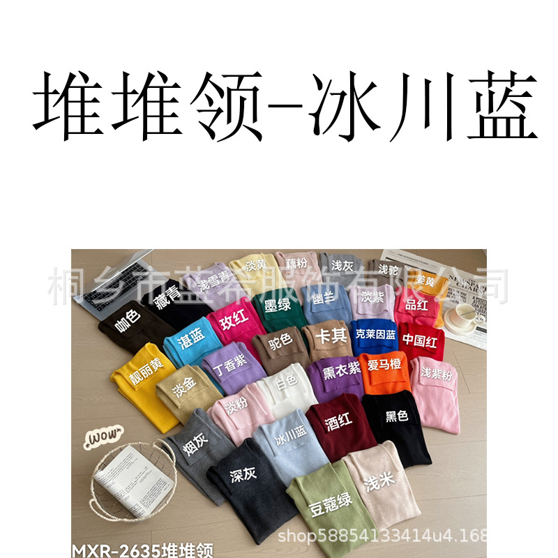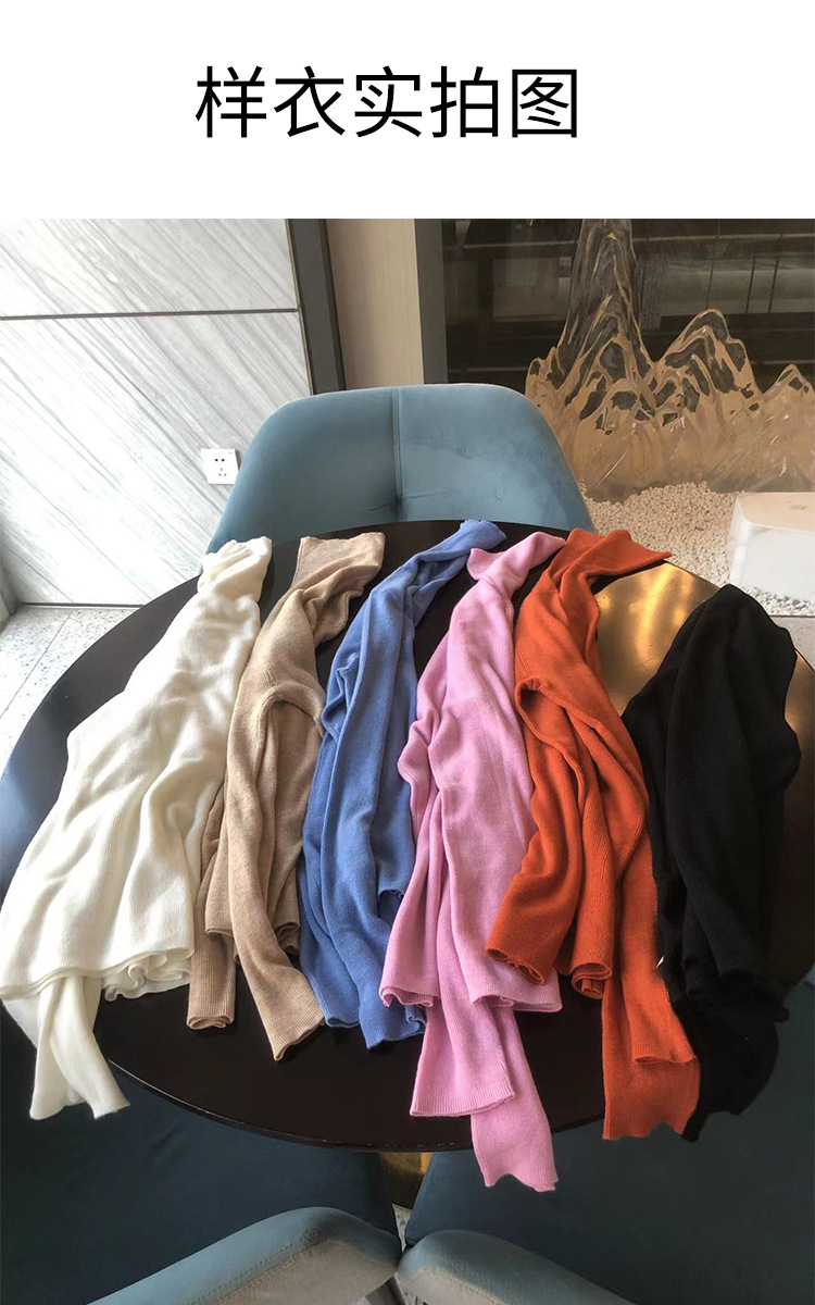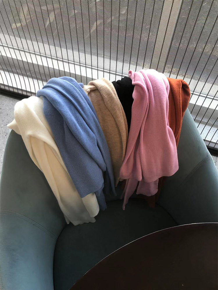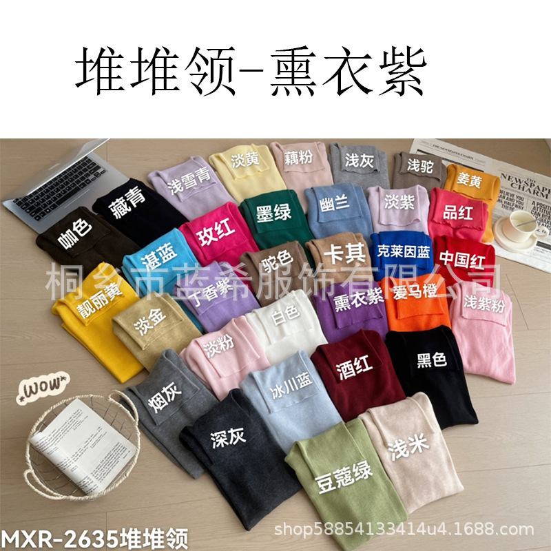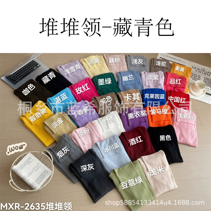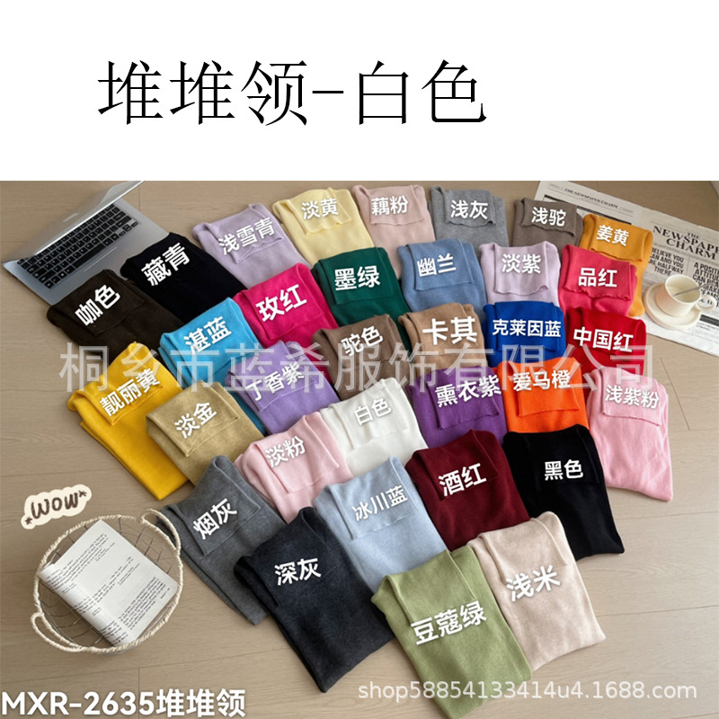 Оптовая продажа дропшиппинга женского вязаного свитера Puyuan со стопкой воротника, разноцветной шерстяной женской базовой рубашки, мягкого женского топа чистого цвета.