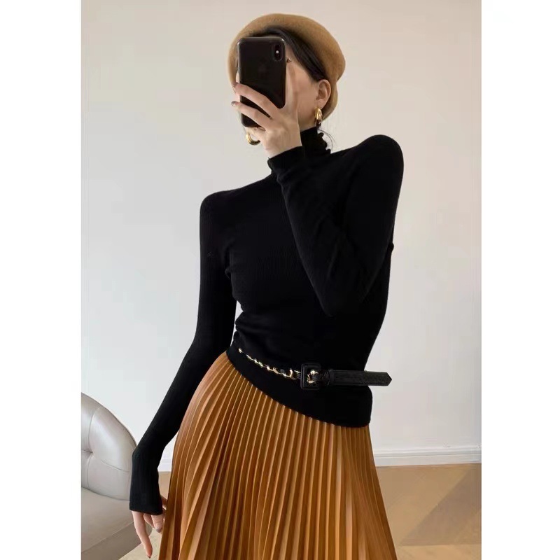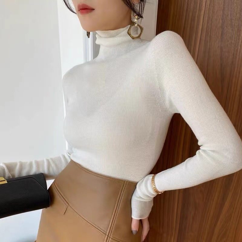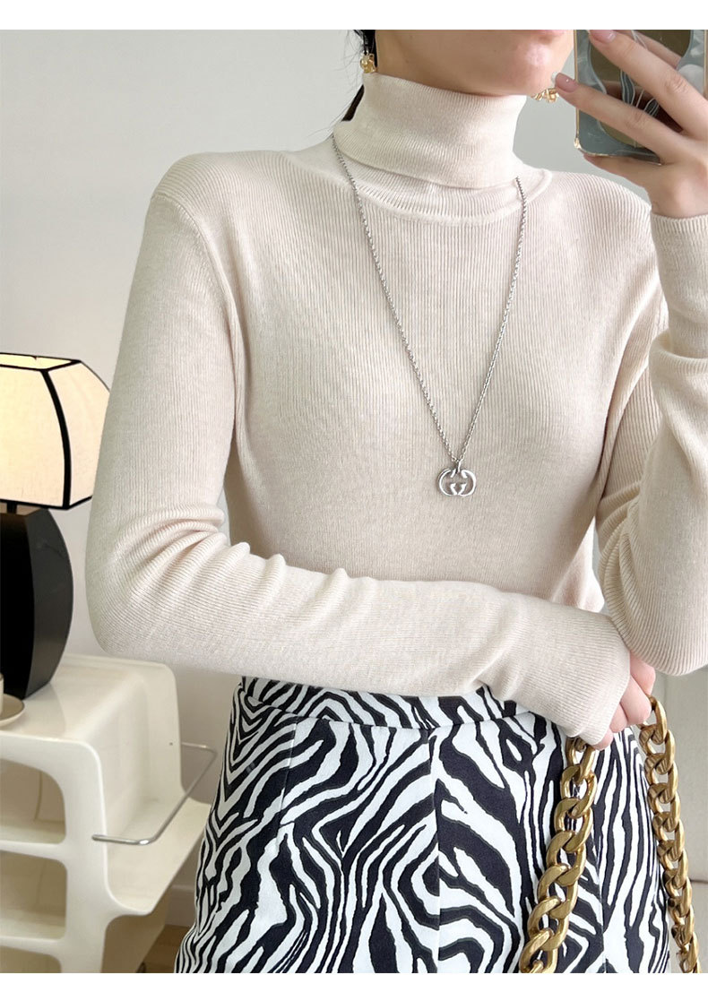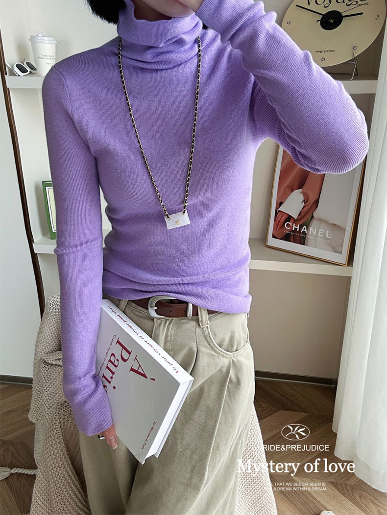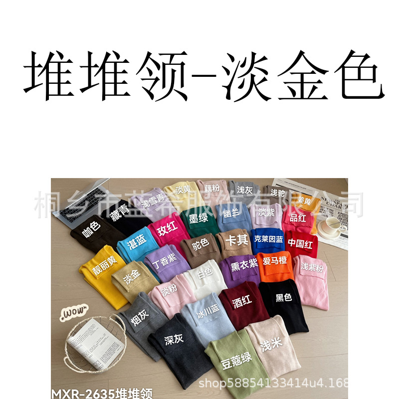Оптовая продажа дропшиппинга женского вязаного свитера Puyuan со стопкой воротника, разноцветной шерстяной женской базовой рубашки, мягкого женского топа чистого цвета.