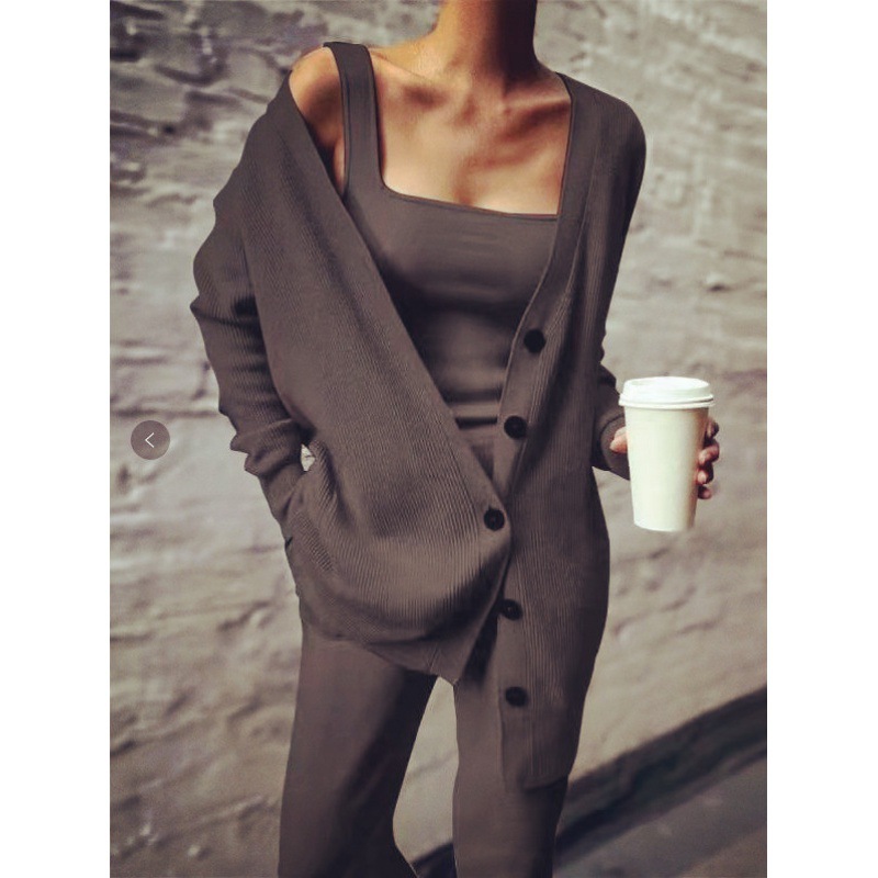 Женский вязаный костюм-тройка трансграничный Amazon, Новая Европейская и американская Женская куртка, жилет, брюки на весну и осень 2022 г.