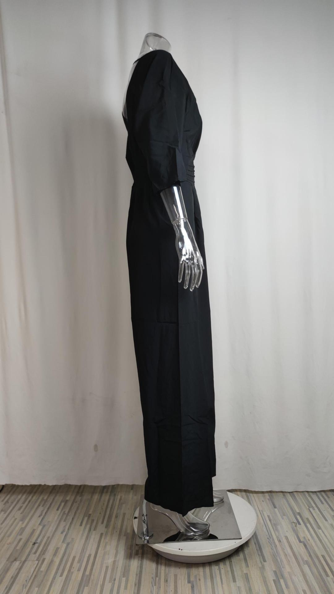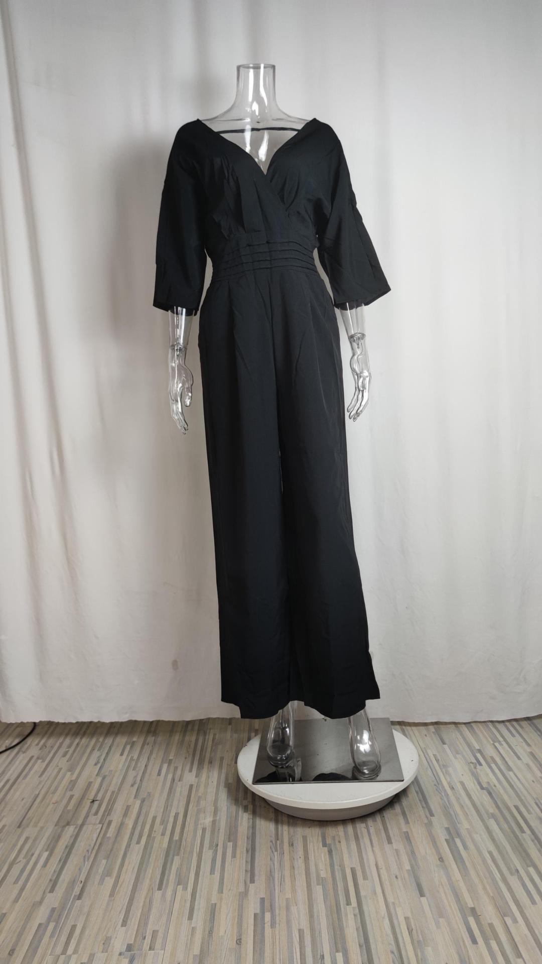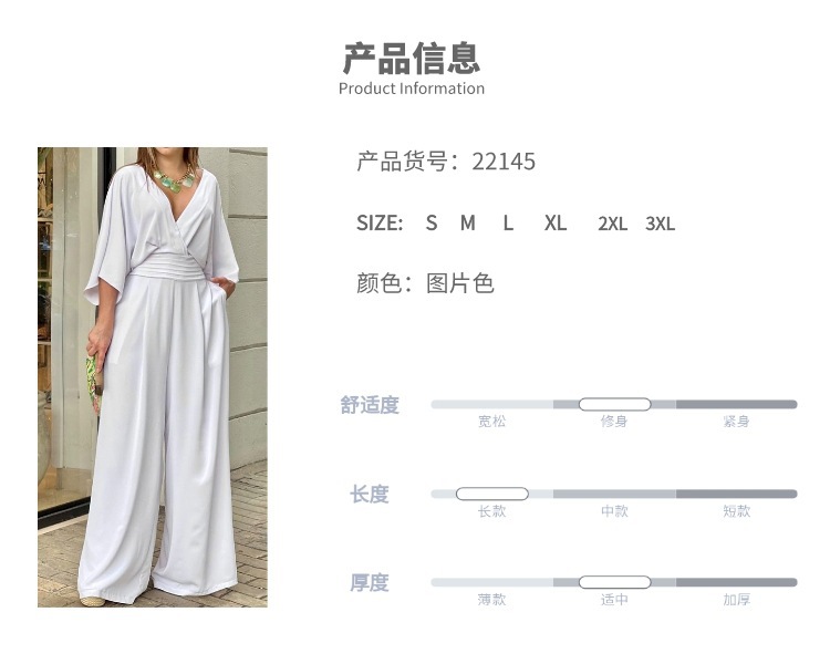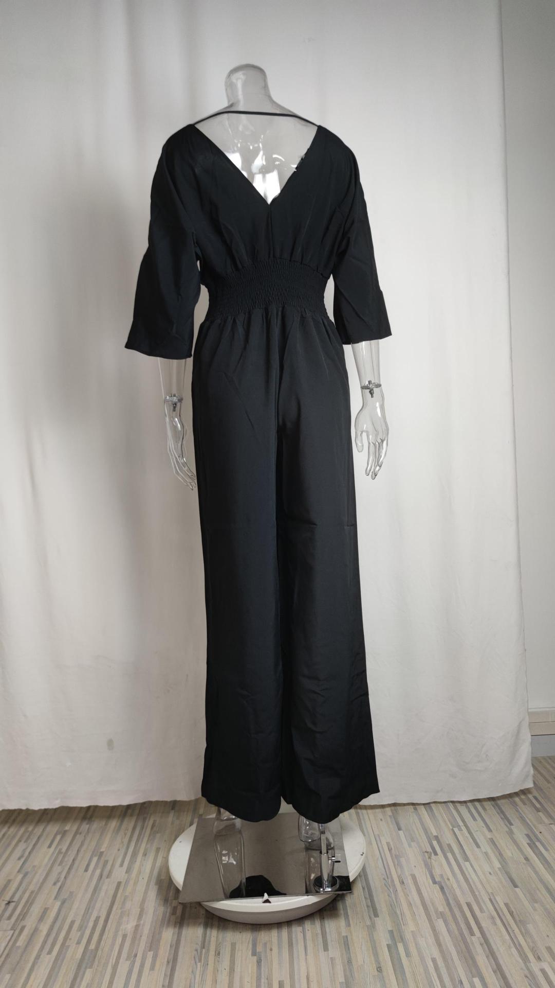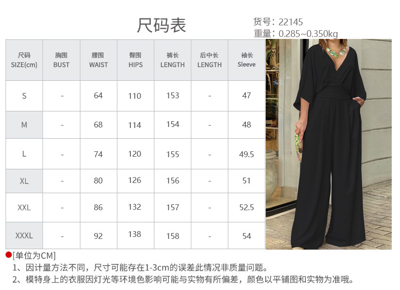 Женский комбинезон в европейском и американском стиле, весна 2025, модный повседневный простой элегантный комбинезон с V-образным вырезом, свободный крой, с завышенной талией