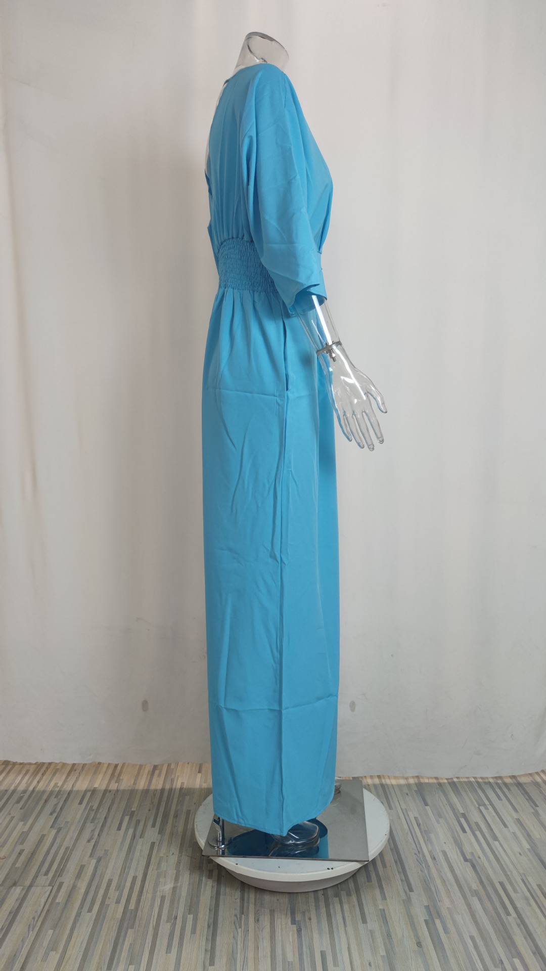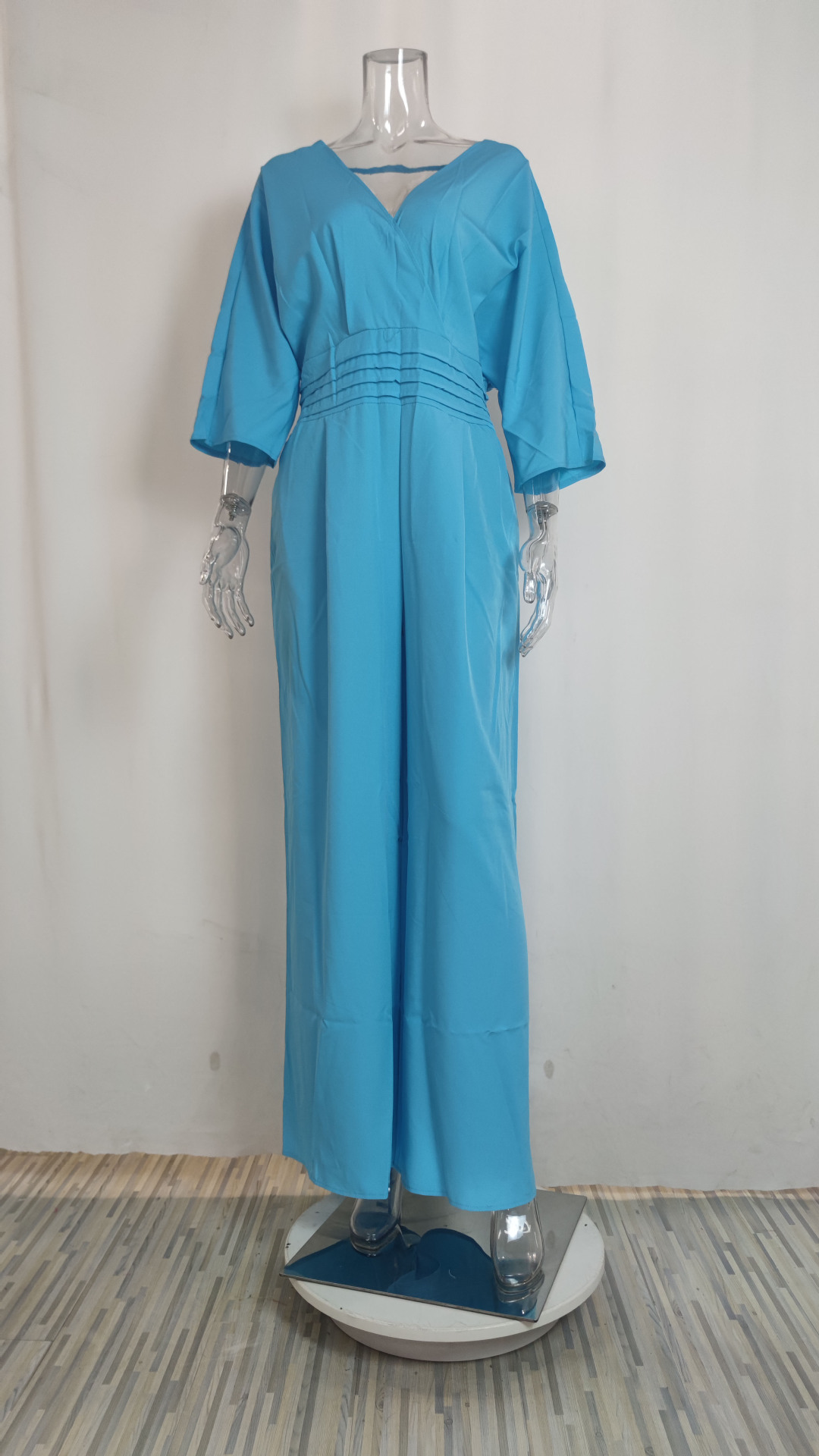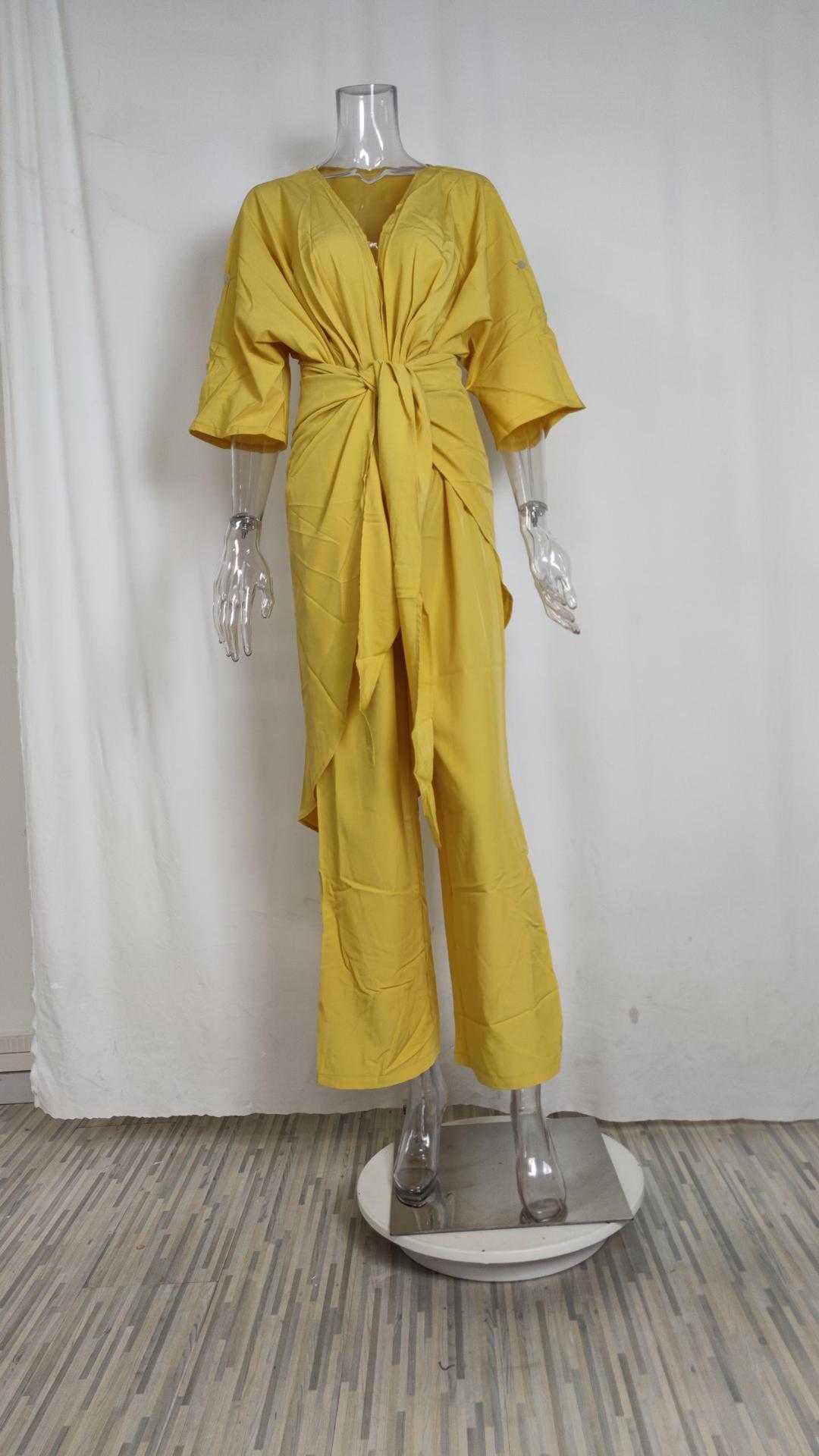 Женский комбинезон в европейском и американском стиле, весна 2025, модный повседневный простой элегантный комбинезон с V-образным вырезом, свободный крой, с завышенной талией