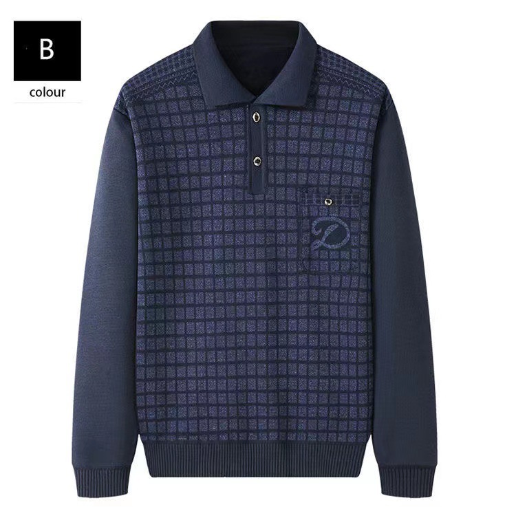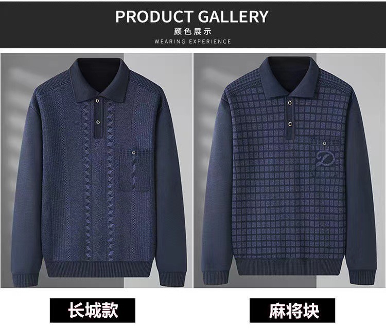 Поколение жаккардовых футболок на флисовой подкладке, зимняя одежда для отцов среднего и пожилого возраста, свитер с карманами, Базовая рубашка