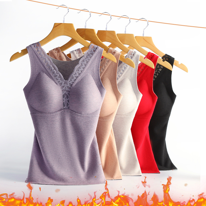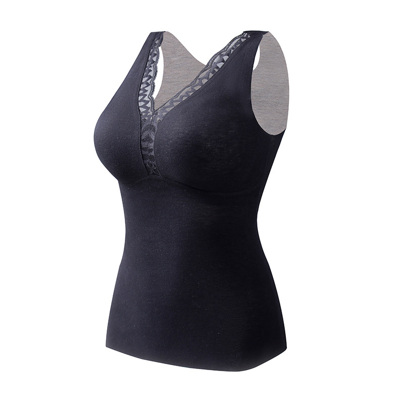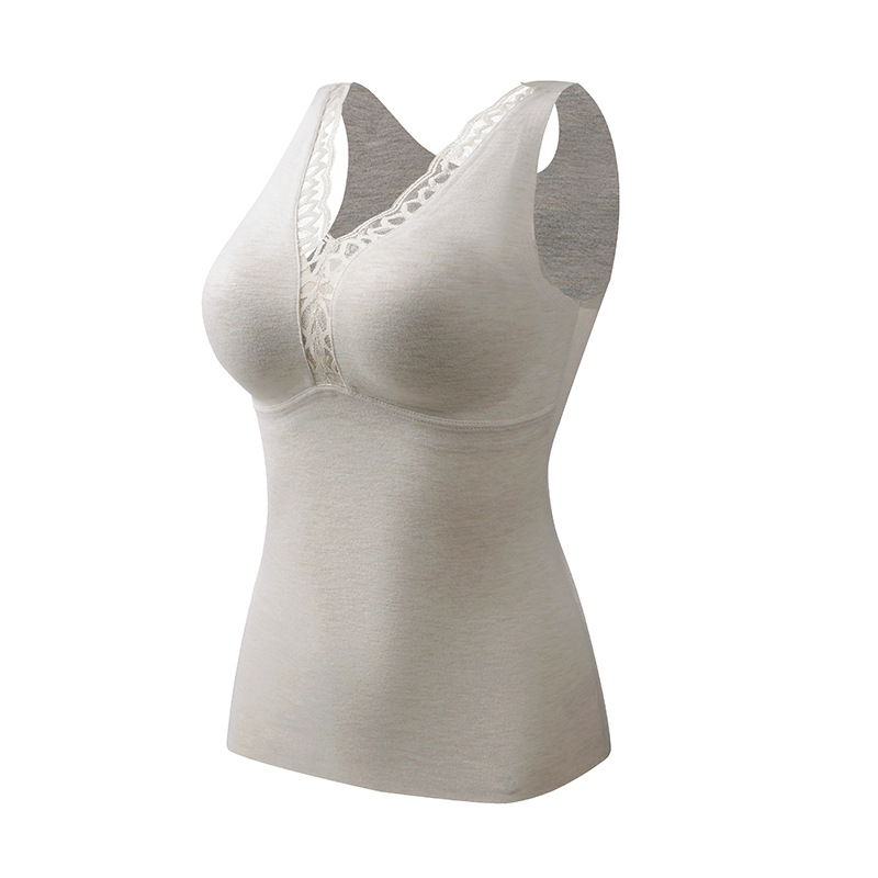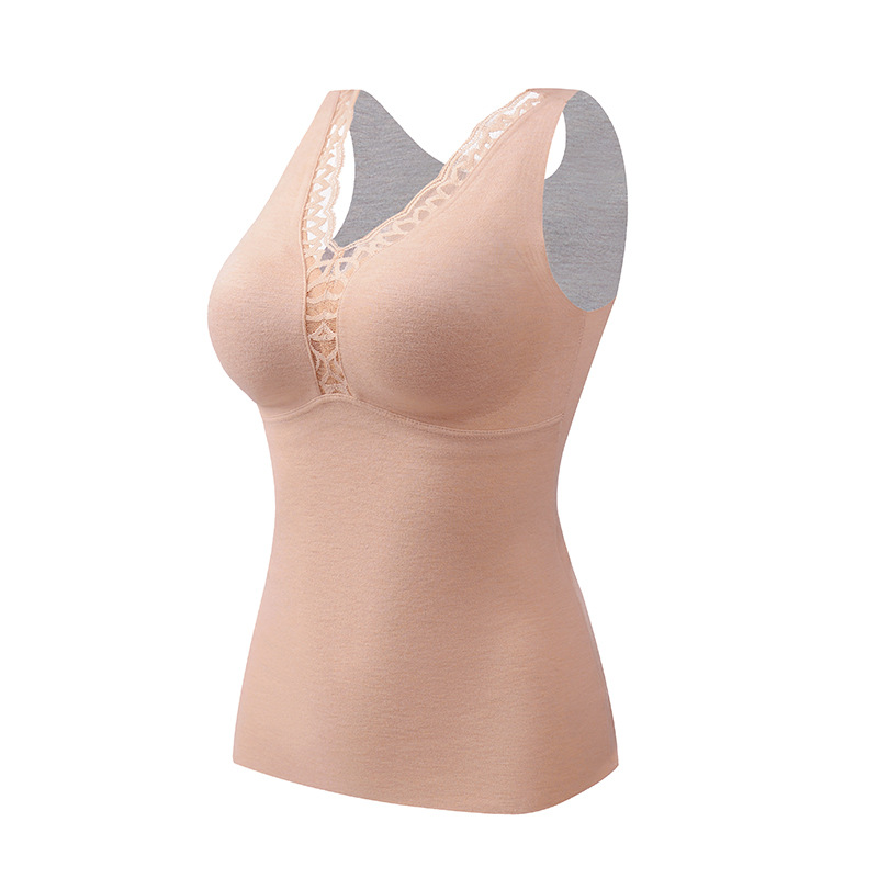 4022 # Теплый жилет из кашемира и шелка тутового шелкопряда с подкладками для груди, не нужно носить бюстгальтер, внутренний слой из флиса с кружевом для многослойного ношения.