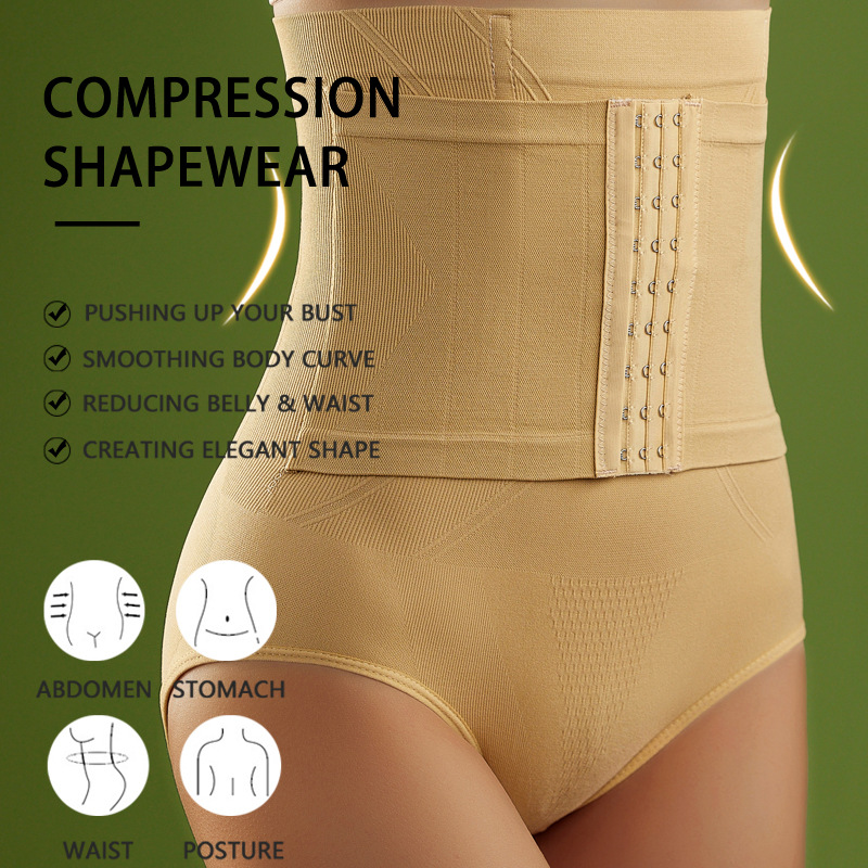 跨境九排扣高腰收腹内裤女薄产后收胃塑形透气束腰提臀美体塑身裤
