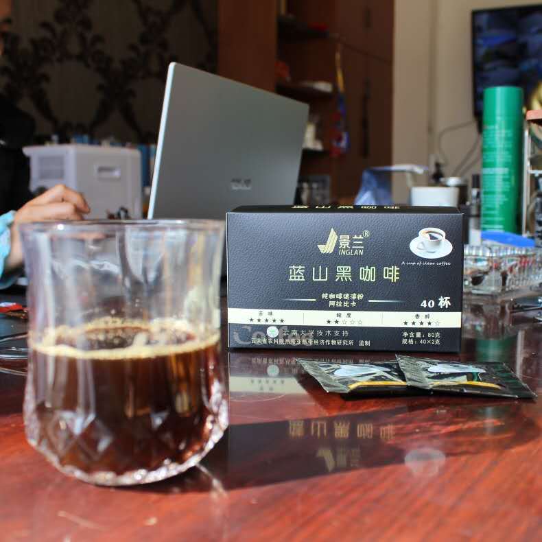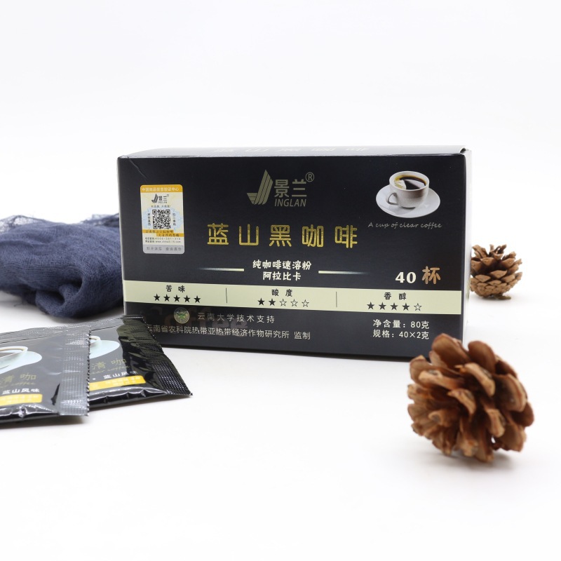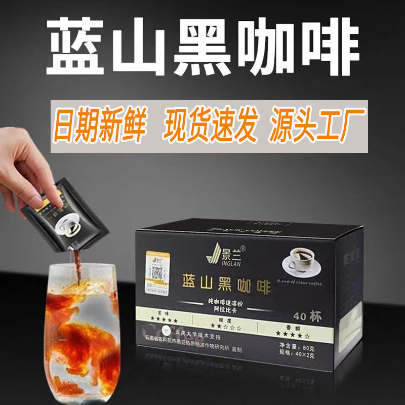 Jinglan Blue Mountain Black Cafe Растворимая Арабика Растворимый чистый кофе Юньнань Мелкое зерно Источник прямой отправки Фабричные товары