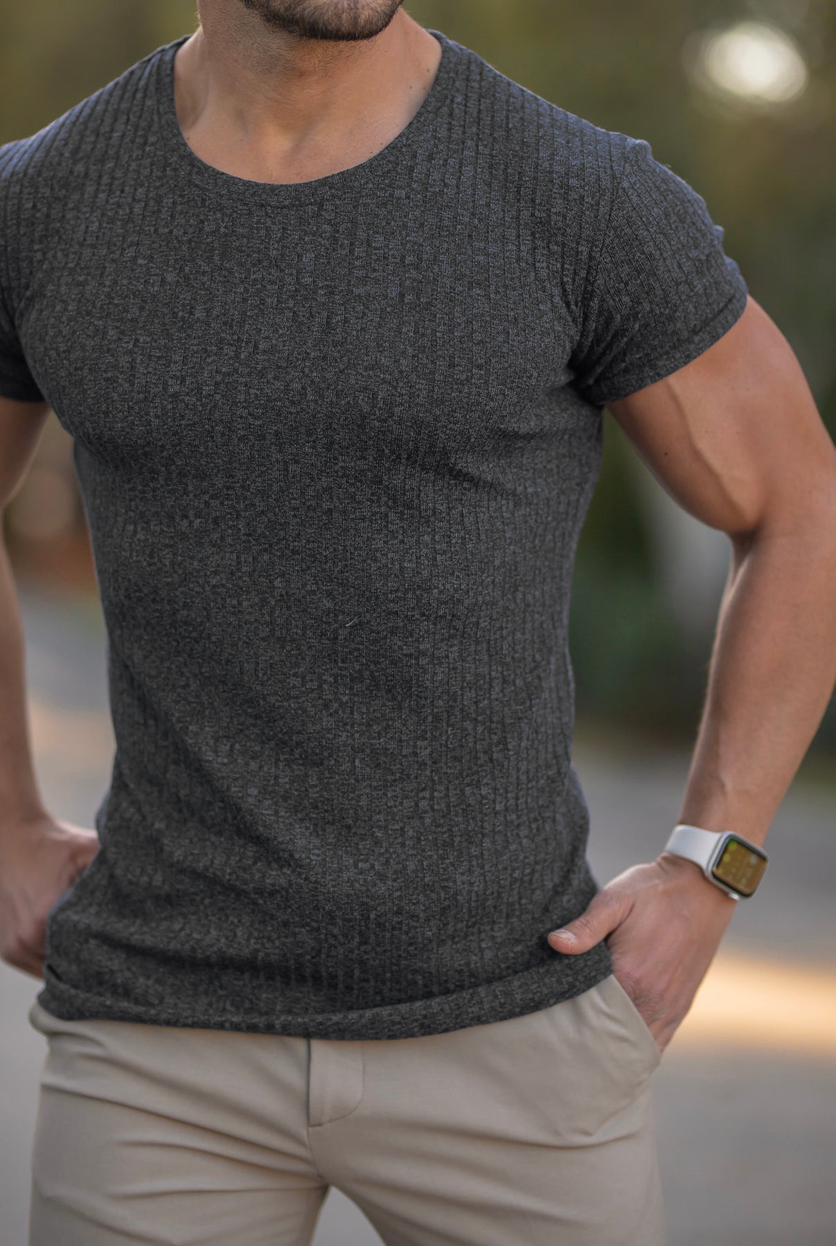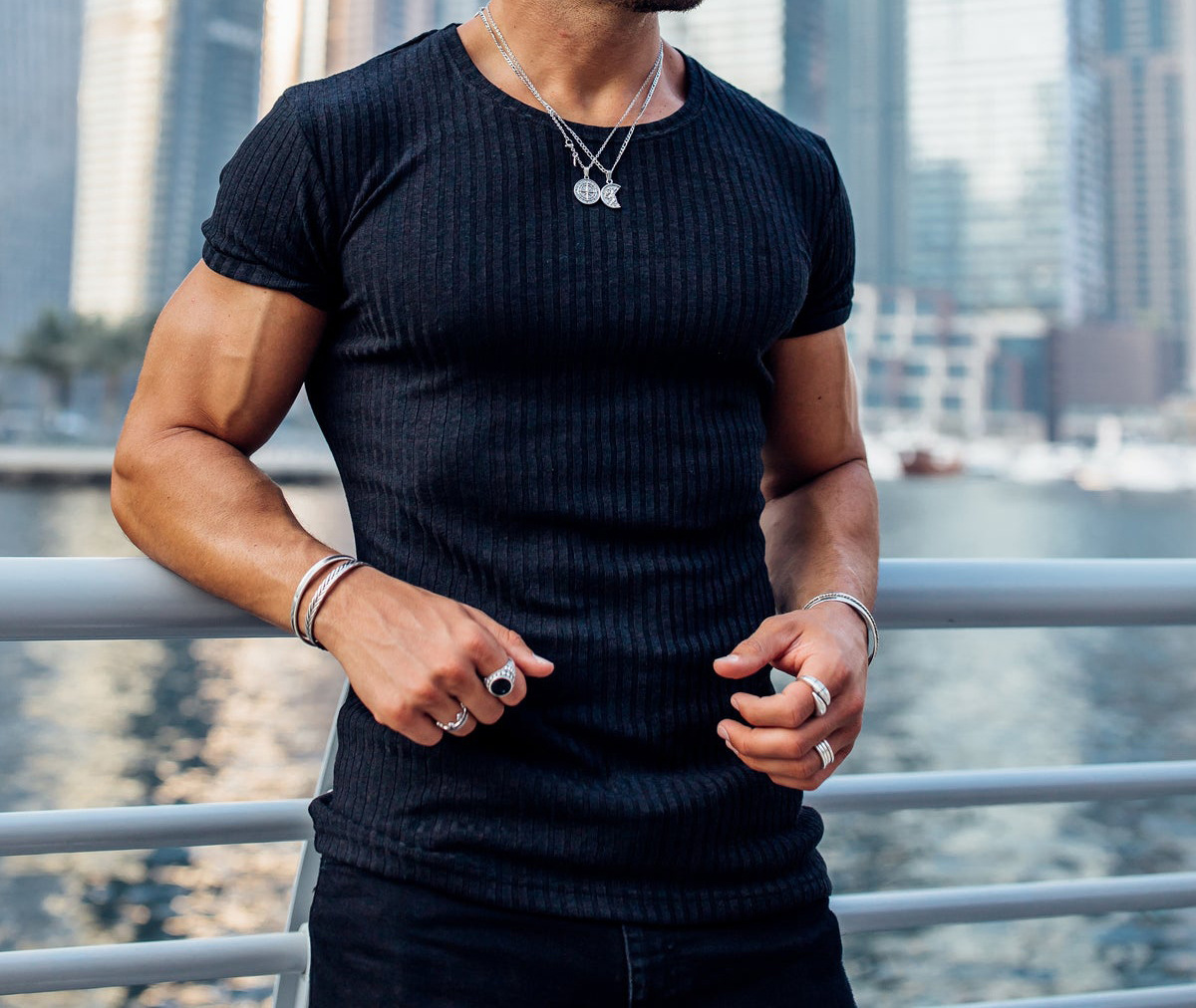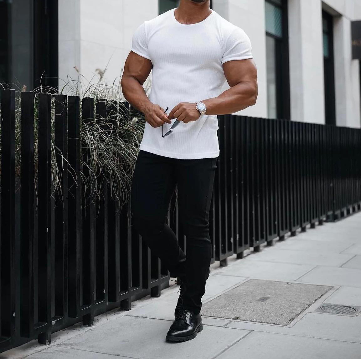 Мужская летняя спортивная футболка с коротким рукавом и круглым вырезом, эластичная, с вертикальными полосками, для фитнеса и повседневной носки, в европейском и американском стиле, для международной торговли.